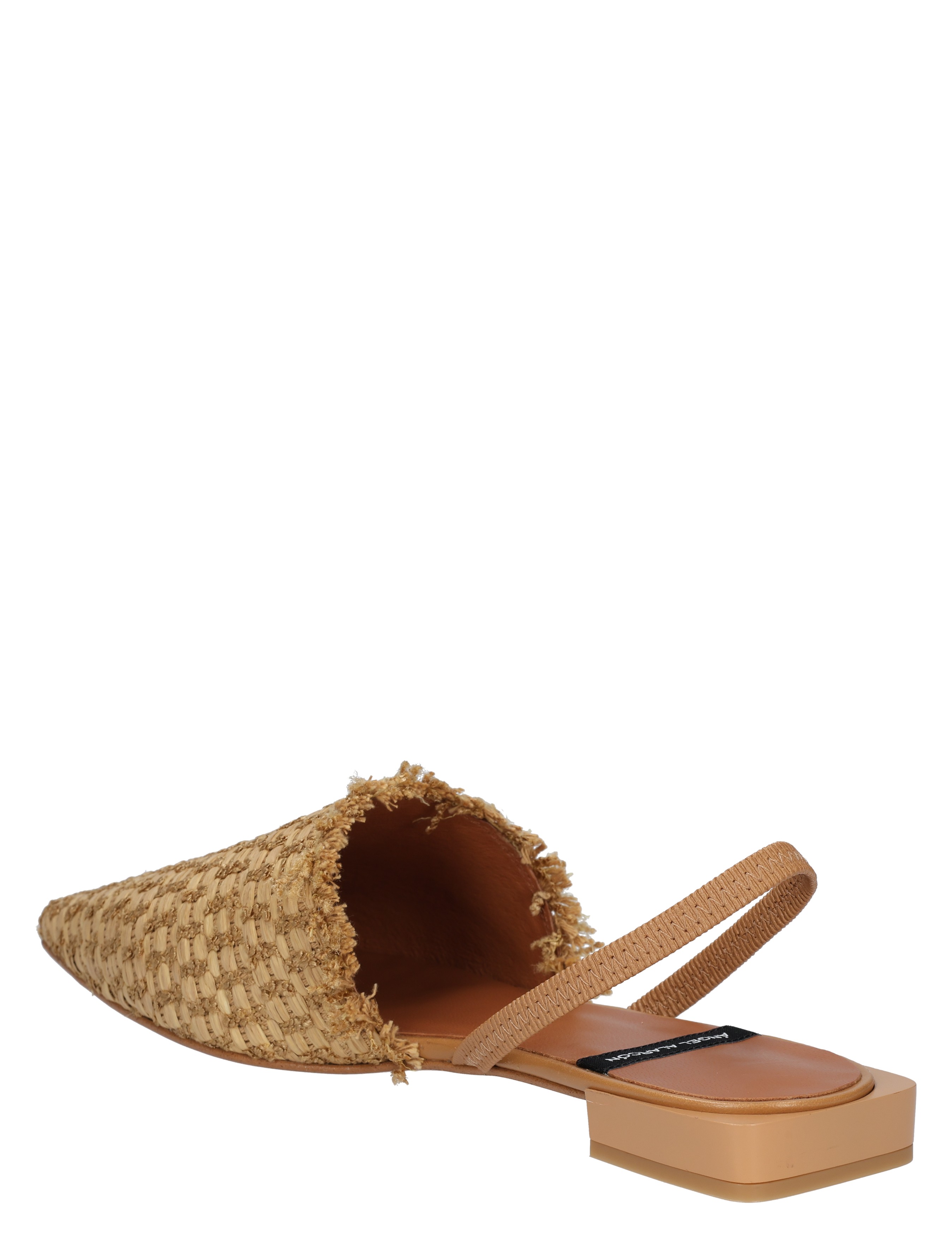 Deze Ángel Alarcón 25009 Beatrice dames slingback pump met lage hak is uitgevoerd in Caramelkleurig gevlochten raffia materiaal. De voering en het vaste voetbed zijn van leer. De pump heeft een rubberen loopzool met een hak van 1 cm.
