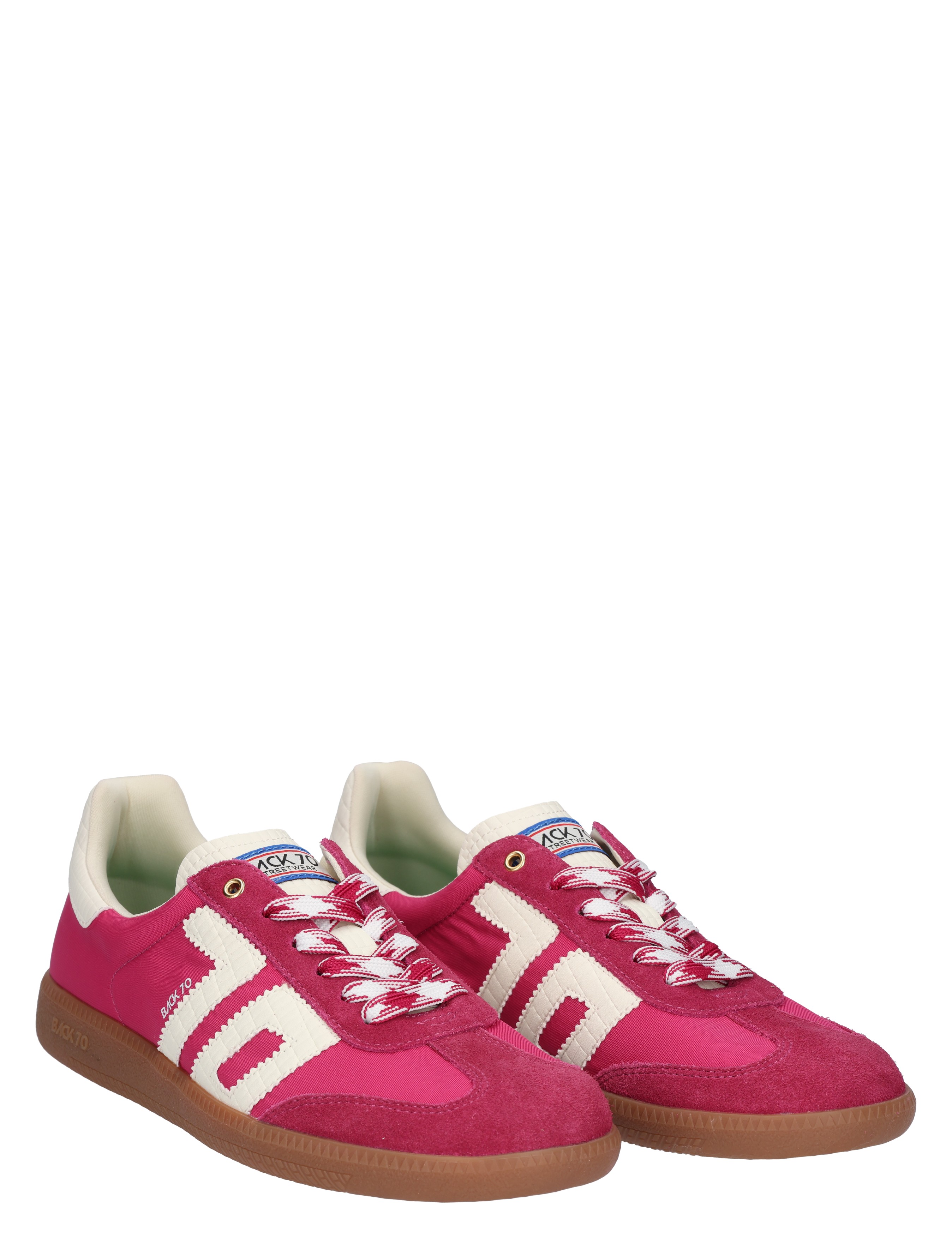 De Back 70 Ghost Nylon Dames Sneaker in de kleur Cherry is een sportieve en stijlvolle keuze. Het bovenwerk van zachte nylon en suède zorgt voor een moderne uitstraling en een comfortabele pasvorm. De ademende textiele voering en flexibele rubberen zool bieden de hele dag door draaggemak en grip. Perfect voor dagelijks gebruik met een opvallende twist.