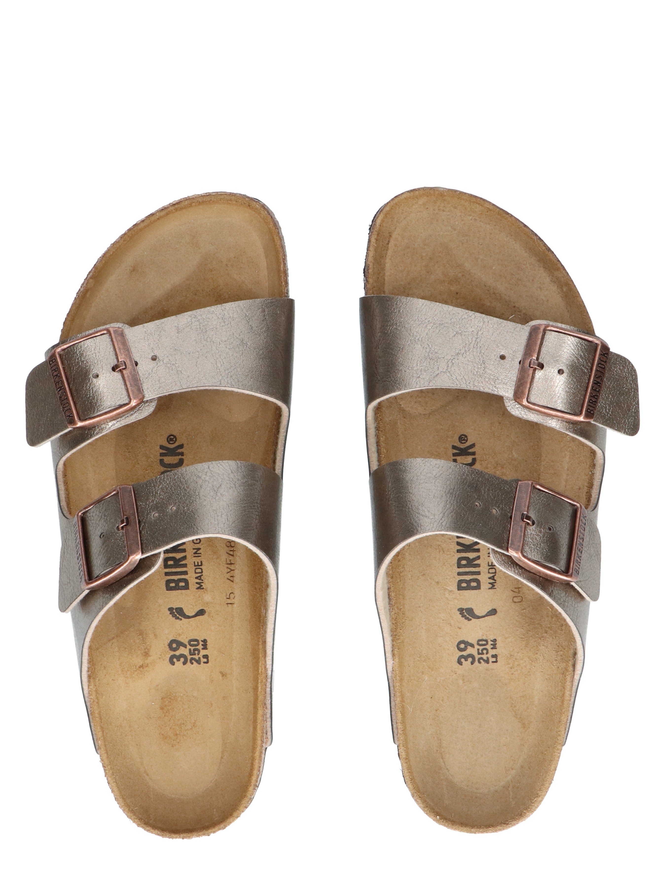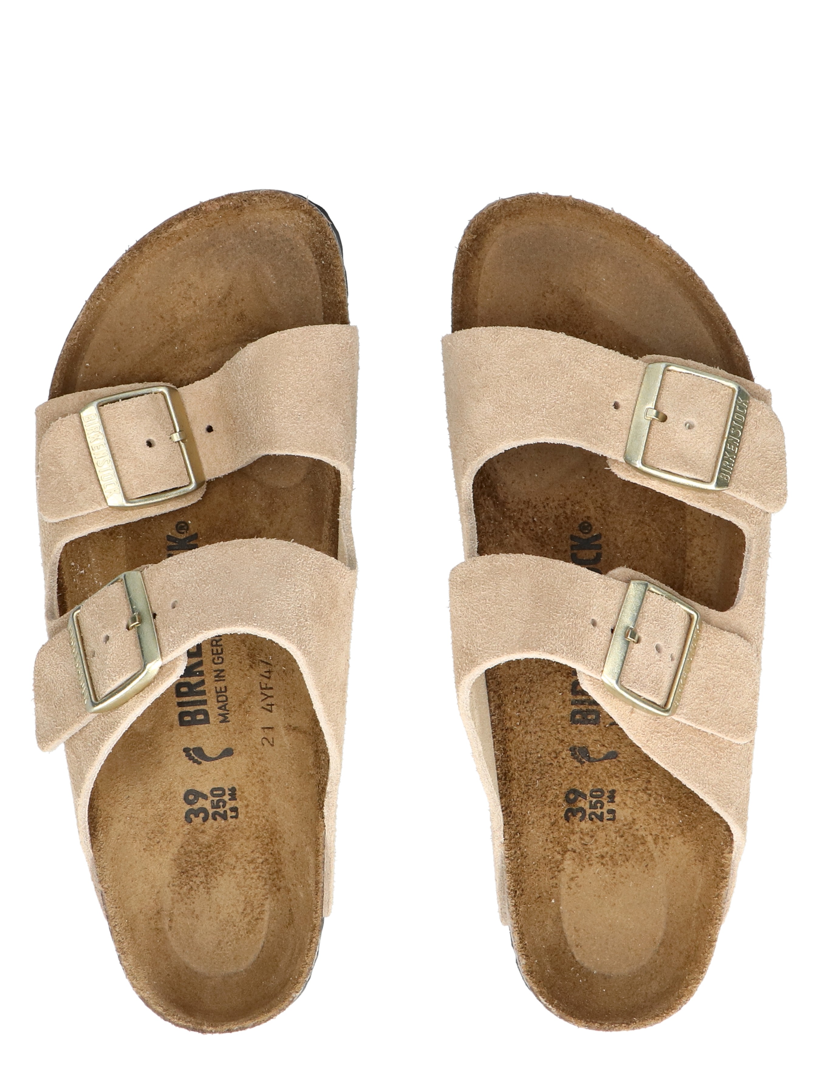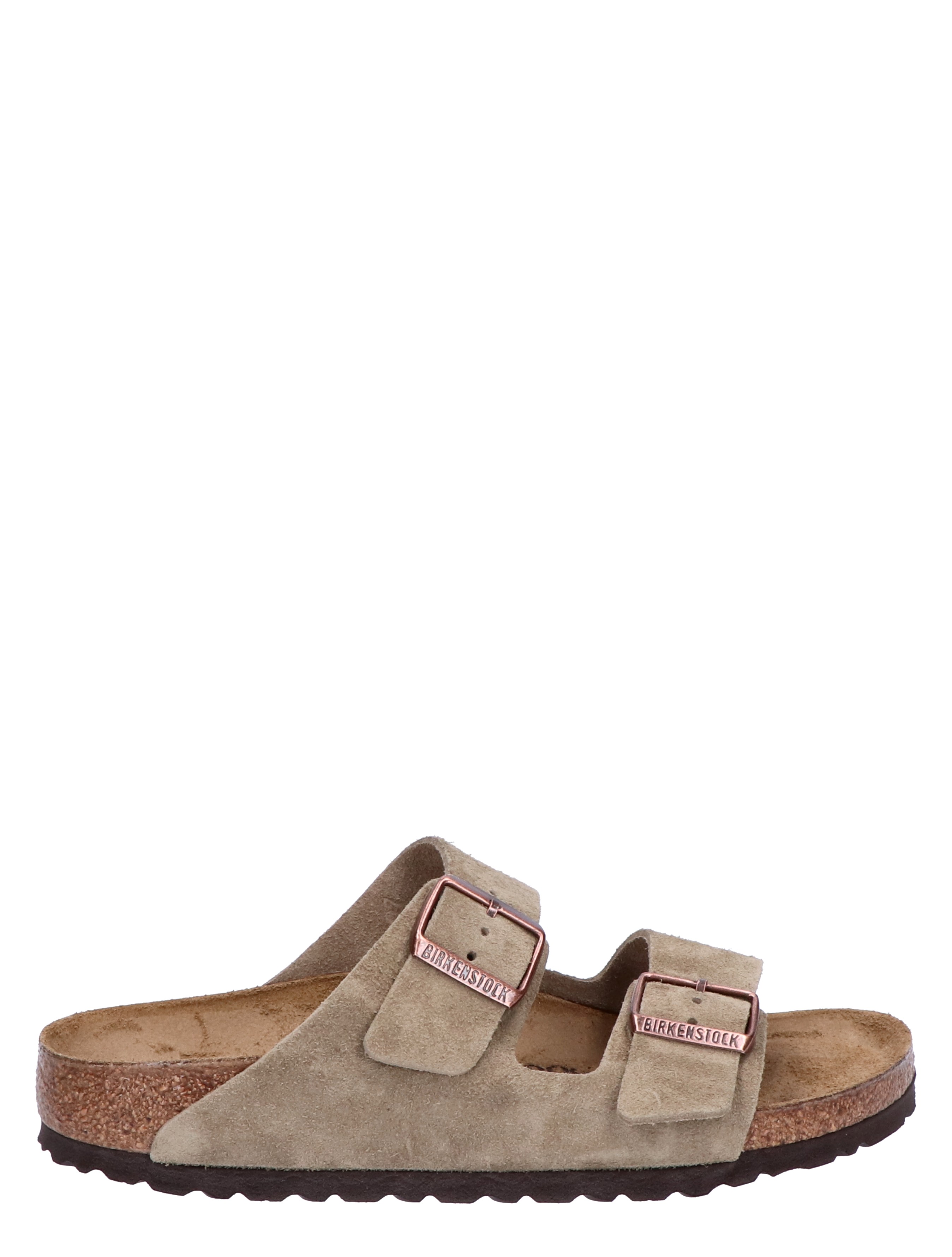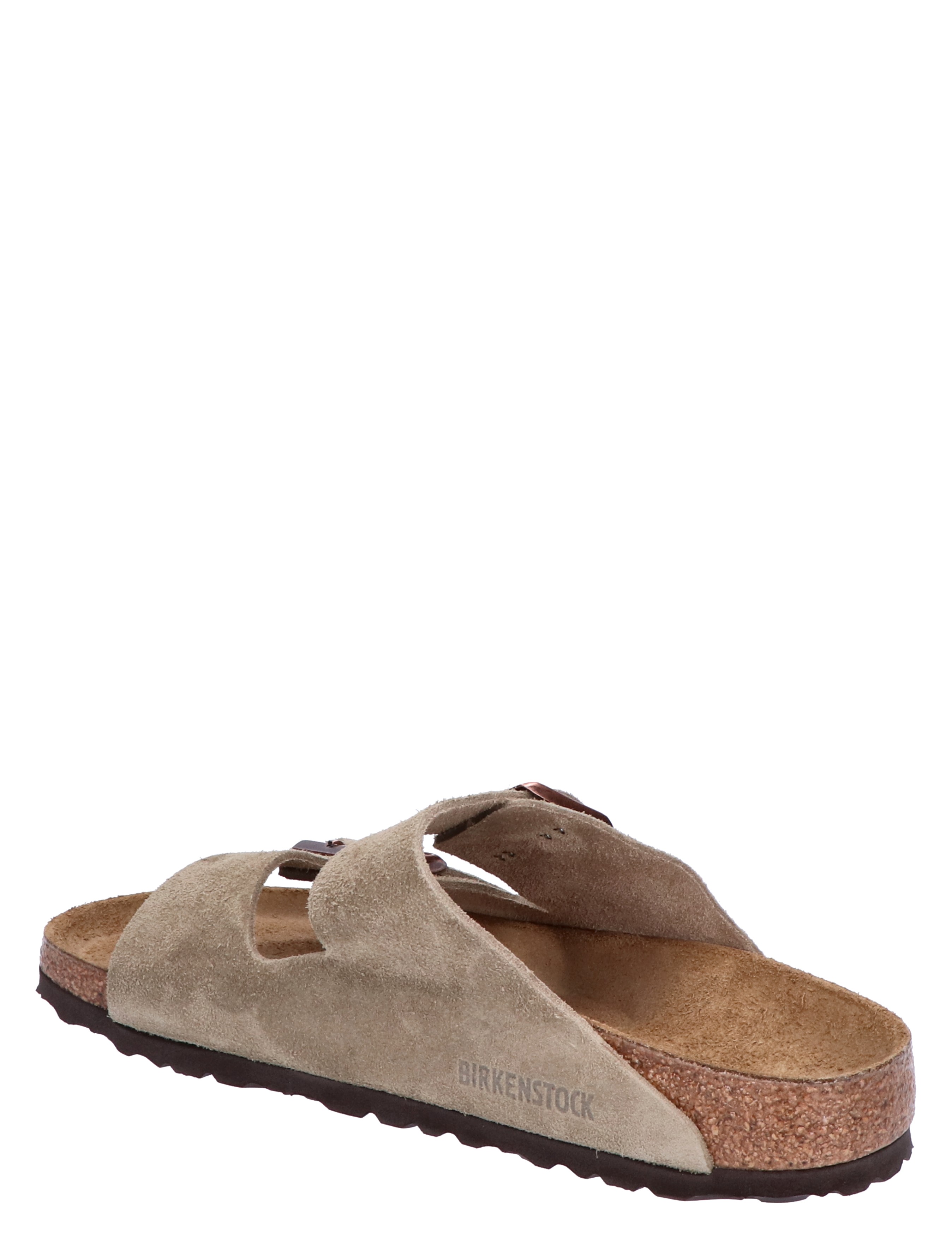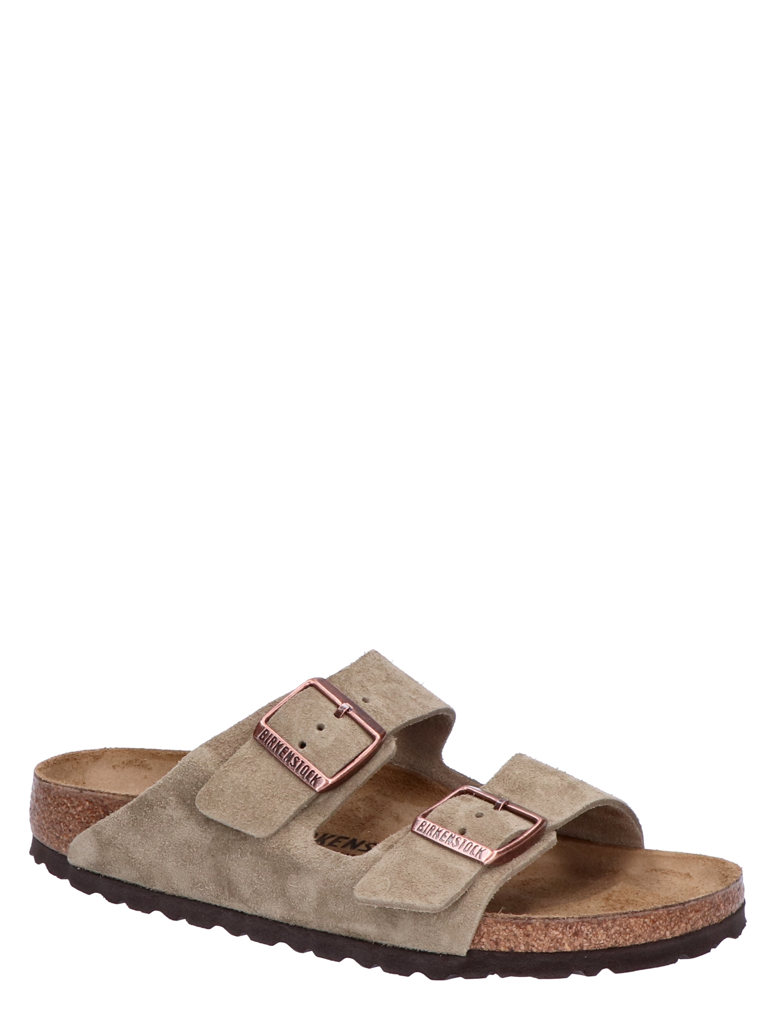 Birkenstock Arizona slipper voor dames in taupe suede. De Birkenstock Arizona overtuigt door zijn goede pasvorm en een zeer nonchalant, natuurlijk design. Daarvoor zorgt het bovenmateriaal van buitengewoon zacht, soepel suède dat zich als een tweede huid naar de voet voegt. Het aangename voetbed zorgt voor extra comfort.