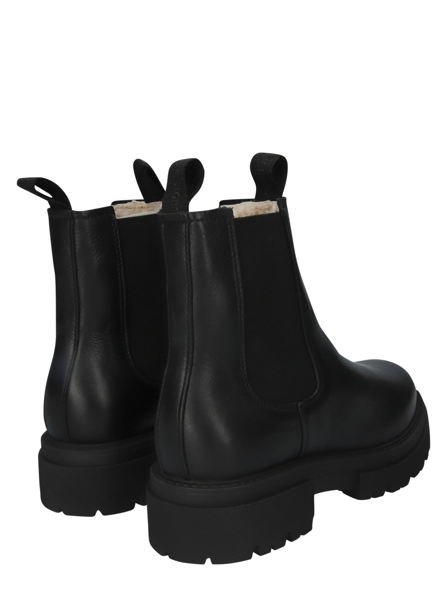 Blackstone AL412 Chelsea boot voor dames in black. Heerlijke winterse Chelsea gevoerd met sheep skin om de voeten warm te houden. De boot is uitgevoerd in leer, heeft een traditionele elastische sluiting en lussen om de boot makkelijk aan te trekken. De stevige zool is van rubber.