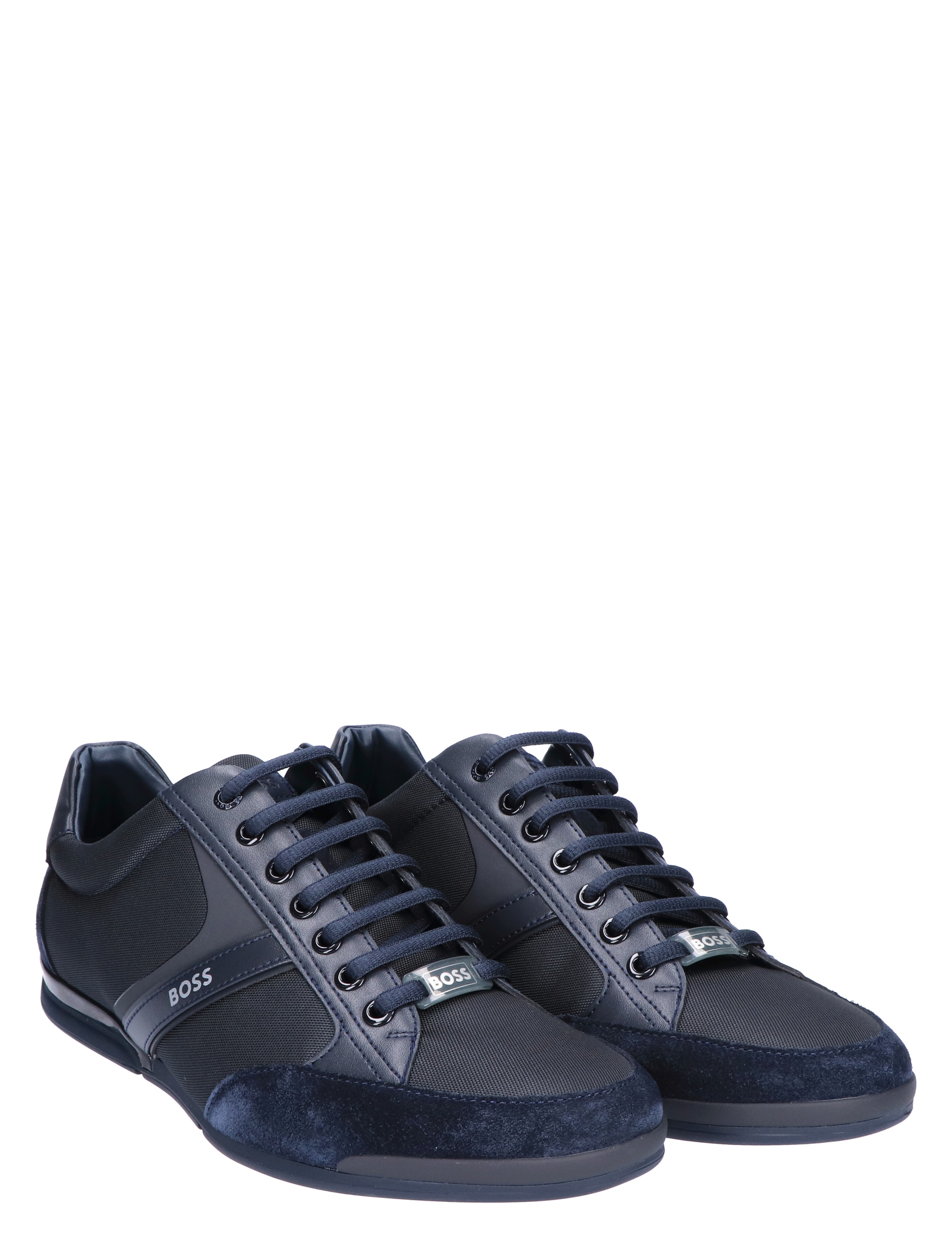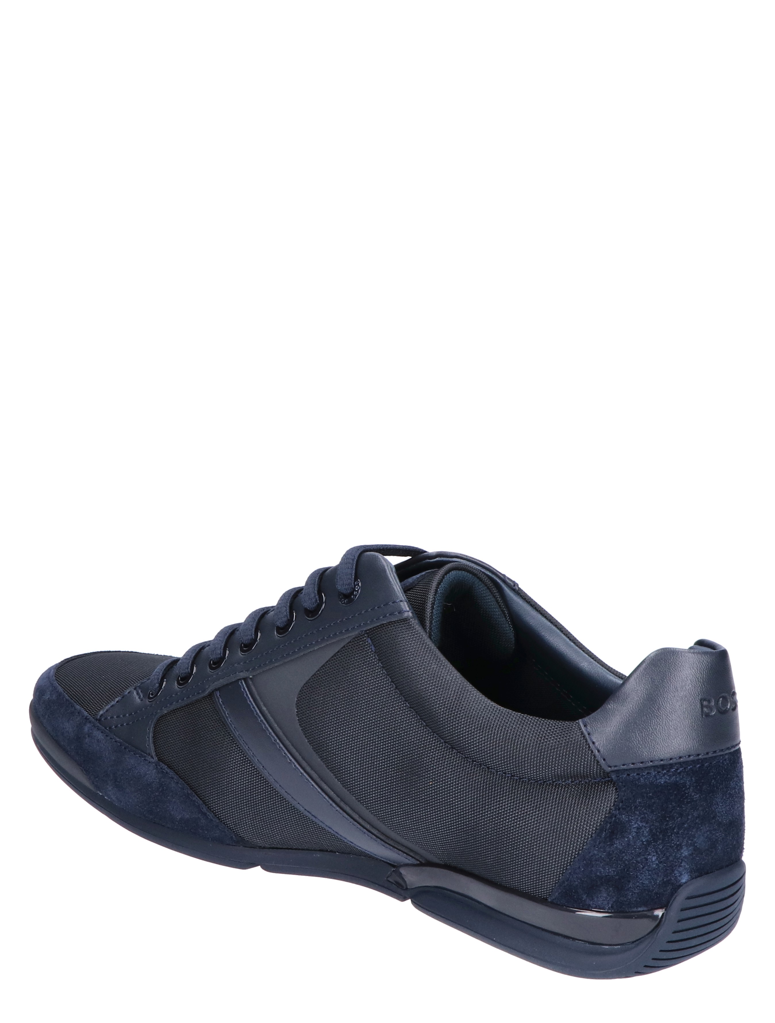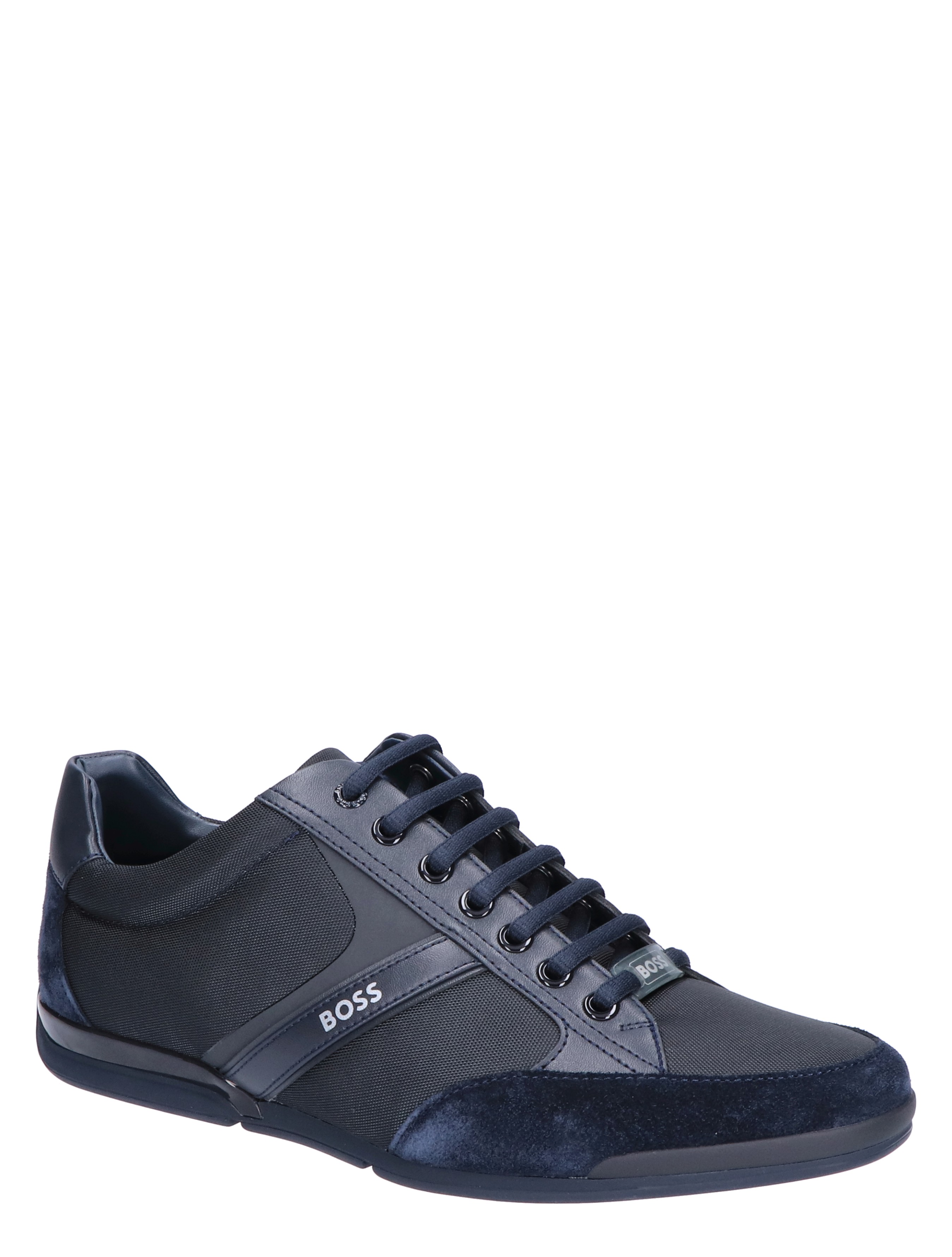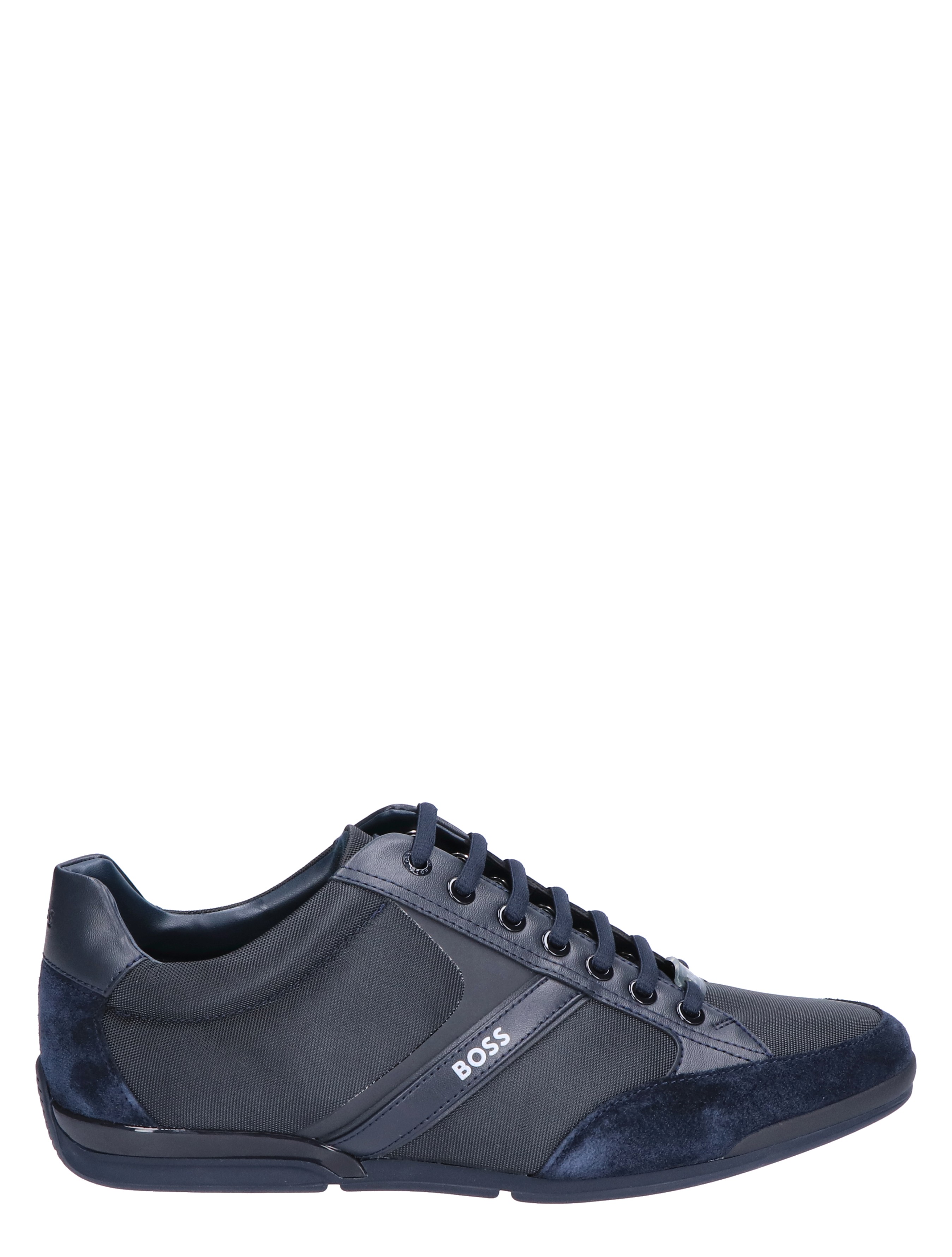 Boss Saturn Lowp MX lage sneaker voor heren. Sportieve en tegelijk geklede sneaker van Boss. Het buitenwerk is gemaakt van diverse materialen, waaronder suede en PU. De zijkant en het hielstuk zijn voorzien van het Boss logo.