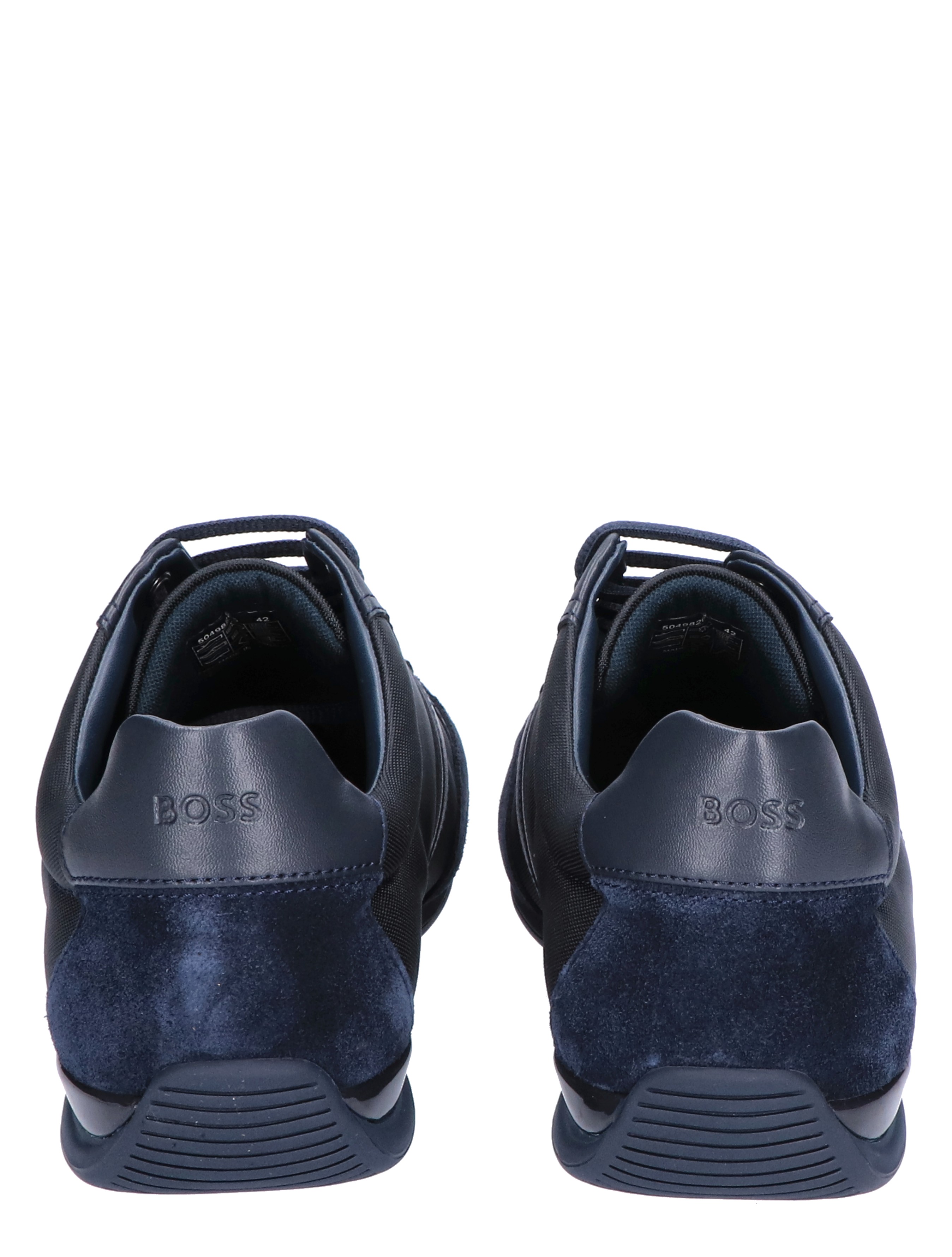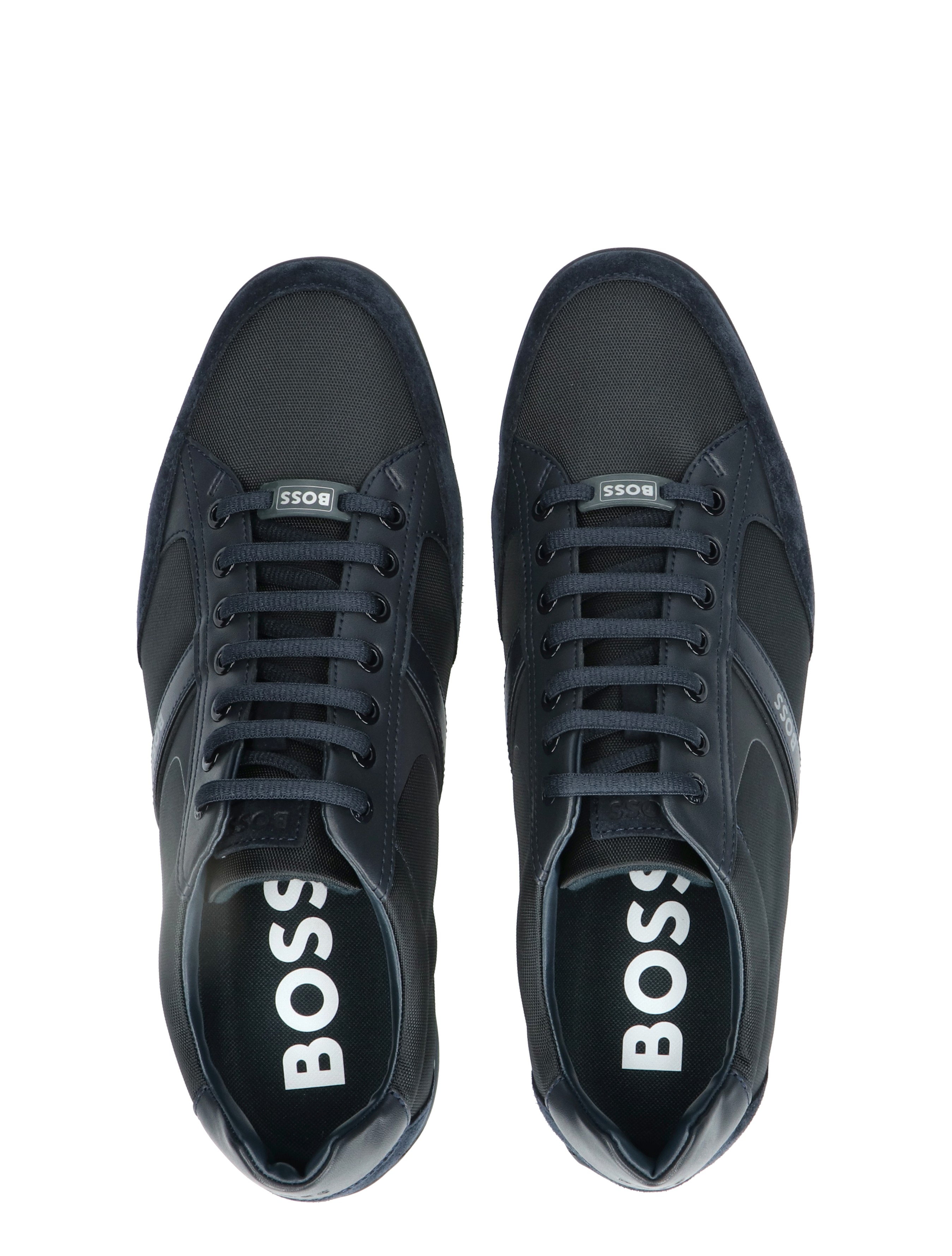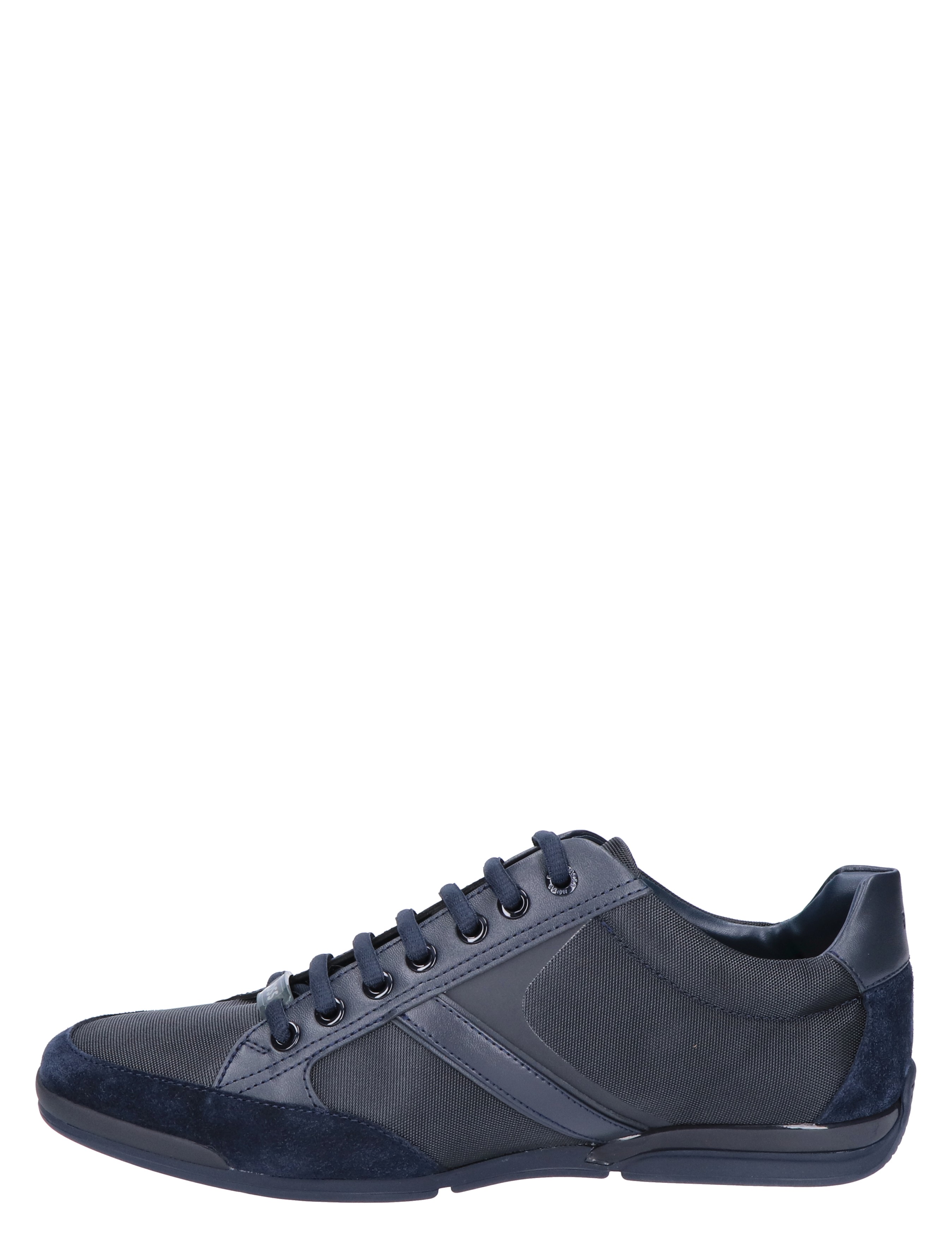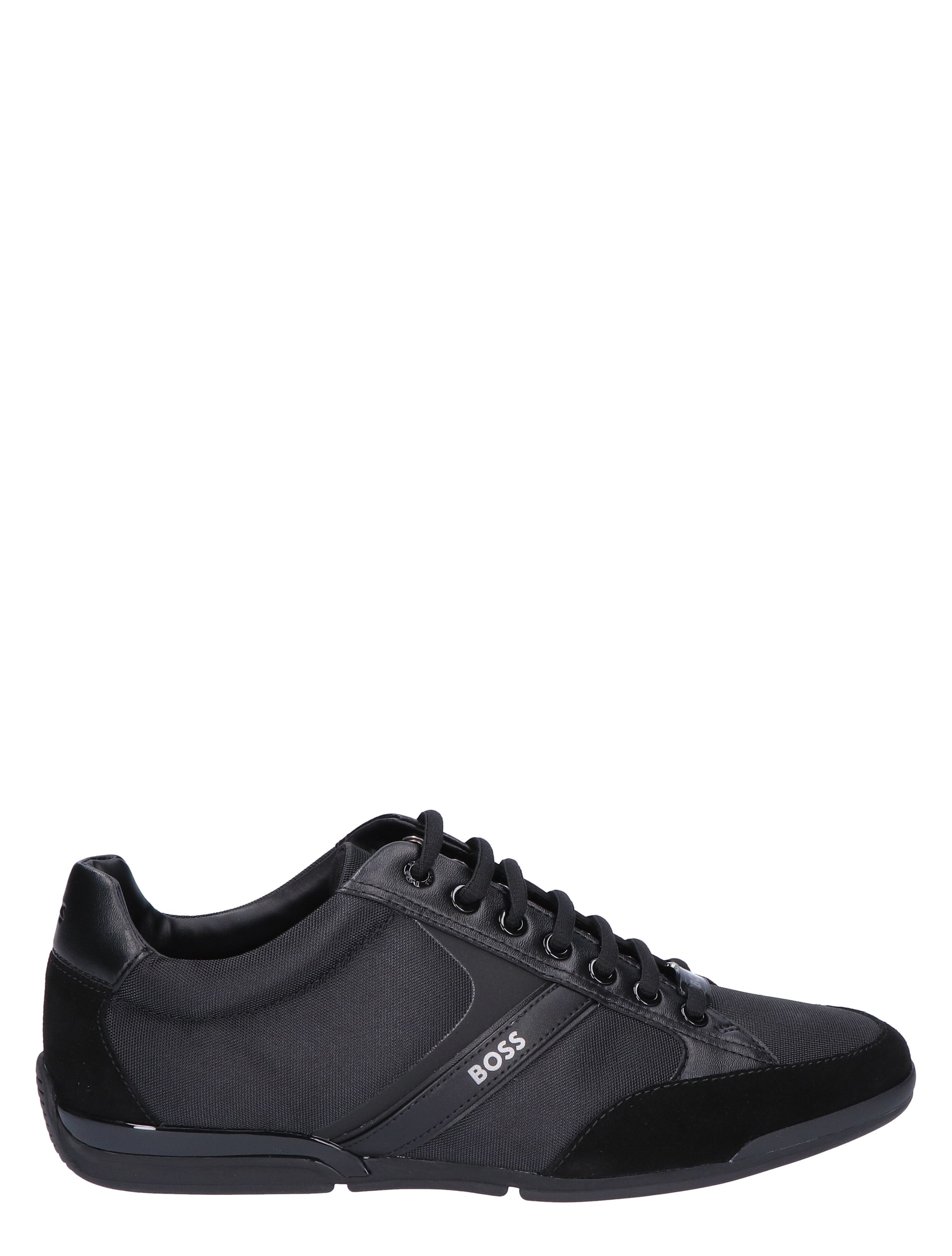 Boss Saturn Lowp MX lage sneaker voor heren. Sportieve en tegelijk geklede sneaker van Boss. Het buitenwerk is gemaakt van diverse materialen, waaronder suede en PU. De zijkant en het hielstuk zijn voorzien van het Boss logo.