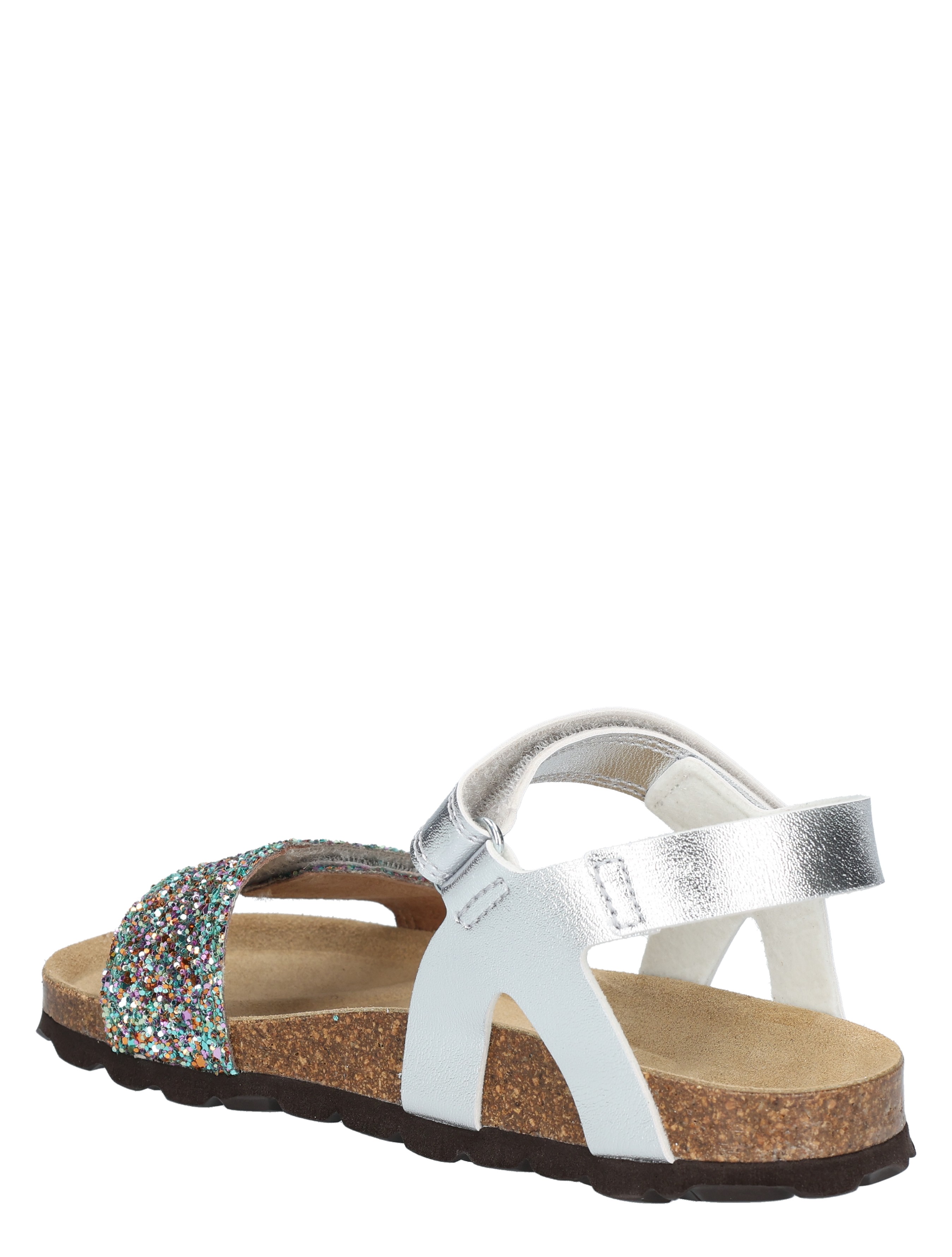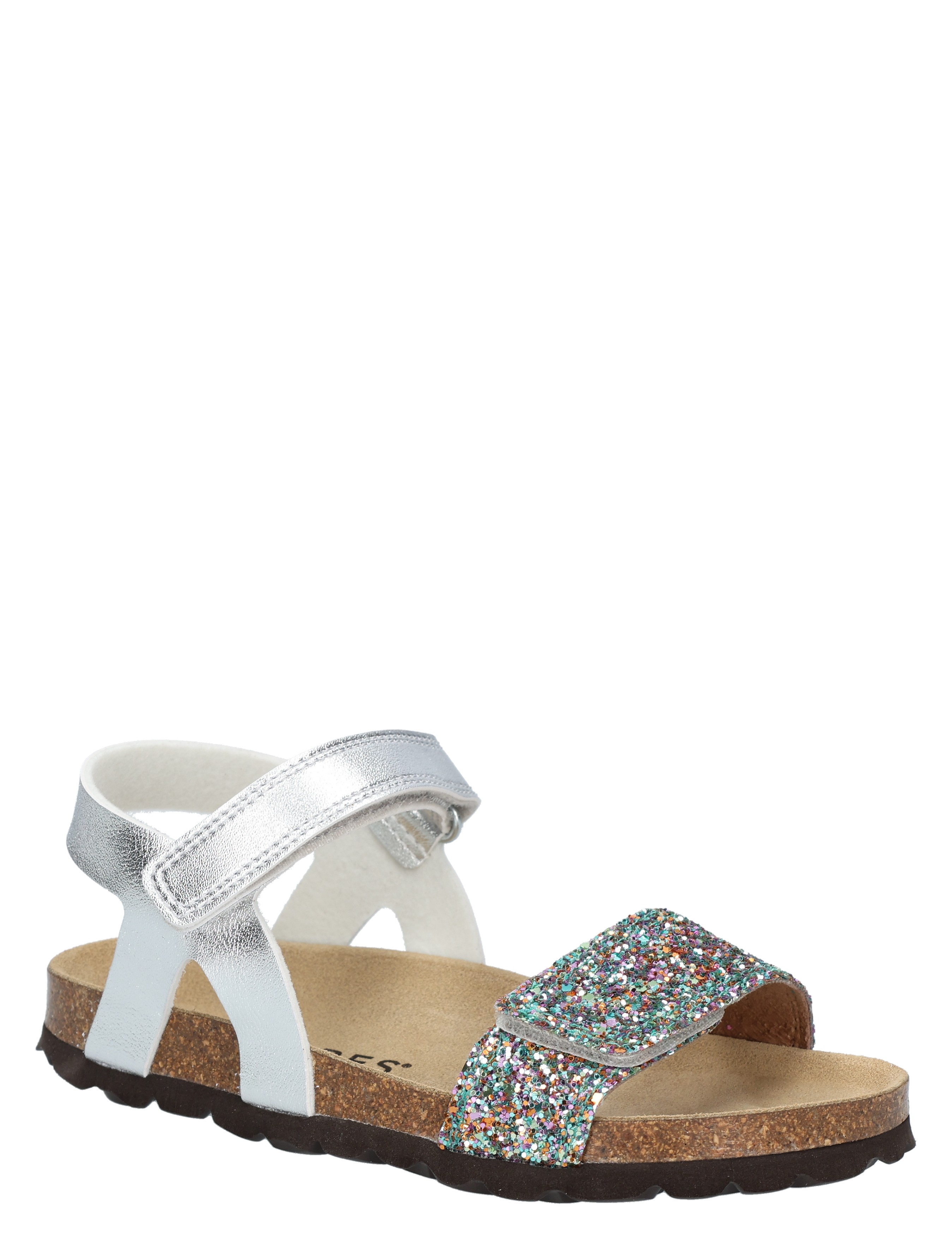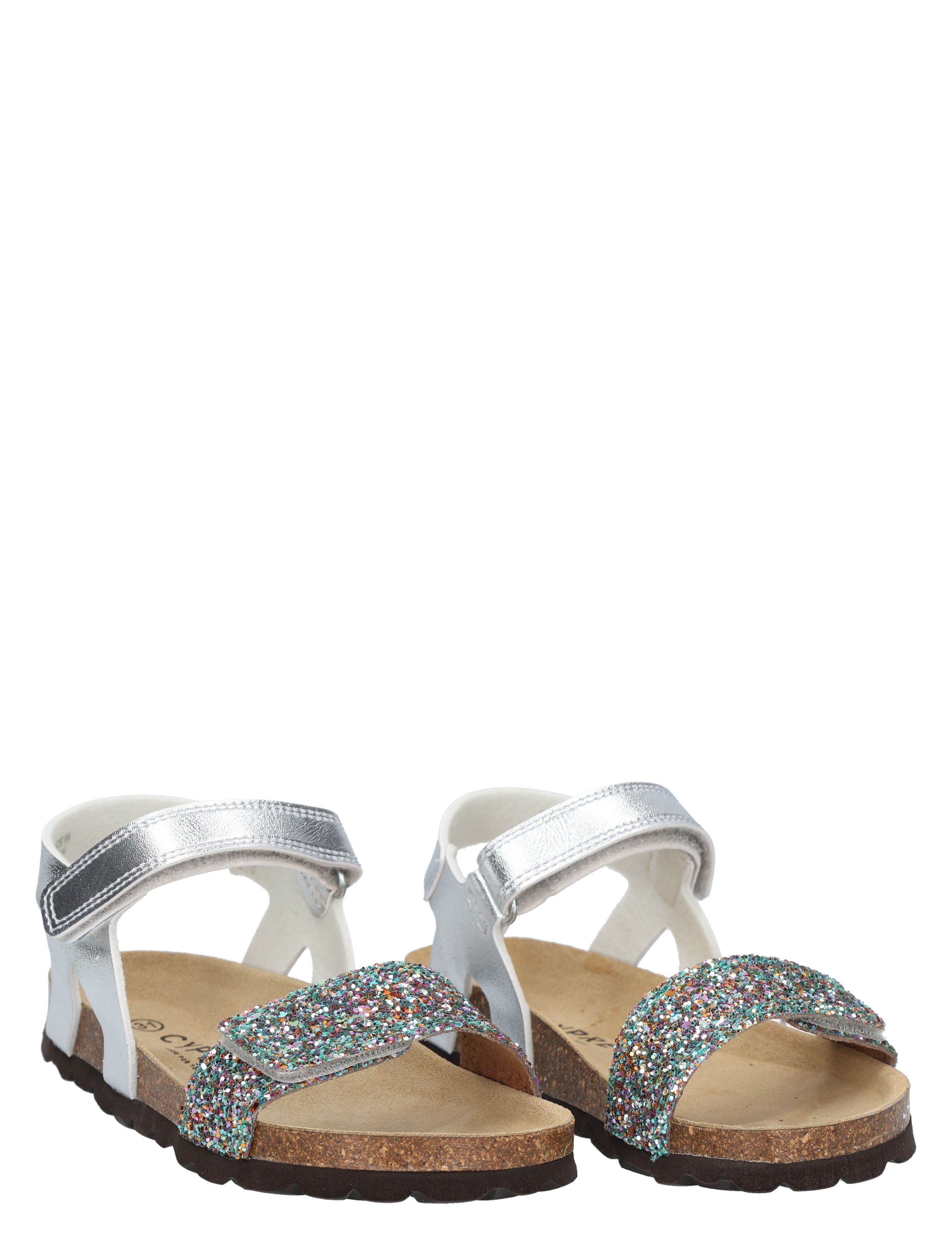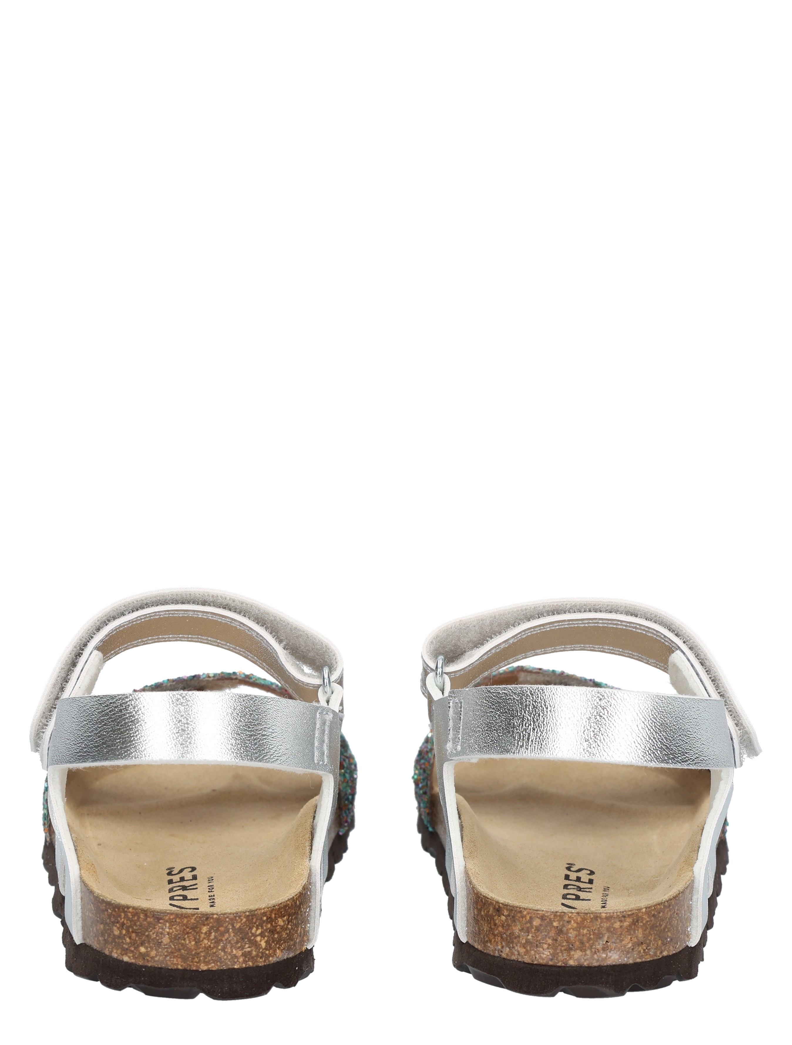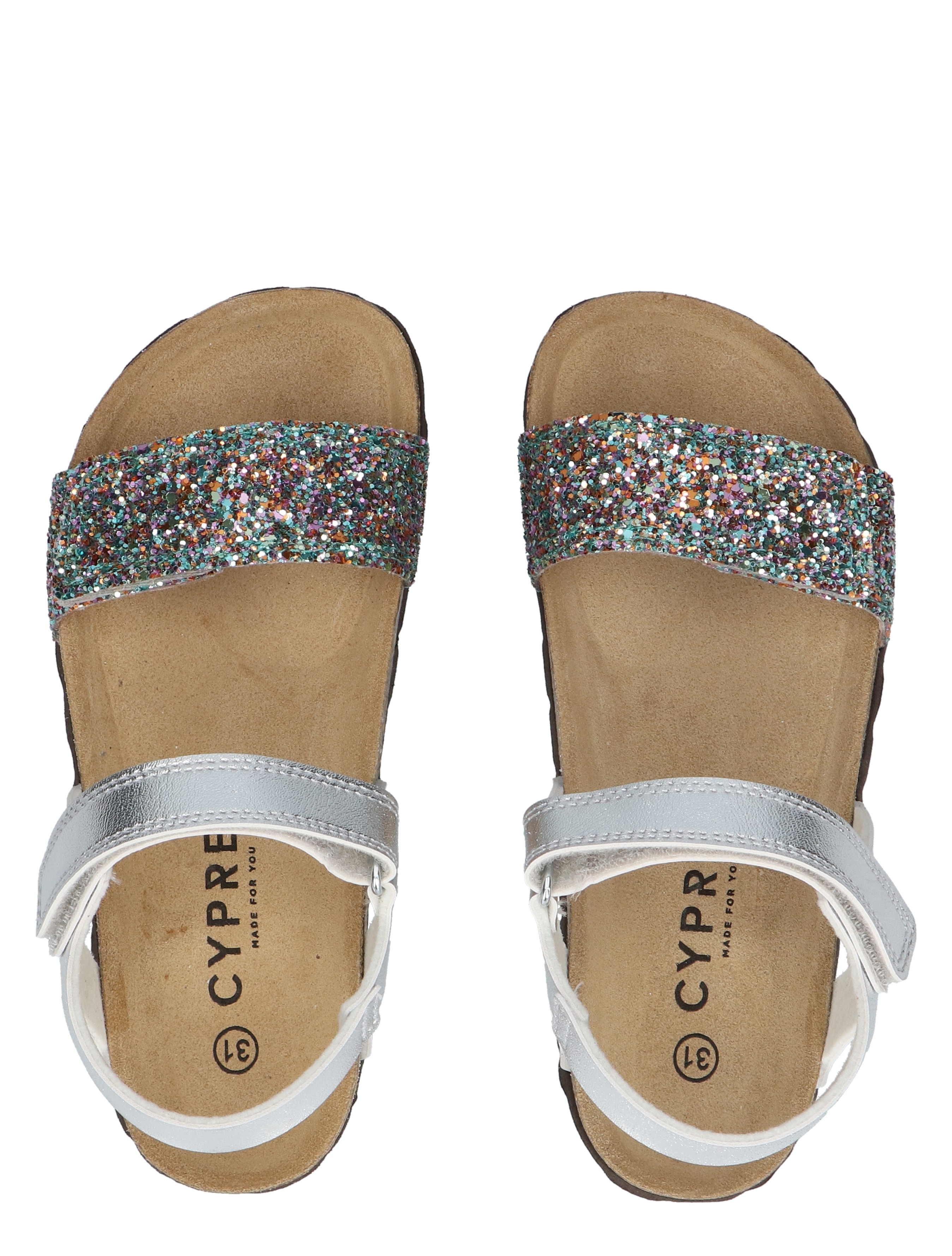 Cypres Marjorie sandaal voor meisjes in aqua. Fijne sandaal waar de kids lang op kunnen lopen met een voorgevormd leren voetbed en dubbele PU bandjes voorzien van een gemakkelijke klittenbandsluiting versierd met glitters aan de voorkant.