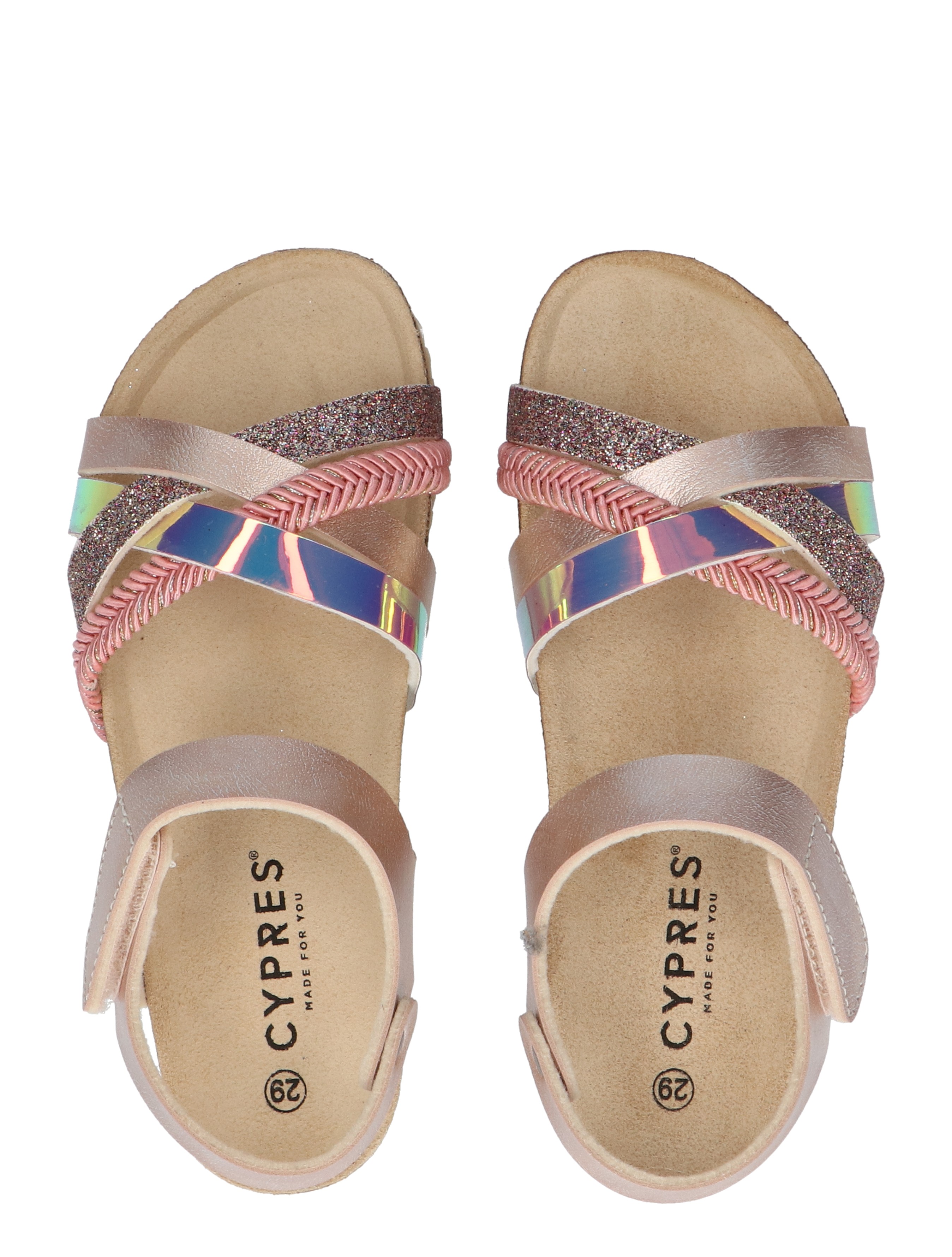 Cypres Wieple meisjessandaal in de kleur Rose is gemakkelijk te combineren door de zachtroze kleuren en verschillende materialen van de wreefbandjes. Het sandaaltje is gemakkelijk aan en uit te trekken door de klittenband sluiting.