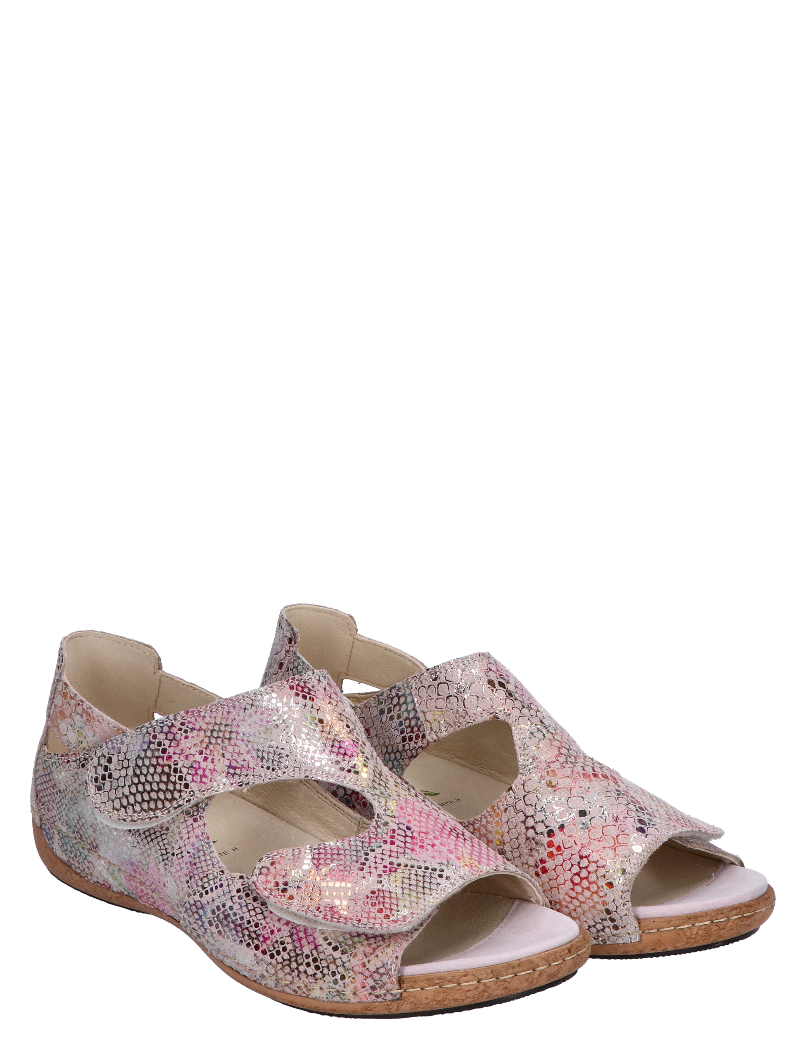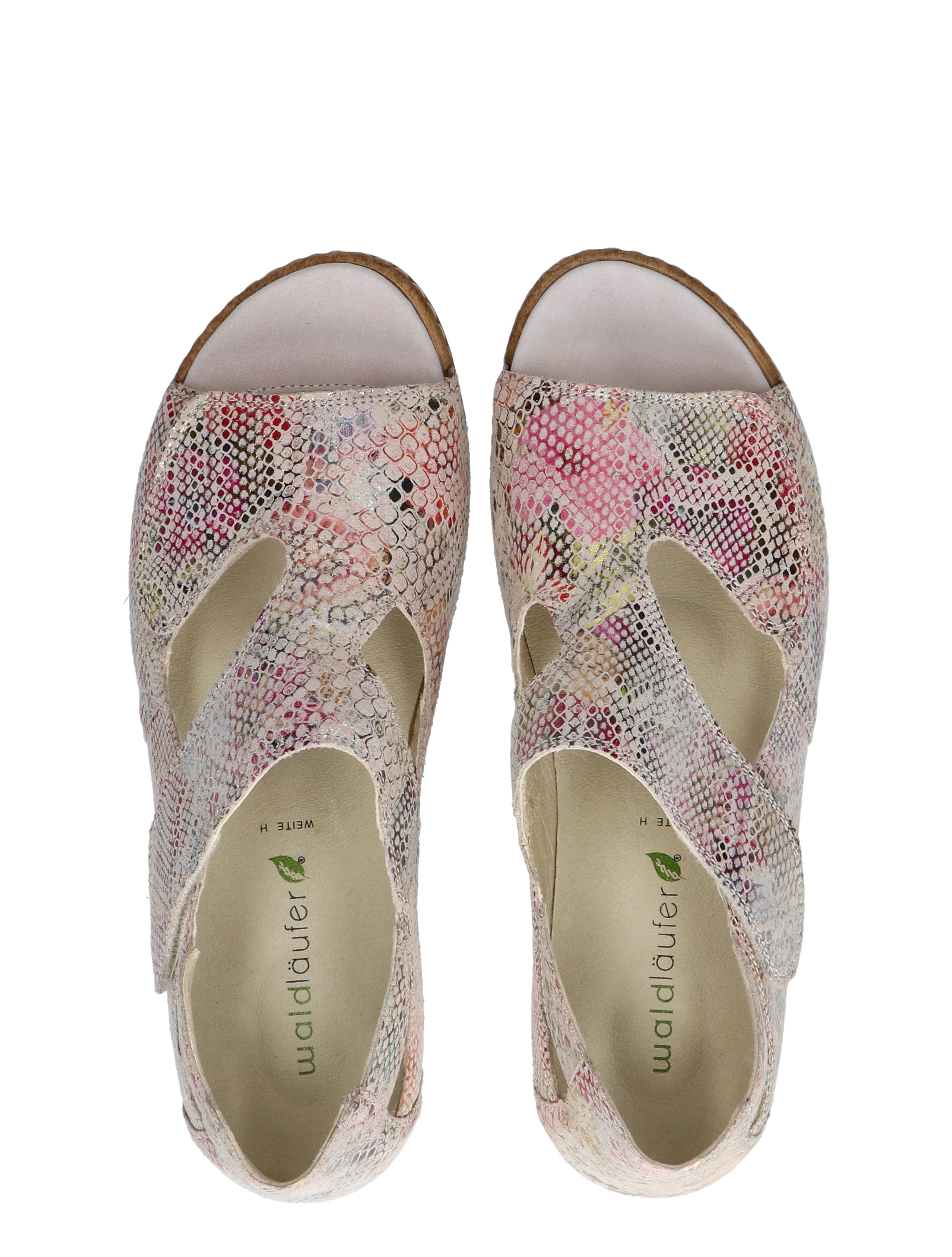 Waldlaufer 342024 sandaal voor dames (H-wijdte) Comfortabele sandaal van nubuck. De brede banden sluiten middels klittenband. De sandaal heeft door de kurk tussenzool een superlichte pasvorm.