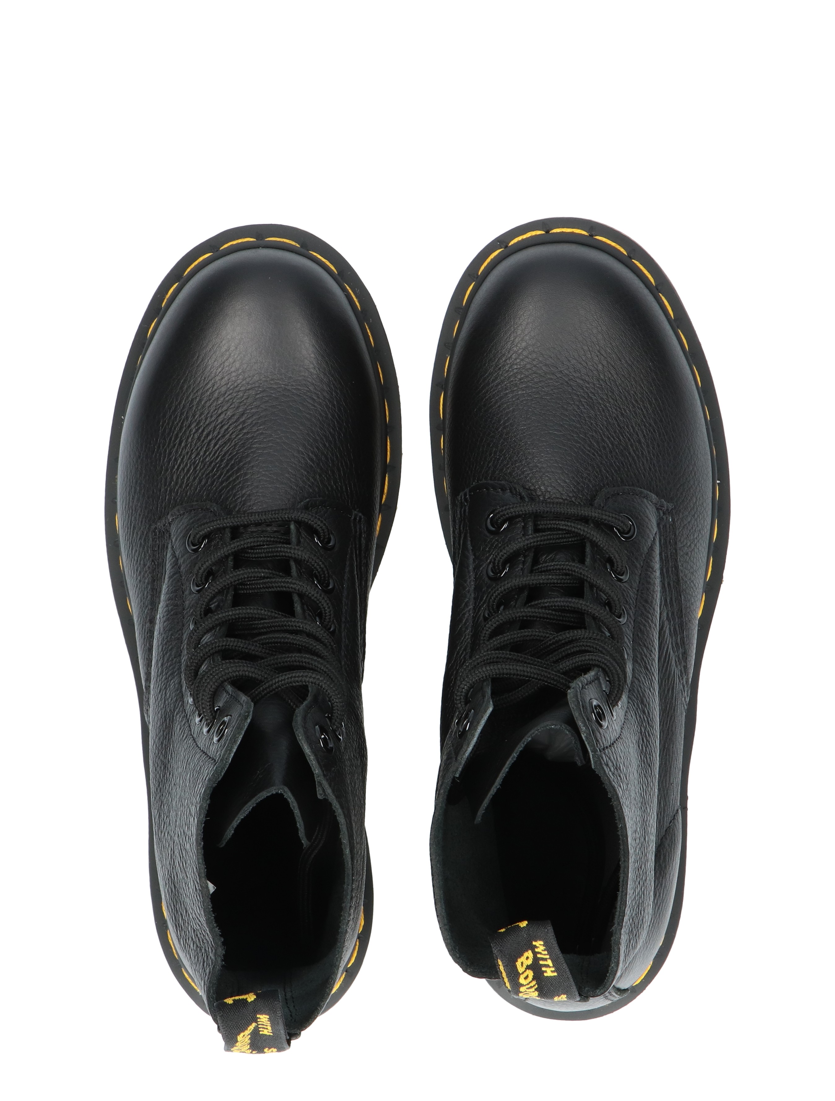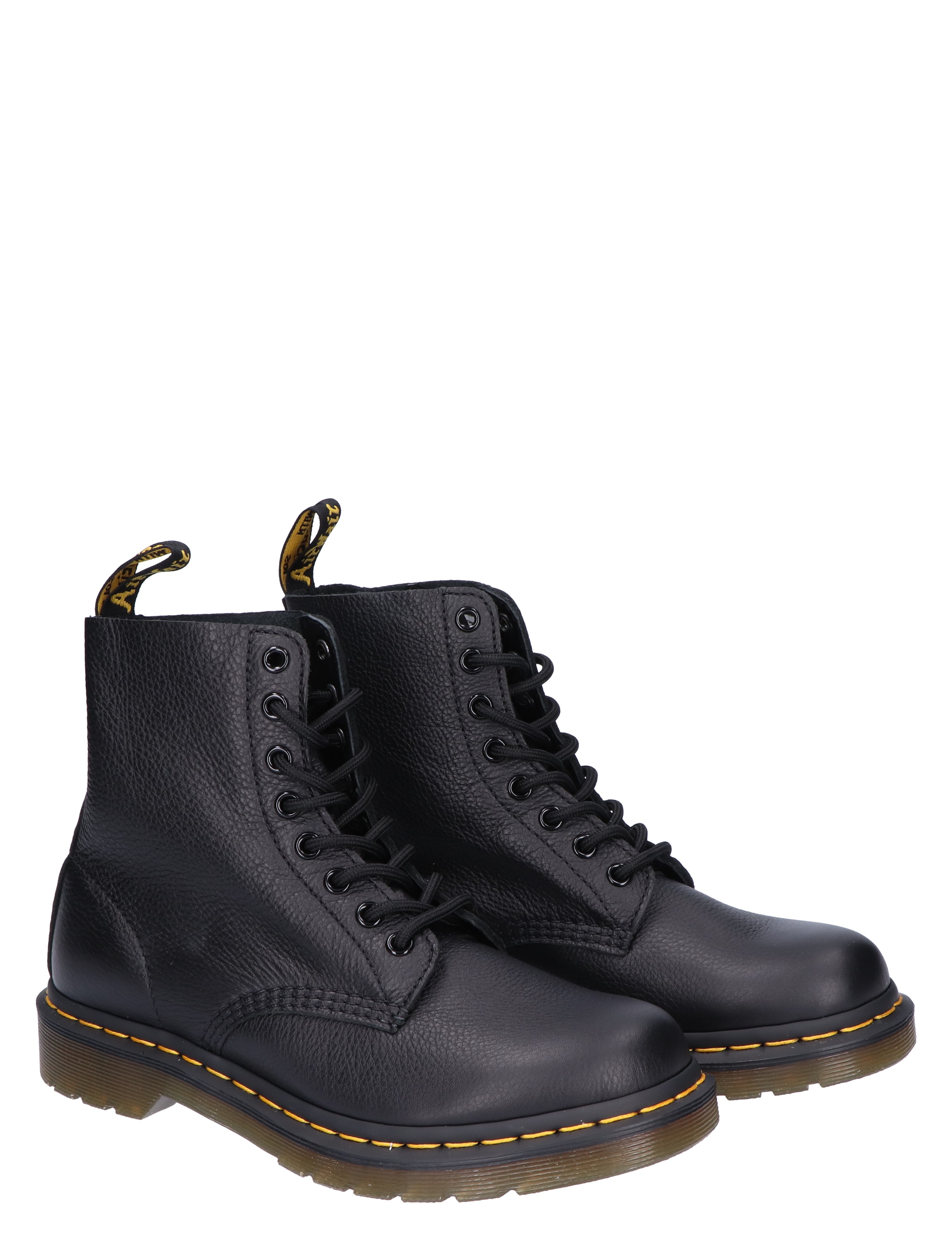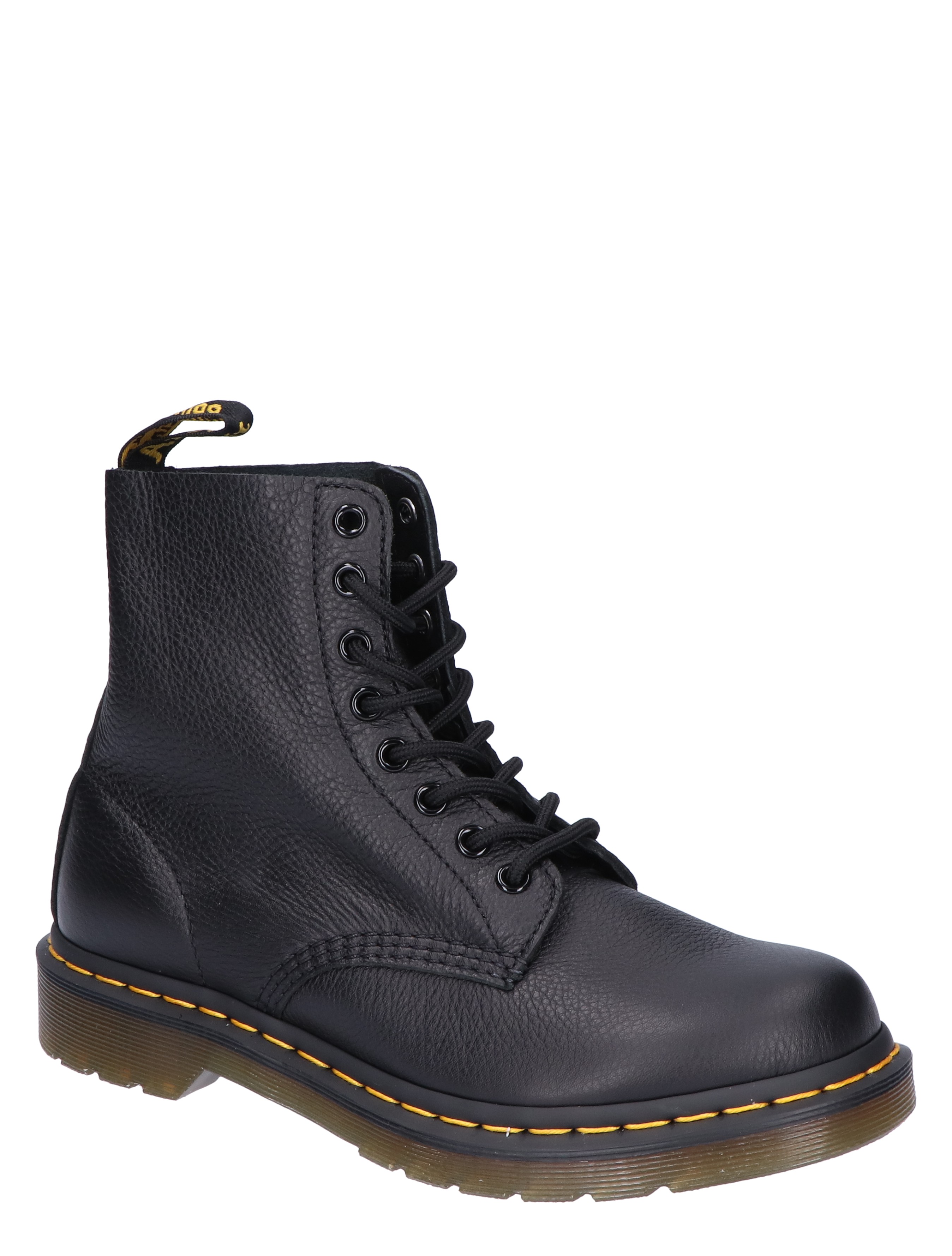 Dr. Martens 1460 Pascal veterboot voor dames. De boot is met 8 veterogen gemaakt van klassiek Dr. Martens 100% zacht Virginia leer met gegroefde zijkanten, hiellus, gele stiksels en de comfortabele bouncing SOLES ® met luchtkussen. De zool van 100% pvc.Dit model is gemaakt met een duurzame Goodyear-zoolrand. Bovenwerk en zool zijn warmtegelast en aan elkaar genaaid en niet gelijmd zoals bij veel andere schoenen. Met eenvoudige instap door de rits- en vetersluiting.