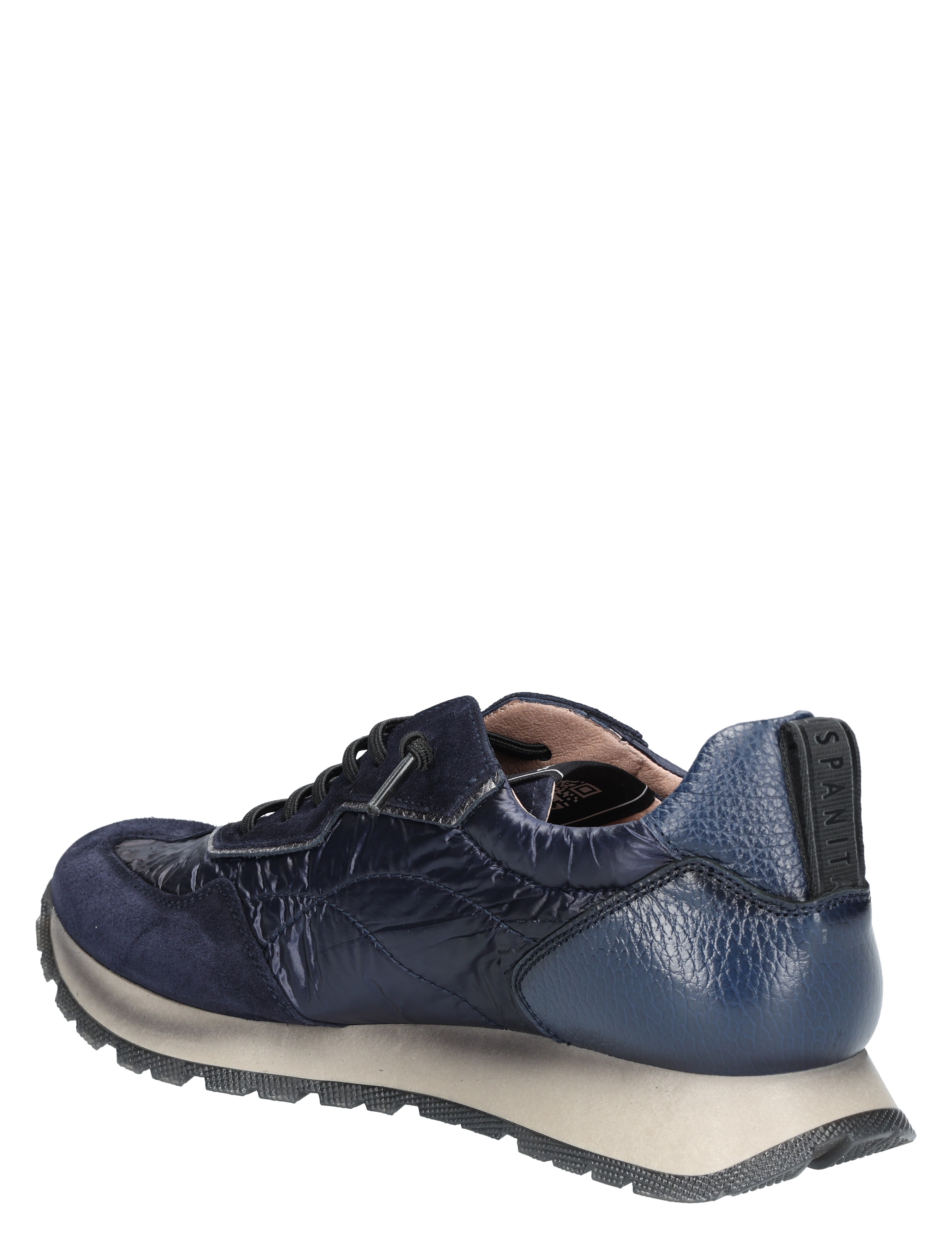 Hispanitas HI254209 lage sneaker voor dames in de kleur blauw. Dit sportieve model van het Spaanse Hispanitas is gemaakt van een trendy materiaalcombinatie van suede, leer en glanzende nylon. Door de elastische veters heeft de sneaker een eenvoudige instap. De stevige loopzool is gemaakt van rubber en heeft langs de zijkant een Hispanitas merkopdruk. Wordt geleverd met een extra setje katoenen veters.