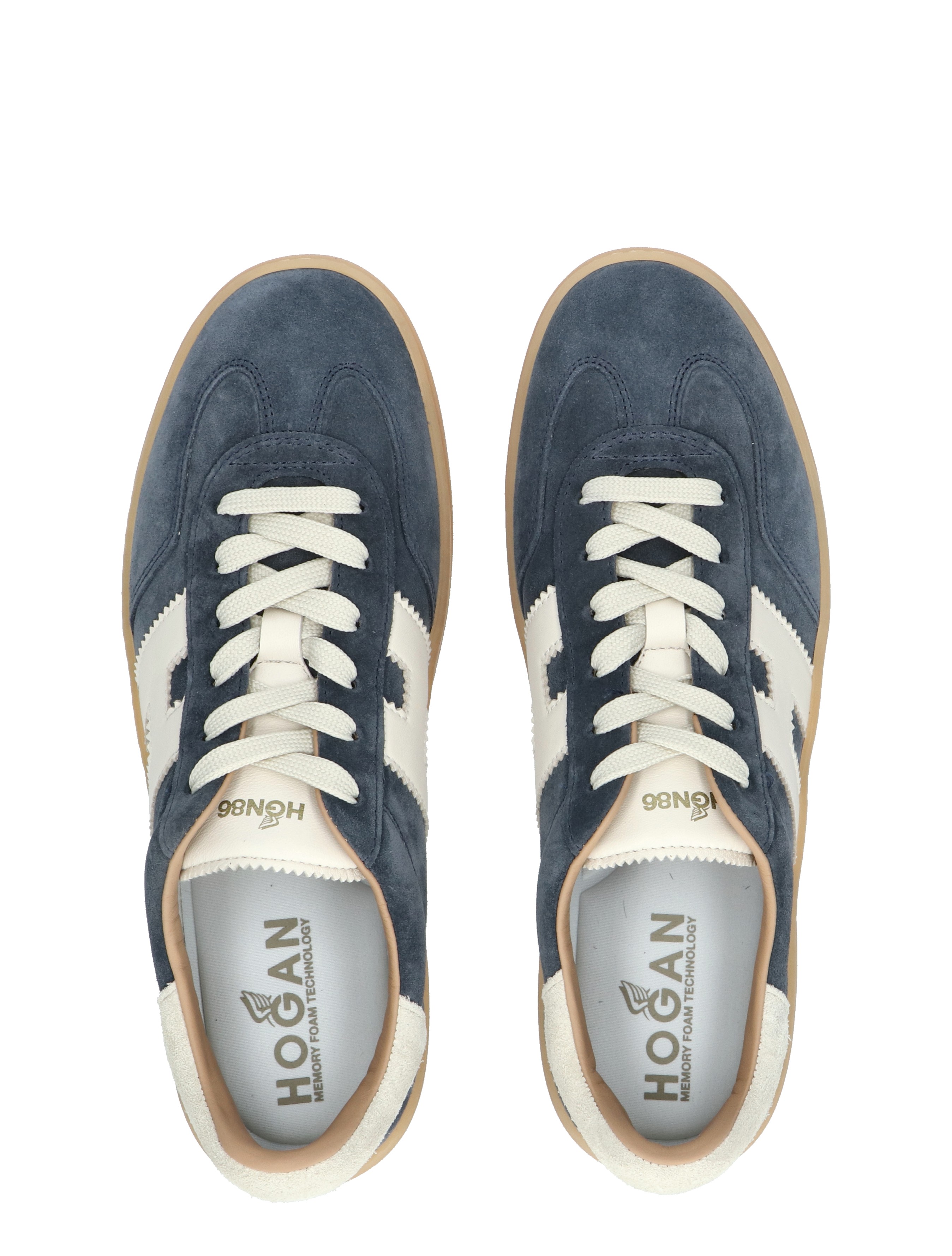 Hogan Cool lage sneaker voor heren in de kleur blauw. Perfecte mix van retro-elementen en eigentijdse lijnen, de Hogan Cool sneakers worden gekenmerkt door een verfijnde look. Het bovenwerk is gemaakt van suede en heeft een gewatteerde tong en een gekartelde zijkant van nappaleer. De gummy zool benadrukt de retro uitstraling. Gemaakt in Italië.