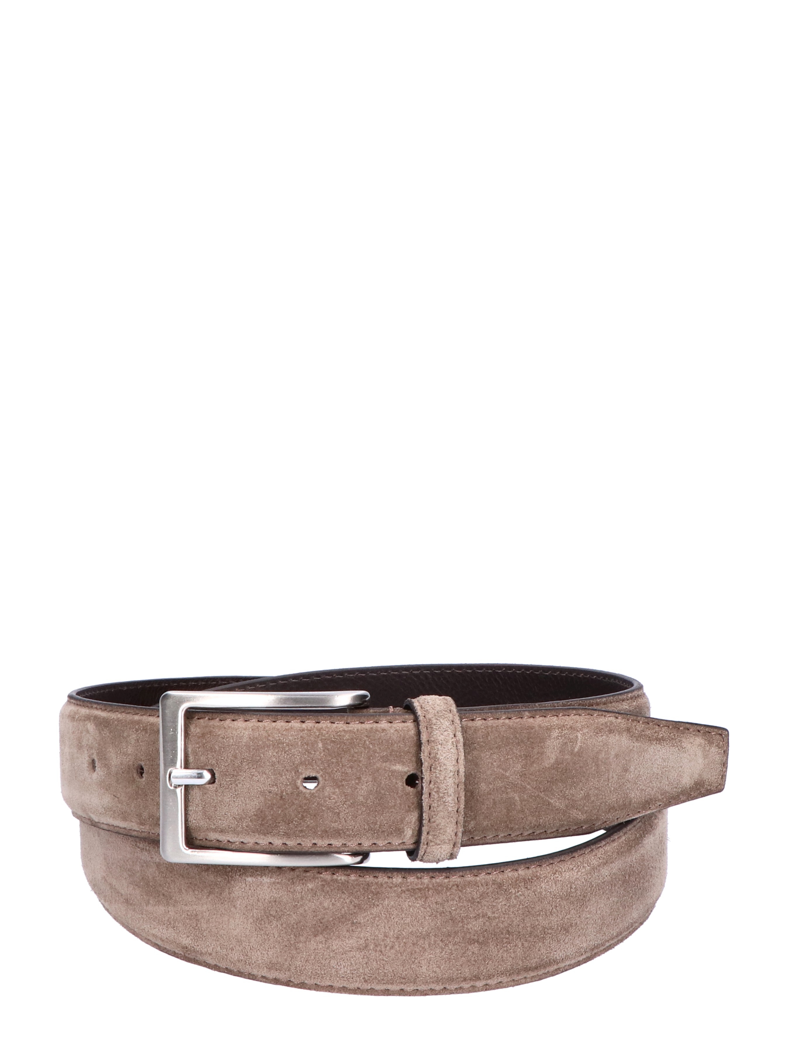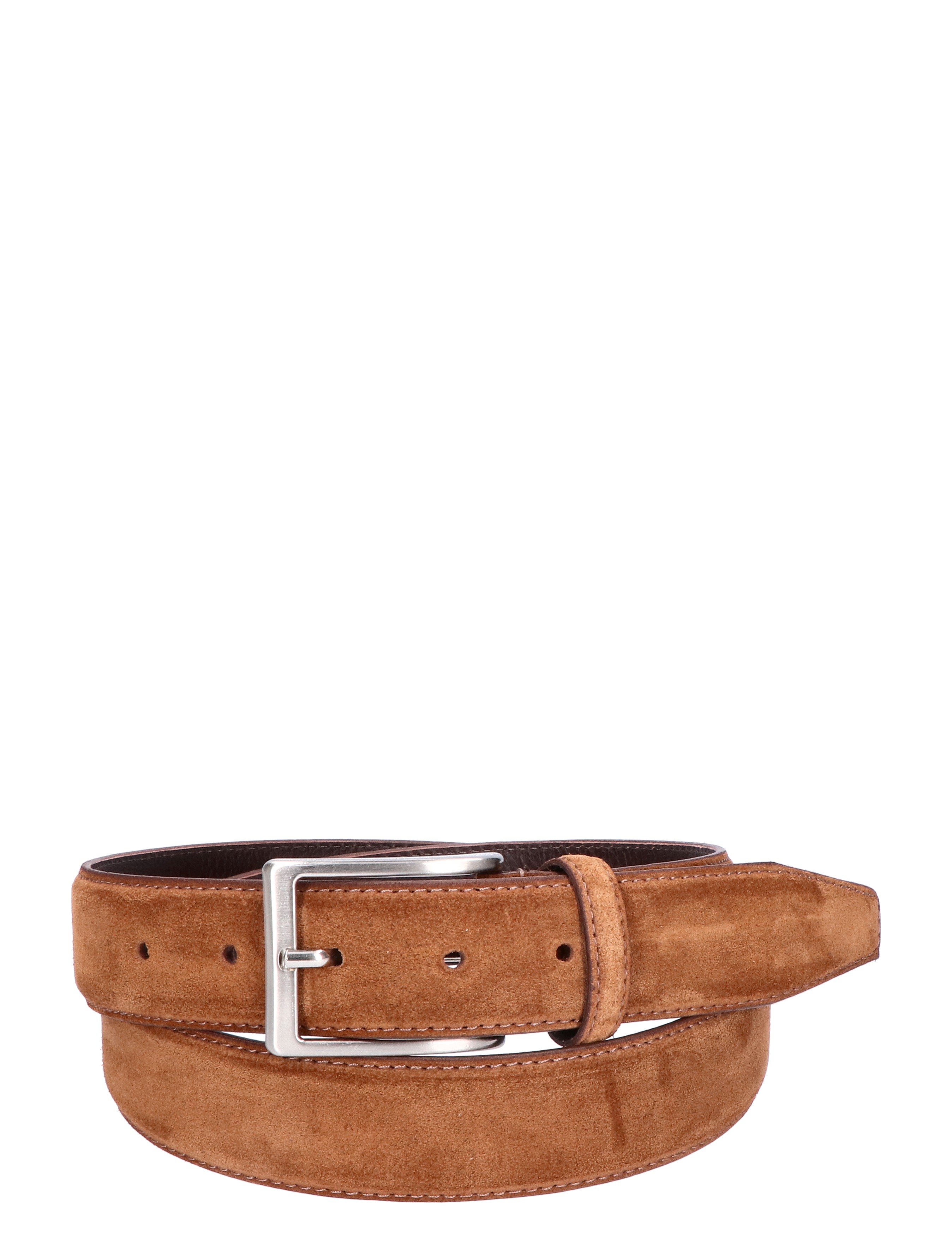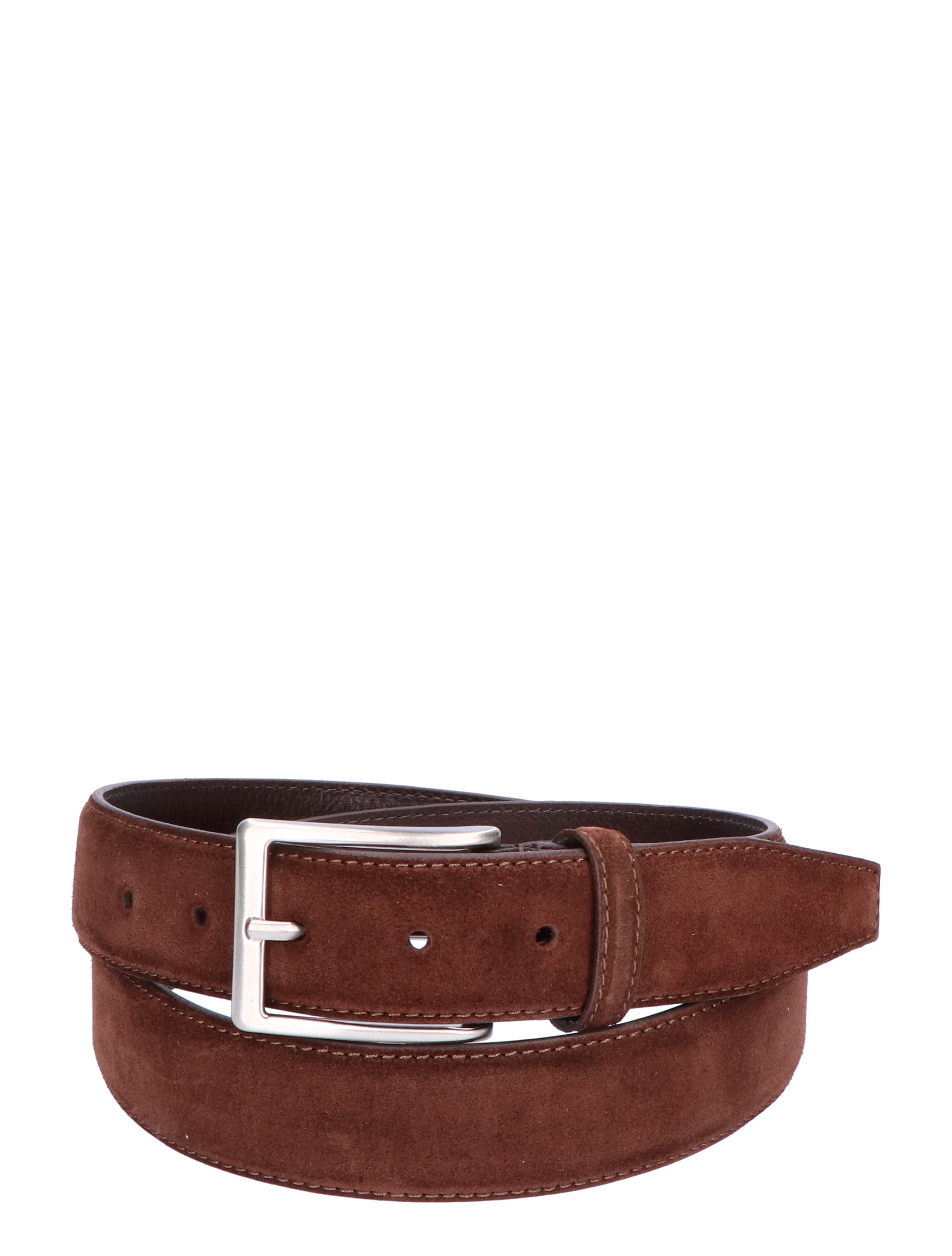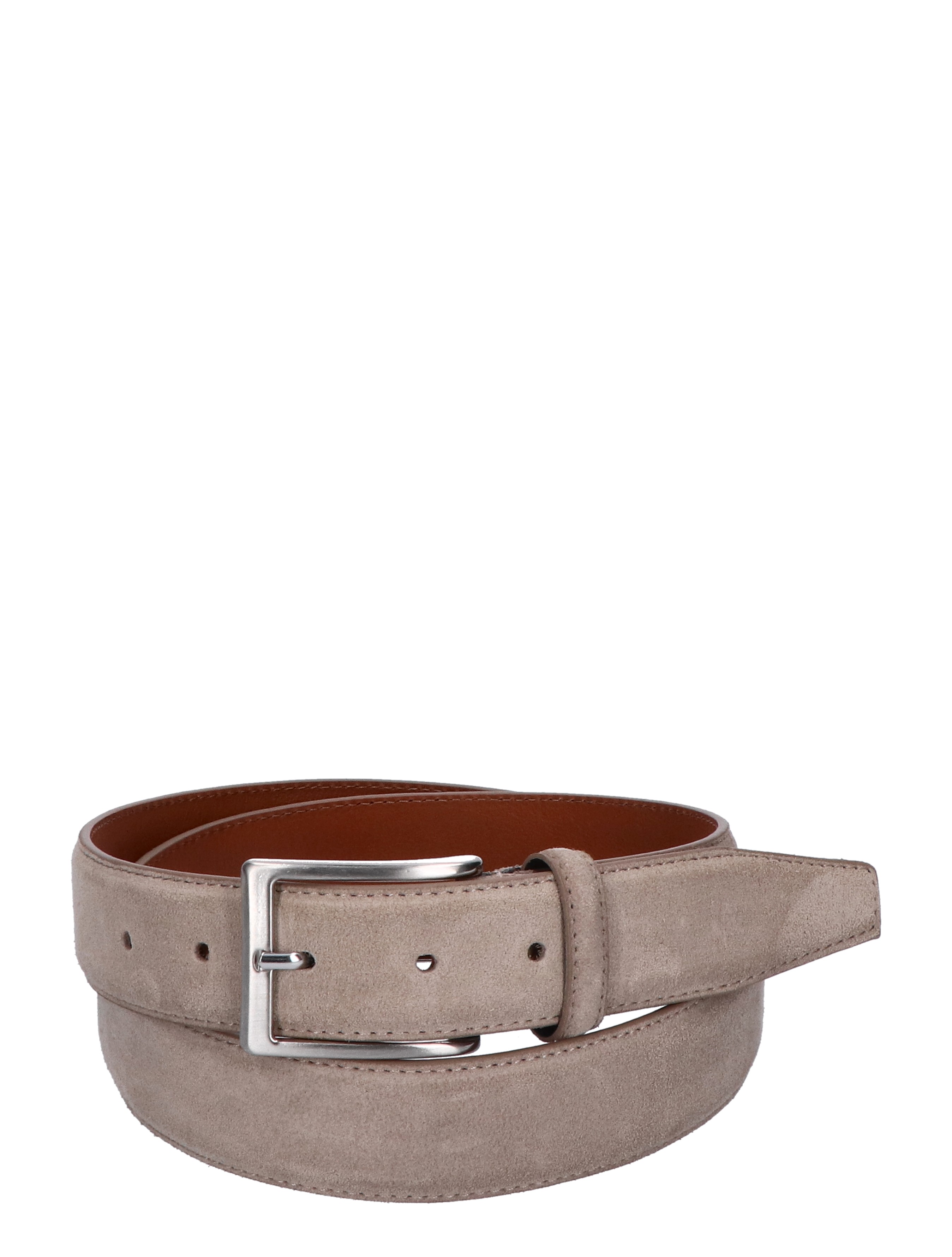 Officine Napoli 2035-35 riem voor heren. Deze stijlvolle riem is uitgevoerd in suede met een binnenkant van leer. De metalen gesp is van rvs. Wanneer de riem perfect op maat is, draag je de riem in het middelste gaatje. De lengtemaat is de maat in het middelste gaatje. De riem is 3,5 cm breed. Gemaakt in Spanje.