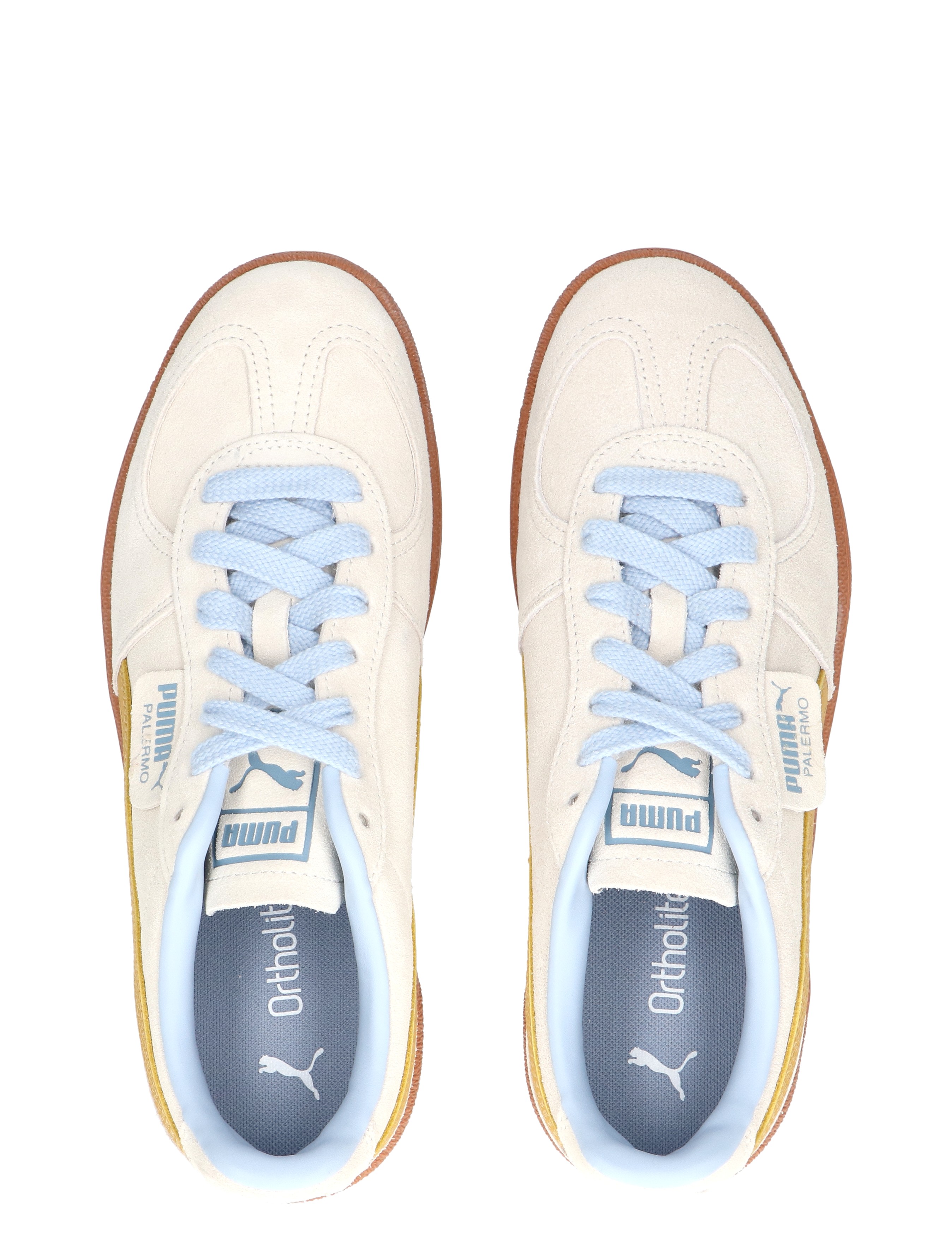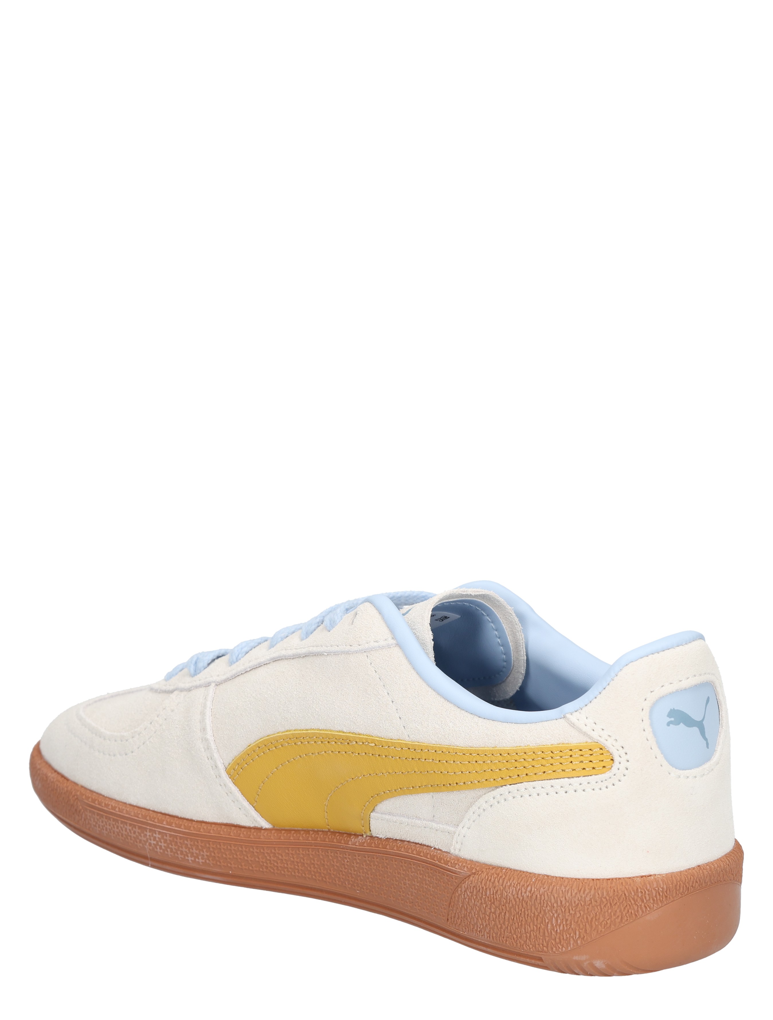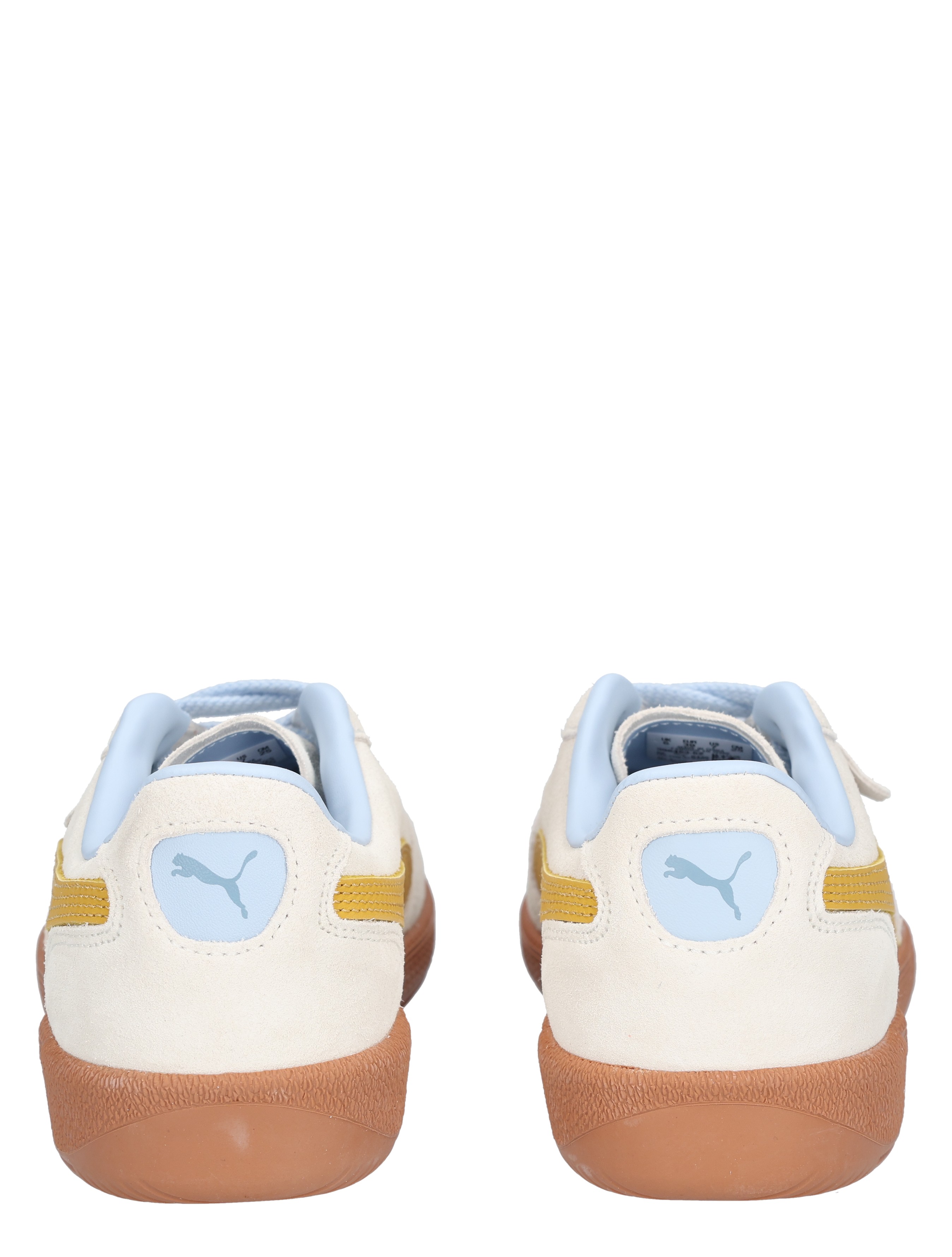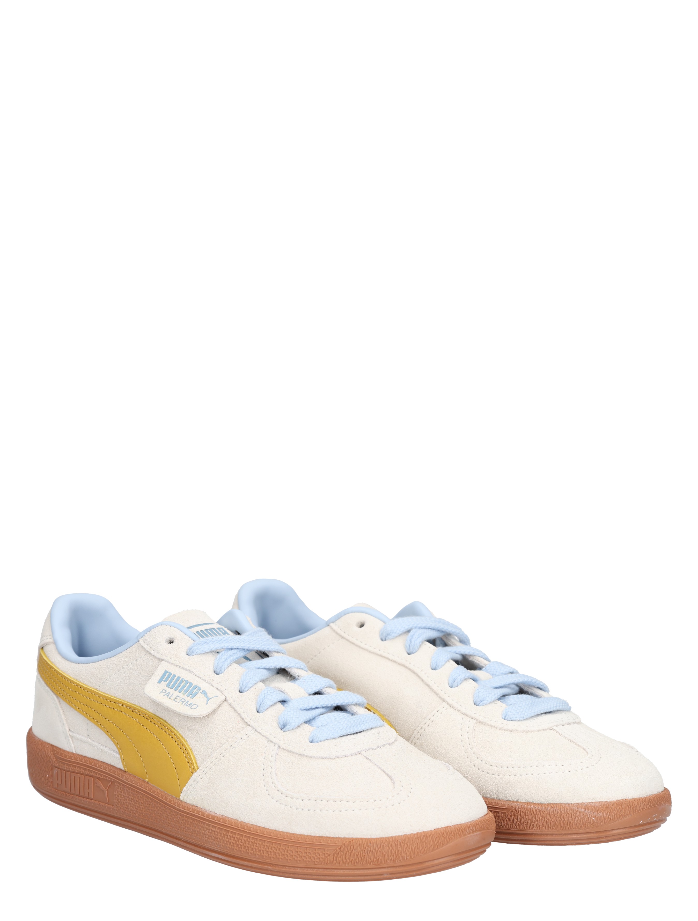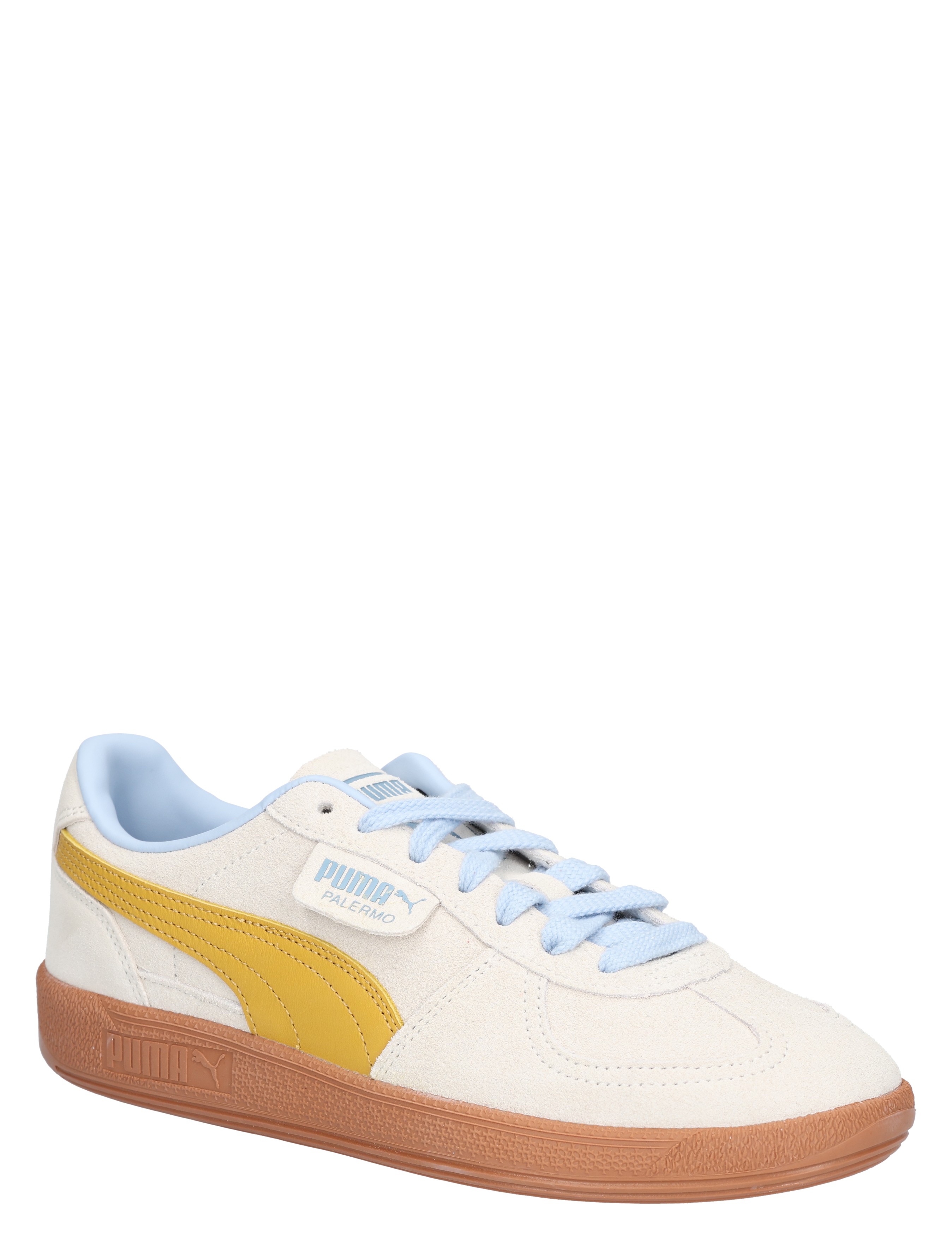 PUMA Palermo lage sneaker voor dames in de kleur warm white gold. De Palermo komt rechtstreeks uit de archieven van het populaire merk Puma. Deze klassieke terrace-schoenen bouwen voort op het voetbalerfgoed en zijn aantrekkelijk voor de sneakerheads en de mode-experts van nu. Deze uitvoering heeft een buitenwerk van suede met een leren Formstrip.
