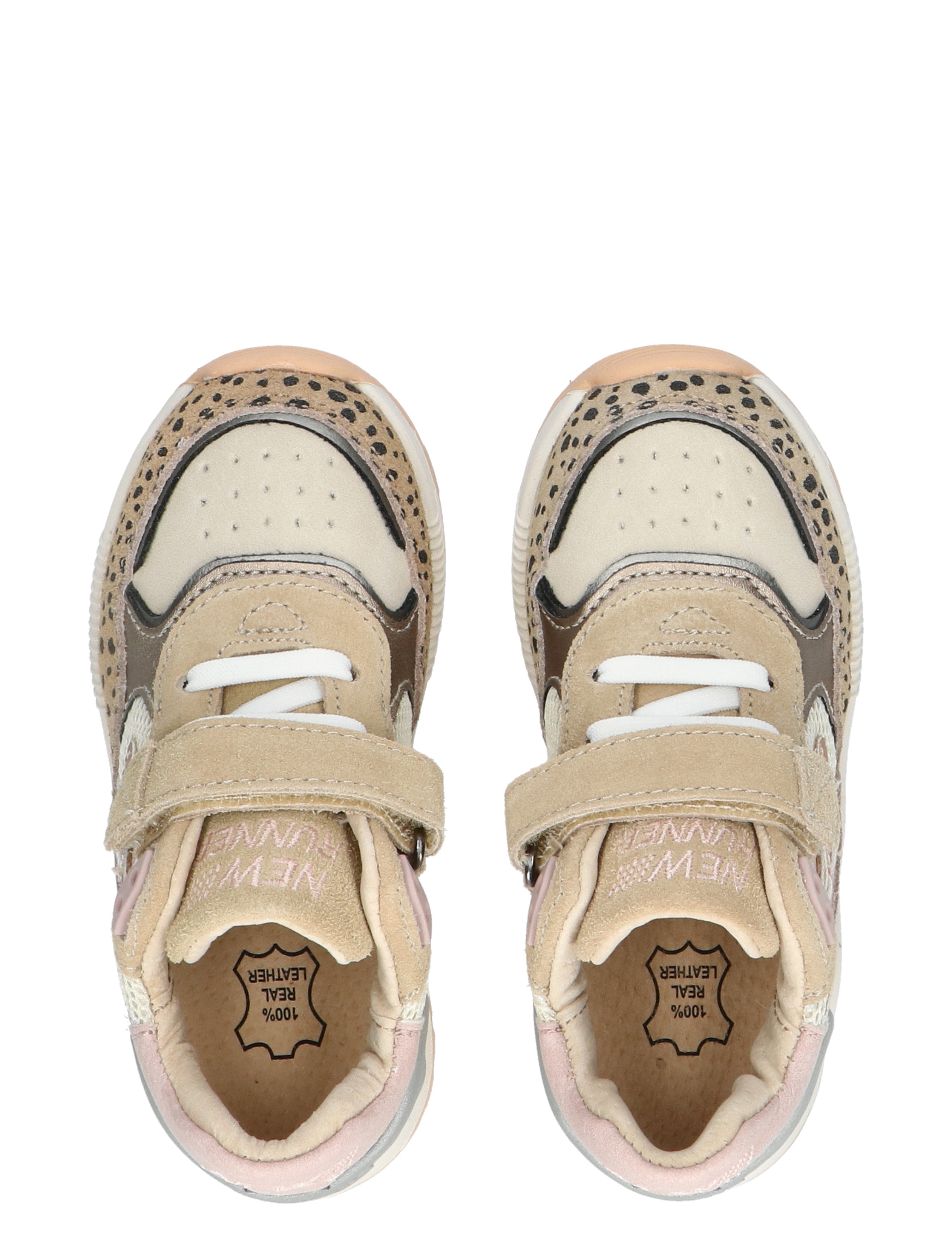 Shoesme ST25S006 sneaker voor kids. Stap in de wereld van comfort en fashion met deze sneaker met een leopard printje en metallic details in beige en pink. Perfect voor kids die stevig op hun voeten staan en dol zijn op lopen, rennen en spelen. Met een sportief ontwerp en een flexibele zool, geeft deze sneaker demping en grip op ieder oppervlak.