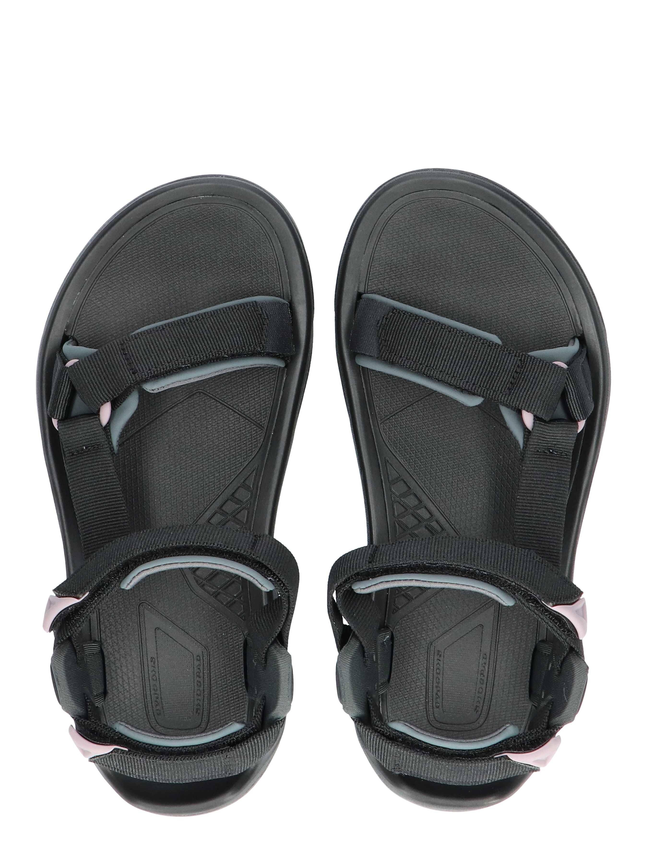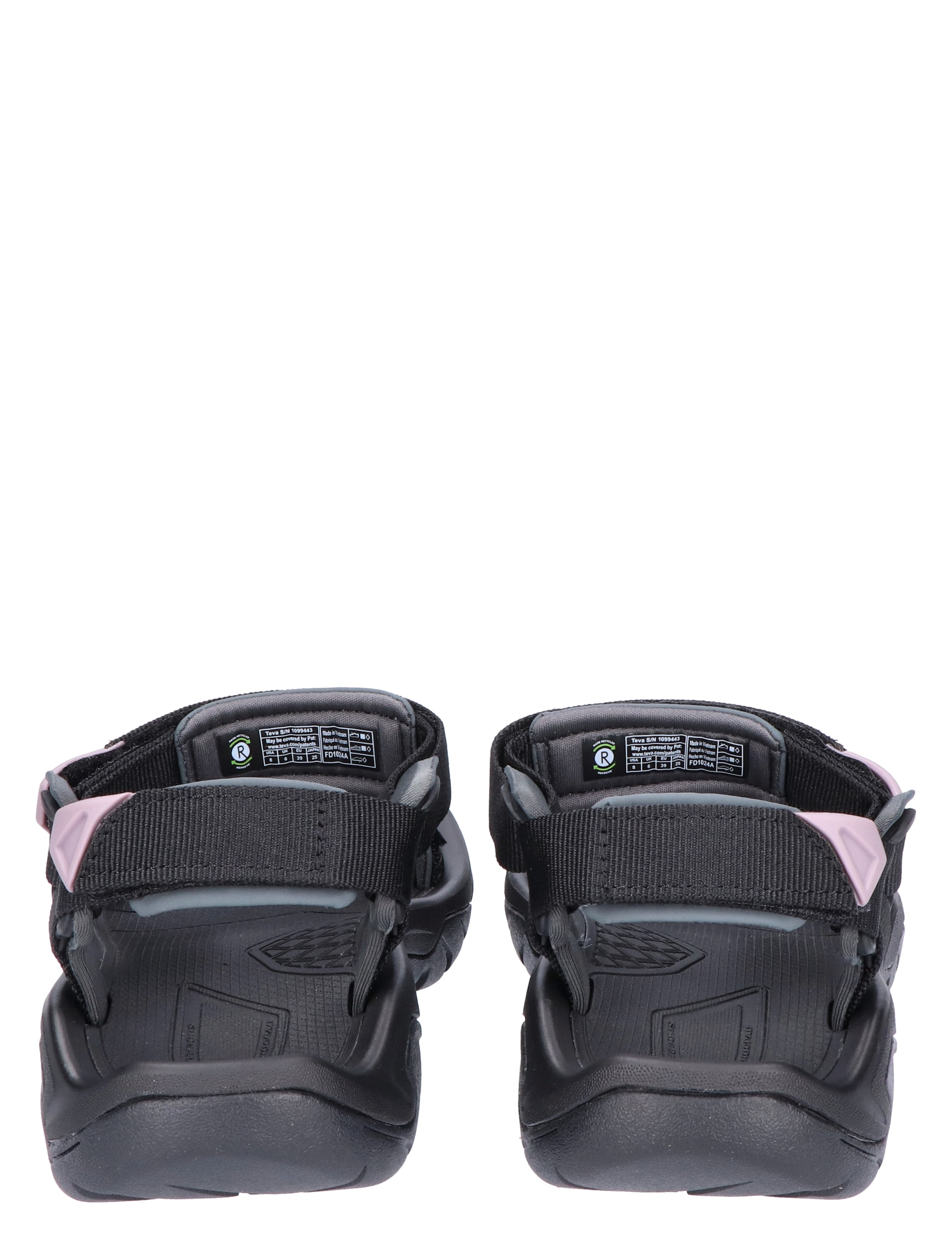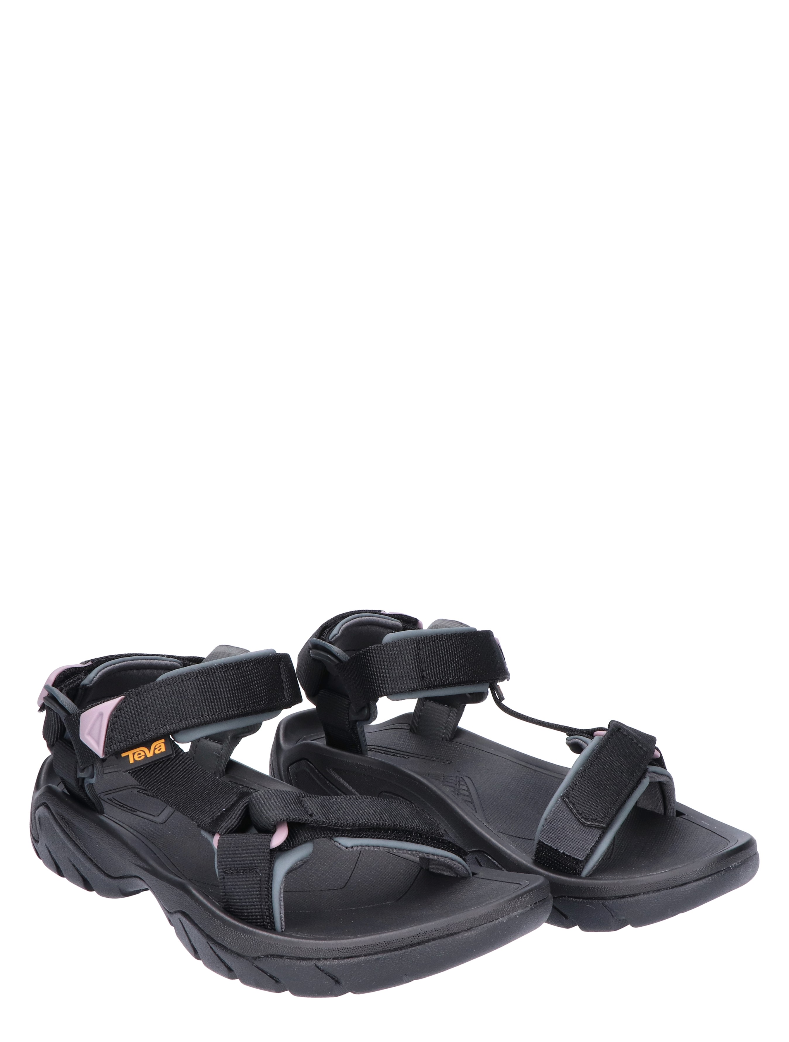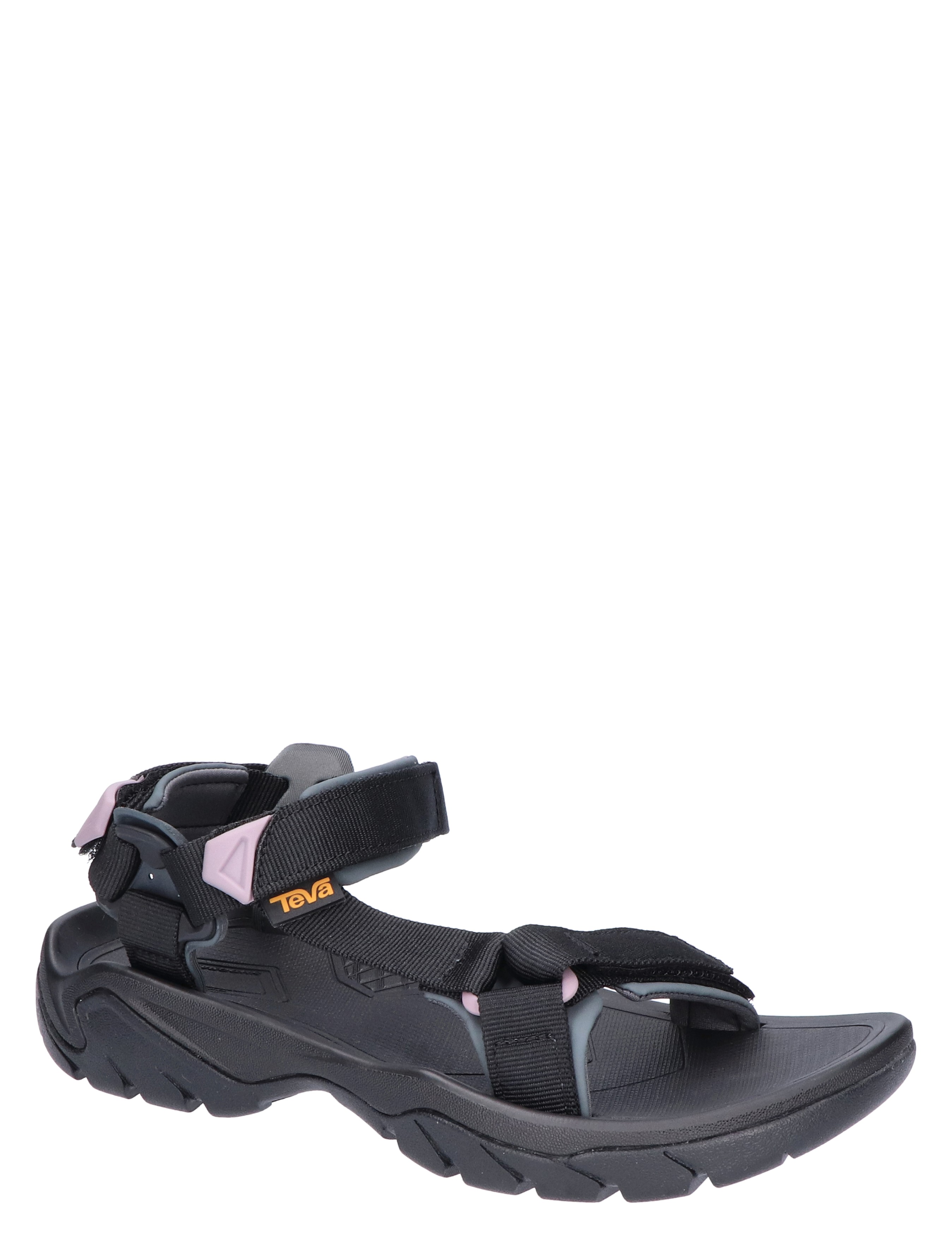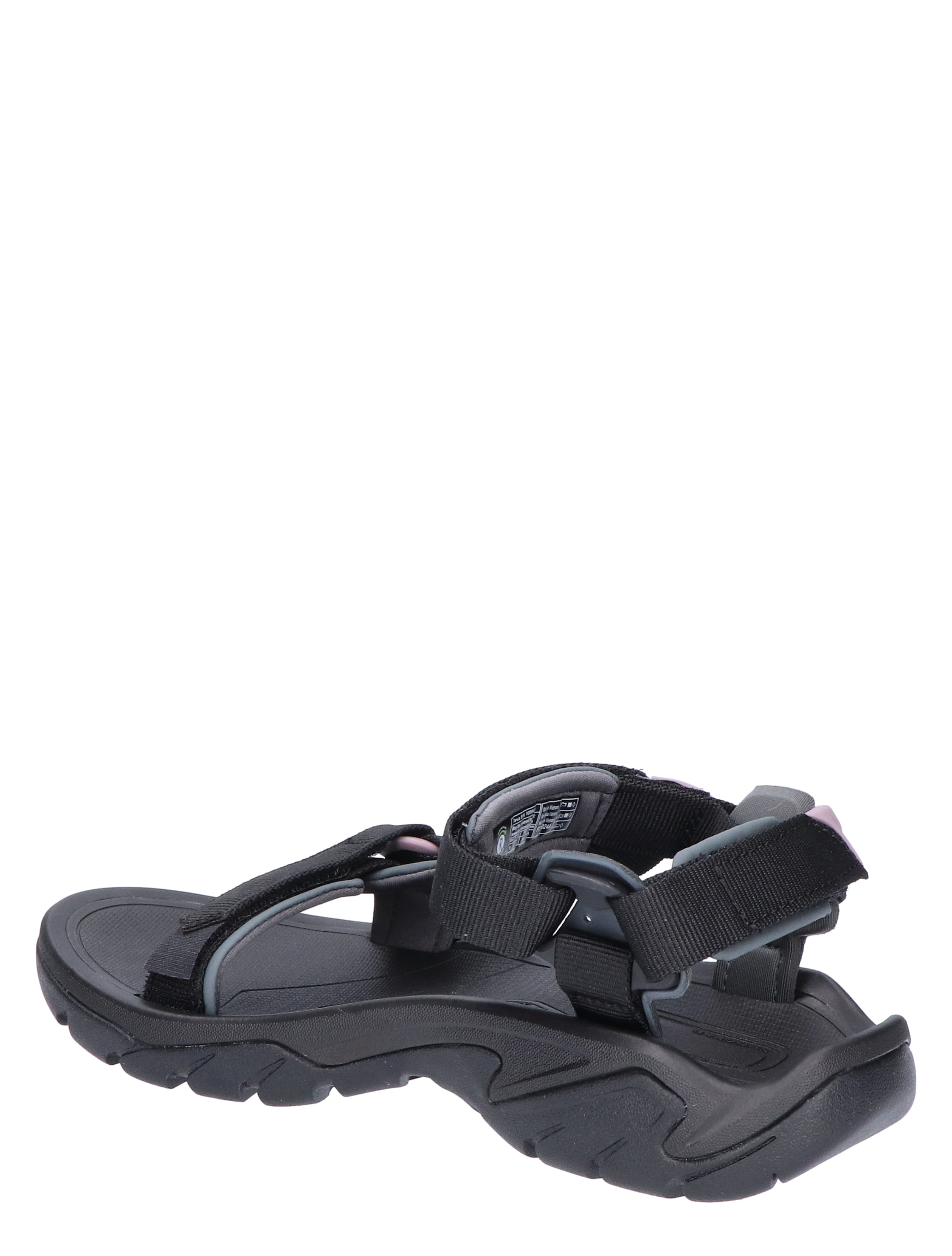 Teva Terra Fi 5 Universal sandaal voor dames in black. Met het technische model dat is afgestemd op de trails, kun je wel iets verwachten van de Terra Fi 5 Universal. Deze sneldrogende sandaal is geschikt voor ieder avontuur en biedt een ondersteunende middenzool, een rubberen buitenzool met extra grip en klittenbandsluiting om de sandaal de sandaal vlot aan en uit te trekken en perfect af te stellen. Sneldrogend band van gerecycled plastic met traceerbaar, verifieerbaar REPREVE®-polyestergaren van Unifi® ondersteunt je voet en kan tegen een stootje. Gevoerd met lichte, ademende mesh, die voor 60% bestaat uit gerecycled polyester en je voeten koel en comfortabel houdt. Voorgevormde PU-middenzool geeft demping en ondersteunt de voet op een oneffen ondergrond. De robuuste buitenzool van Spider Rubber is bijzonder slijtvast en biedt een goede grip. Behandeld met Life Natural, een antigeurbehandeling op basis van pepermunt. Duurzaamheidsinitiatief(ven): vegan; band van gerecycled plastic met traceerbaar, verifieerbaar REPREVE®-polyestergaren van Unifi®.