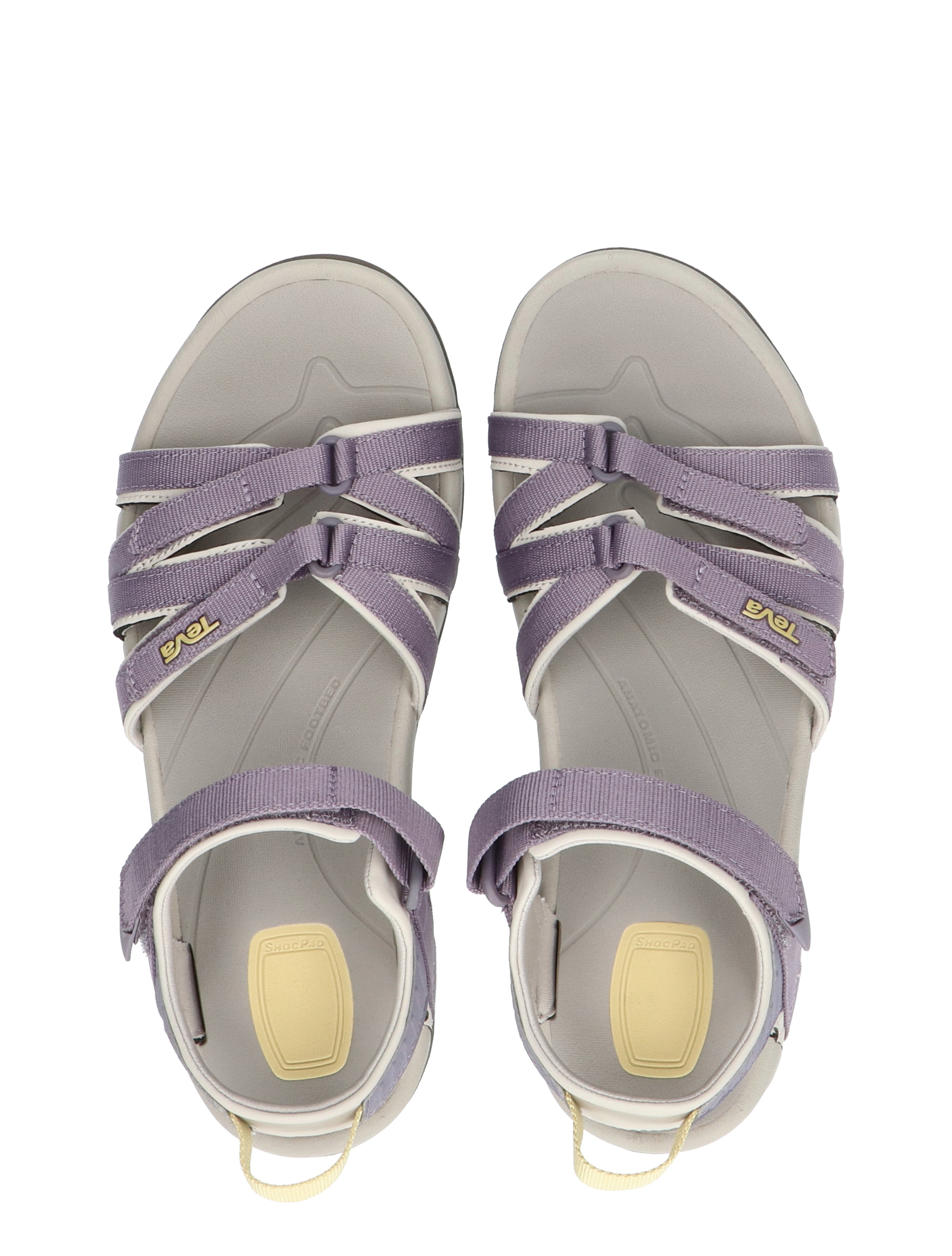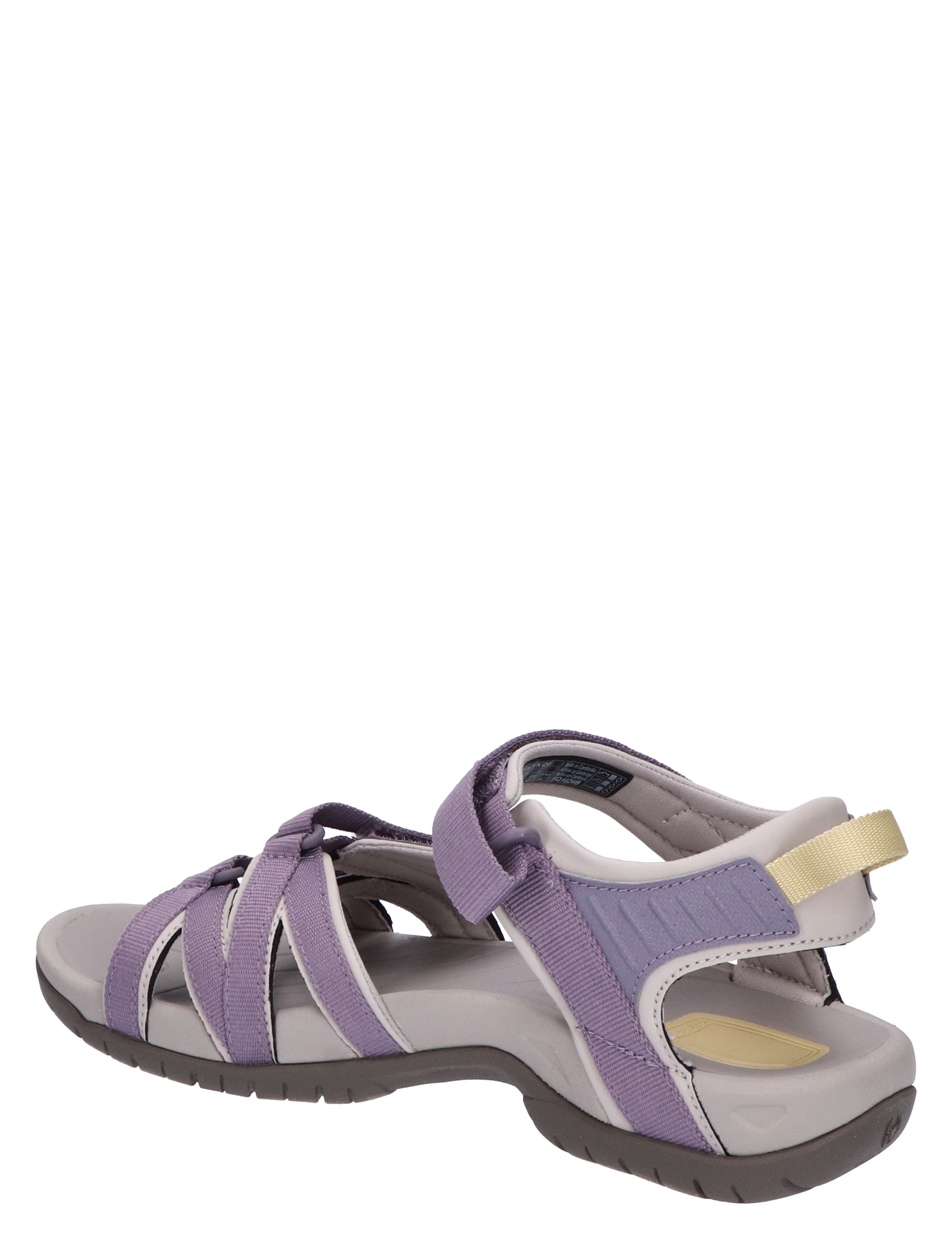Teva Tirra sandaal voor dames in gyr. Deze sandaal is multifunctioneel, helemaal afgestemd op de voet en is waanzinnig comfortabel tijdens alle avonturen.Perfect voor: dagwandelingen, lichte wandelingenSneldrogende banden van gerecycled plastic met traceerbaar, controleerbaar REPREVE®-polyestergaren van Unifi® ondersteunen je voet en kunnen tegen een stootje.Met de gemakkelijke klittenbandsluiting vlot aan en uit te trekken, en de pasvorm perfect afstellen.De dempende Shoc Pad™ in de hiel absorbeert schokken wanneer nodig.Een gevormde EVA-middenzool biedt de voetholte de ondersteuning die de meeste sandalen missen en de nylon tussenzool stabiliseert en ondersteunt de voet op een onregelmatige ondergrond.De robuuste buitenzool van Spider Rubber is zeer stevig en biedt goede grip.Duurzaamheidsinitiatief(ven): veganistisch, band van gerecycled plastic met traceerbare, verifieerbare REPREVE®-polyestergarens van Unifi®.