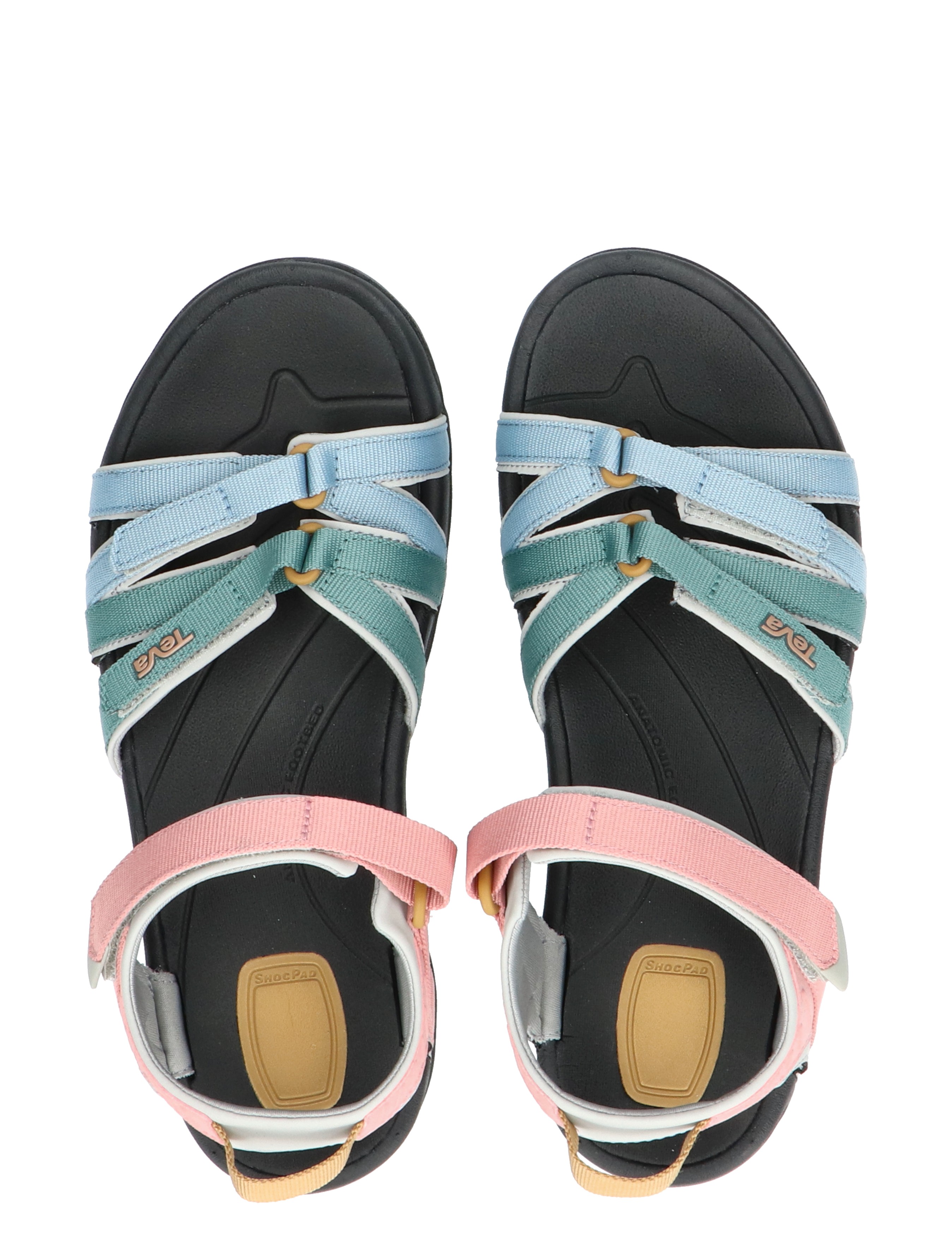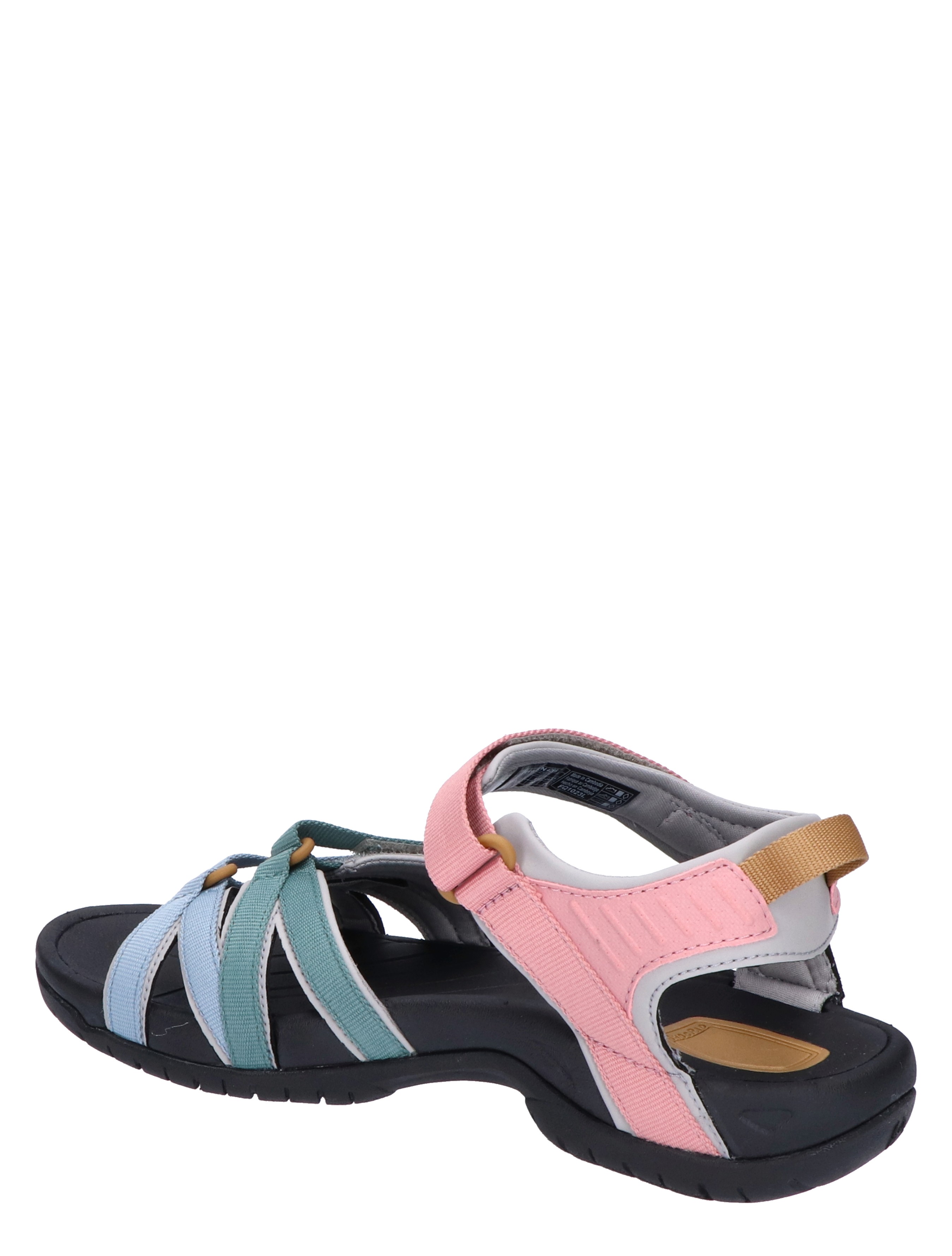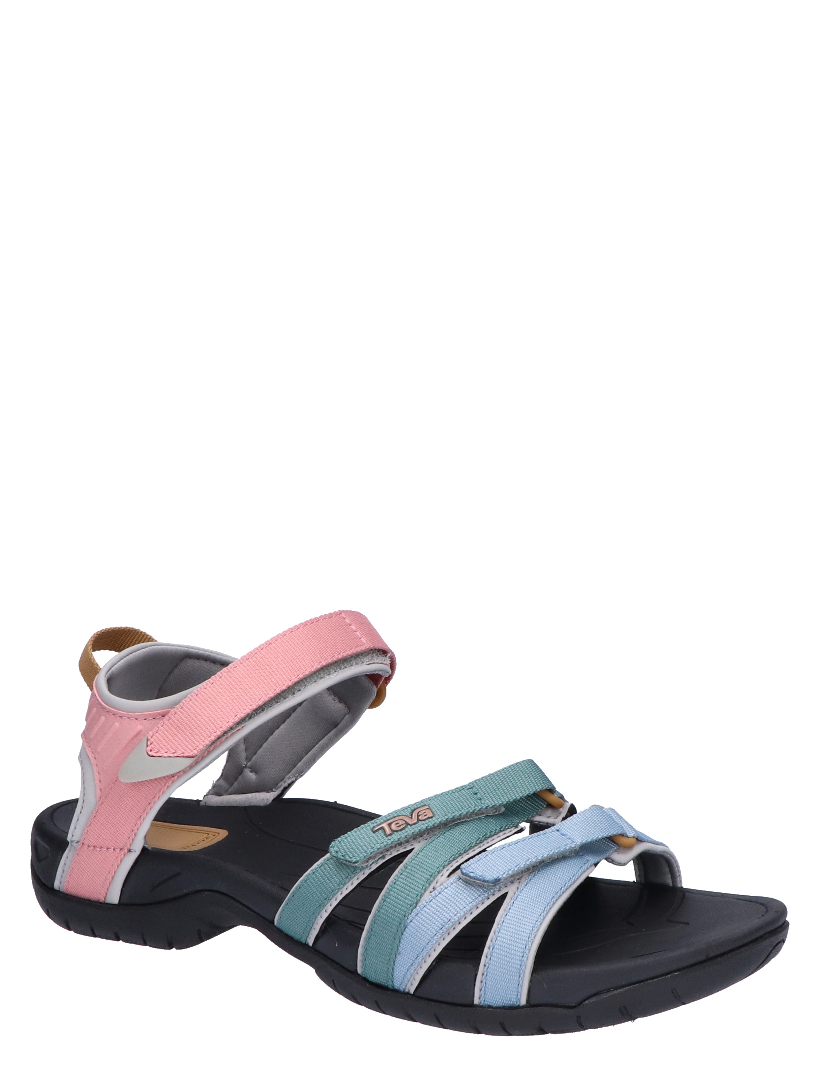 Teva Tirra sandaal voor dames in light earth multi. Deze sandaal is multifunctioneel, helemaal afgestemd op de voet en is waanzinnig comfortabel tijdens alle avonturen.Perfect voor: dagwandelingen, lichte wandelingenSneldrogende banden van gerecycled plastic met traceerbaar, controleerbaar REPREVE®-polyestergaren van Unifi® ondersteunen je voet en kunnen tegen een stootje.Met de gemakkelijke klittenbandsluiting vlot aan en uit te trekken, en de pasvorm perfect afstellen.De dempende Shoc Pad™ in de hiel absorbeert schokken wanneer nodig.Een gevormde EVA-middenzool biedt de voetholte de ondersteuning die de meeste sandalen missen en de nylon tussenzool stabiliseert en ondersteunt de voet op een onregelmatige ondergrond.De robuuste buitenzool van Spider Rubber is zeer stevig en biedt goede grip.Duurzaamheidsinitiatief(ven): veganistisch, band van gerecycled plastic met traceerbare, verifieerbare REPREVE®-polyestergarens van Unifi®.