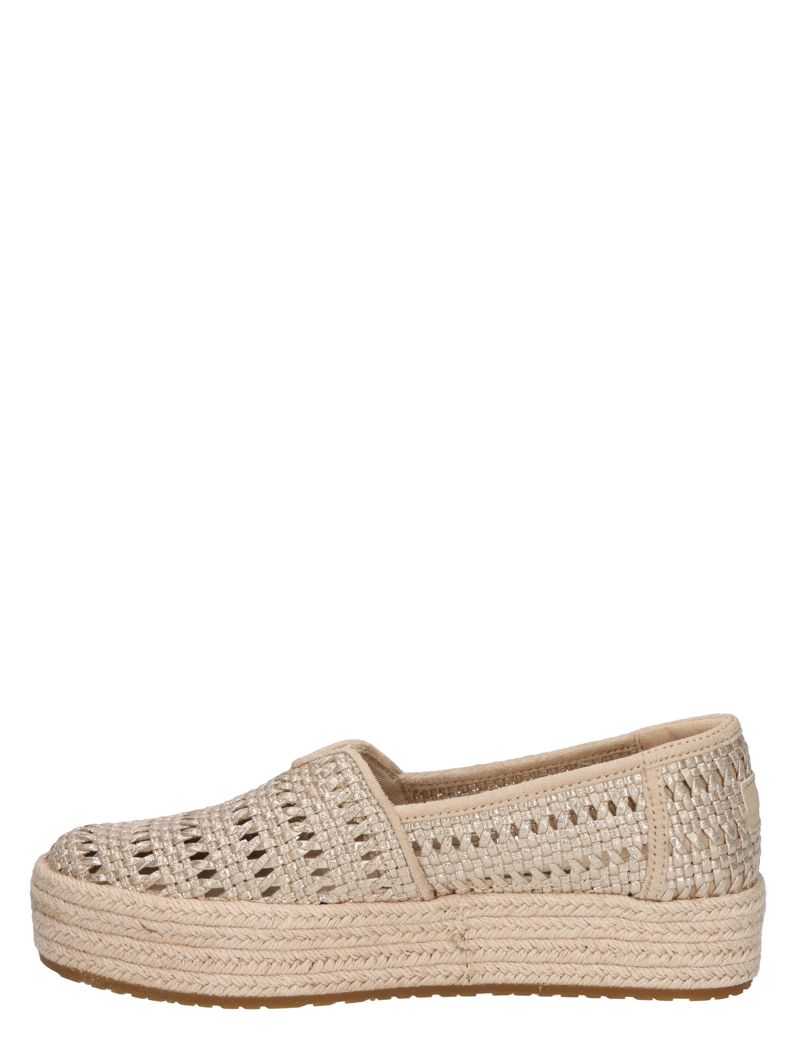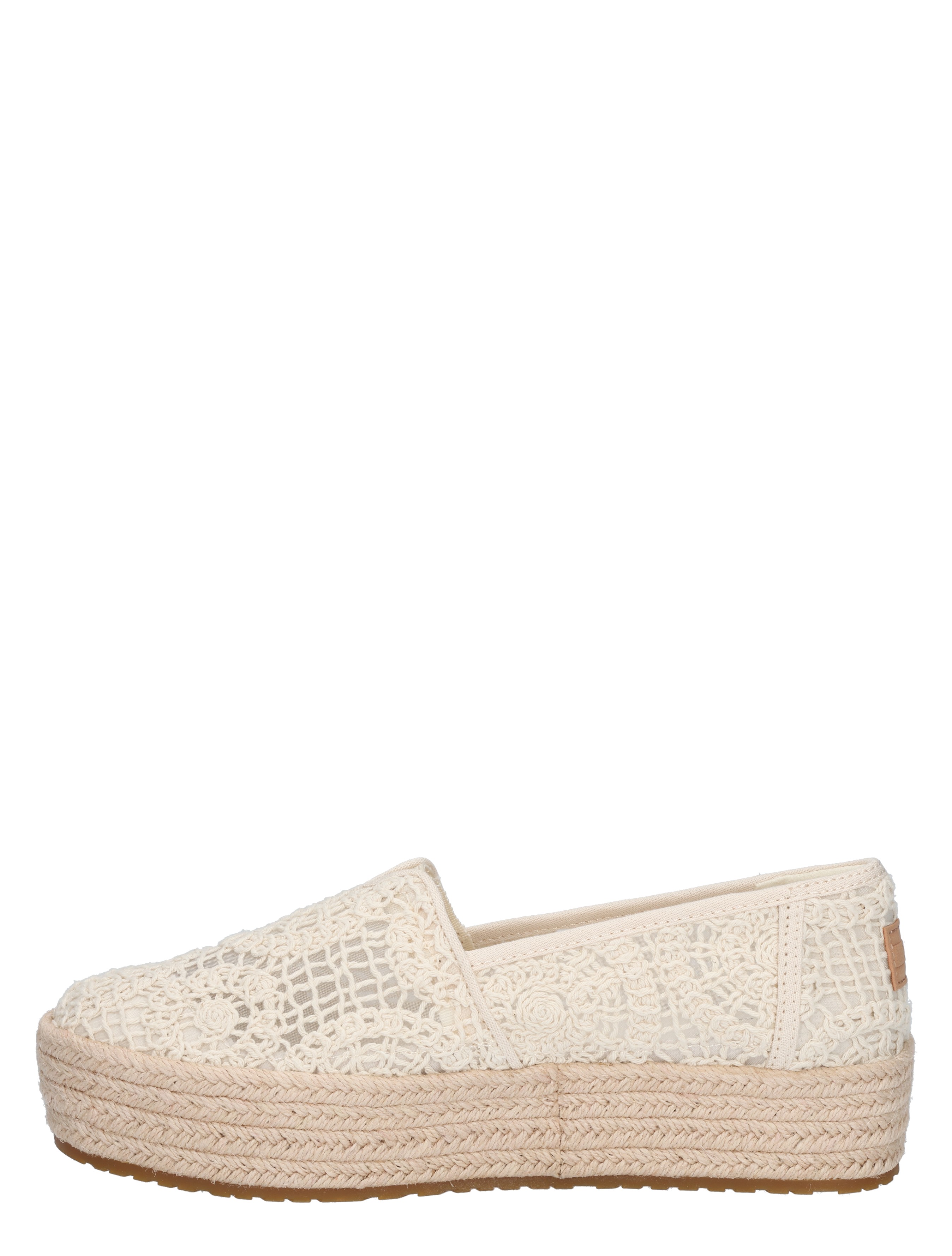 TOMS houdt het niet alleen bij Alpargatas. Ook trendy slip ons, sandalen, wedges en slippers maken deel uit van de collectie. Allemaal met een uniek zomers karakter en fijne pasvorm, want TOMS blijft trouw aan de heritage van de alpargata en espadrille: schoenen maken om comfortabel mee te lopen en eropuit te gaan. Daarbij probeert TOMS zo duurzaam mogelijk te produceren door Earthwise™ materialen te gebruiken als 100% biologisch of gerecycled katoen.