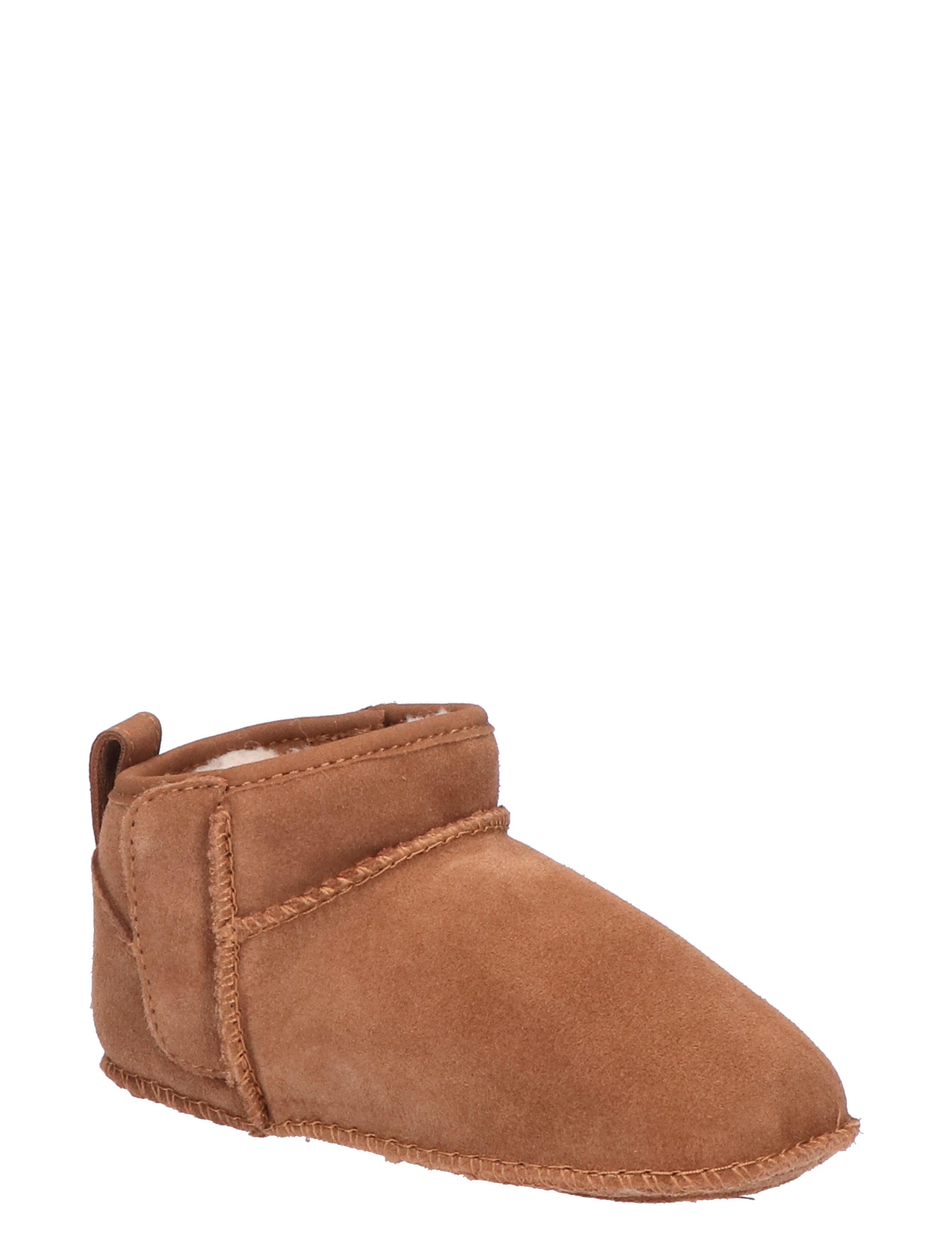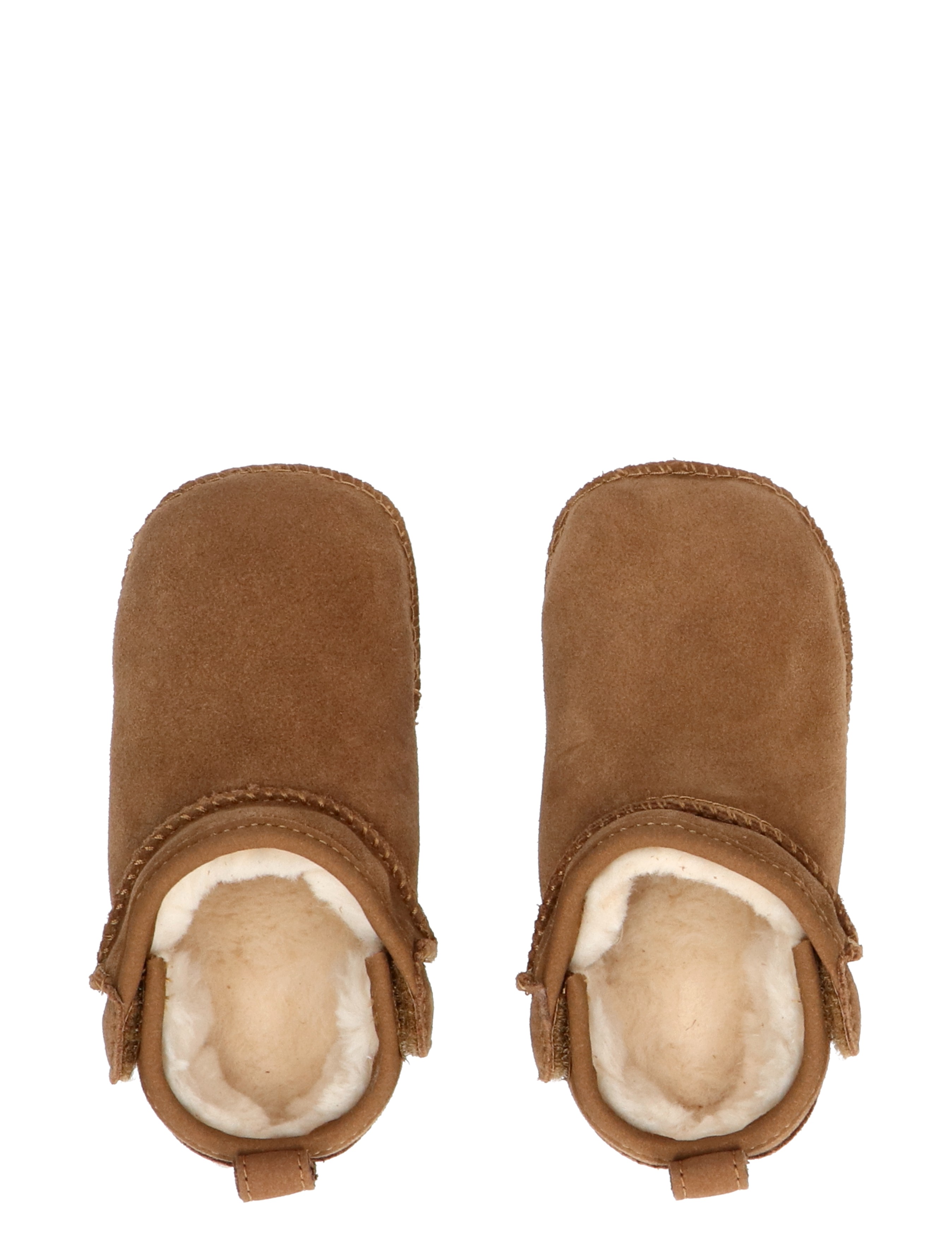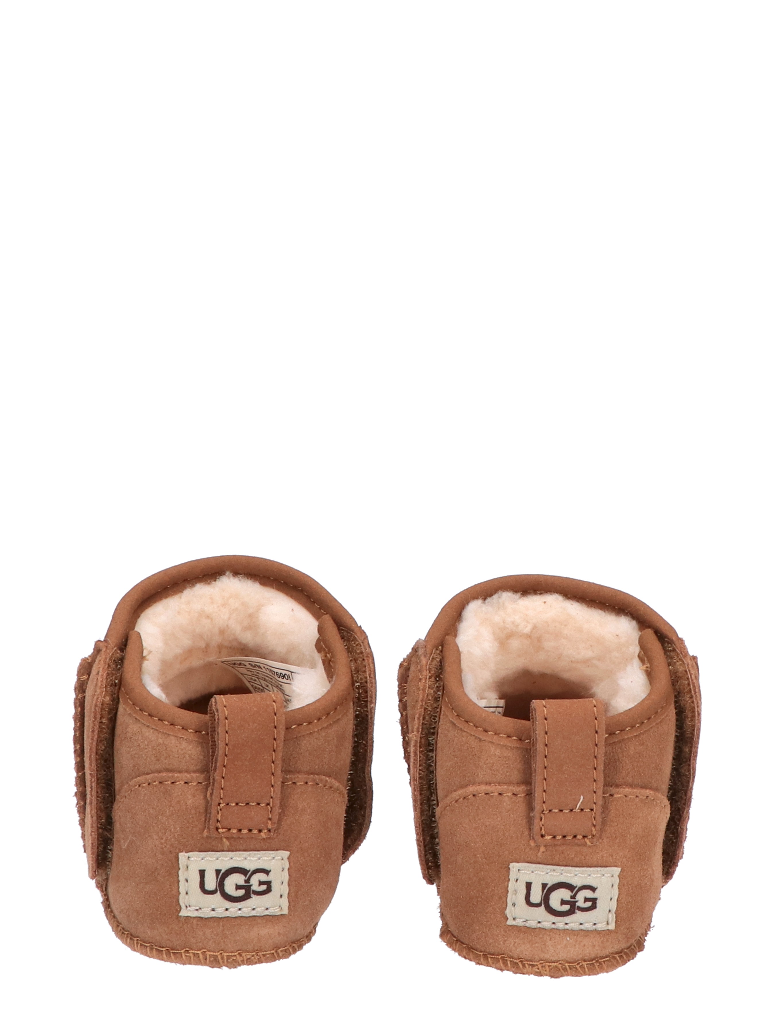 Baby Classic Ultra Mini. Dit Classic Ultra Mini unisex slofje heeft alle kenmerken van onze fullsize Classics, zoals het iconische suède bovenstuk en voering en inlegzool met UGGplush™ geüpcyclede wolmix, voor dat comfortabele en dempende gevoel. Door de klittenbandsluitingen aan de zijkant is het slofje gemakkelijk aan te trekken. TreklusVoering van 10 mm UGGplush™: 60% geüpcyclede wol, 40% TENCEL™ lyocellInlegzool van 10 mm UGGplush™: 60% geüpcyclede wol, 40% TENCEL™ lyocellBuitenzool van gevormd rubberGeweven hiellabel met UGG®-logo