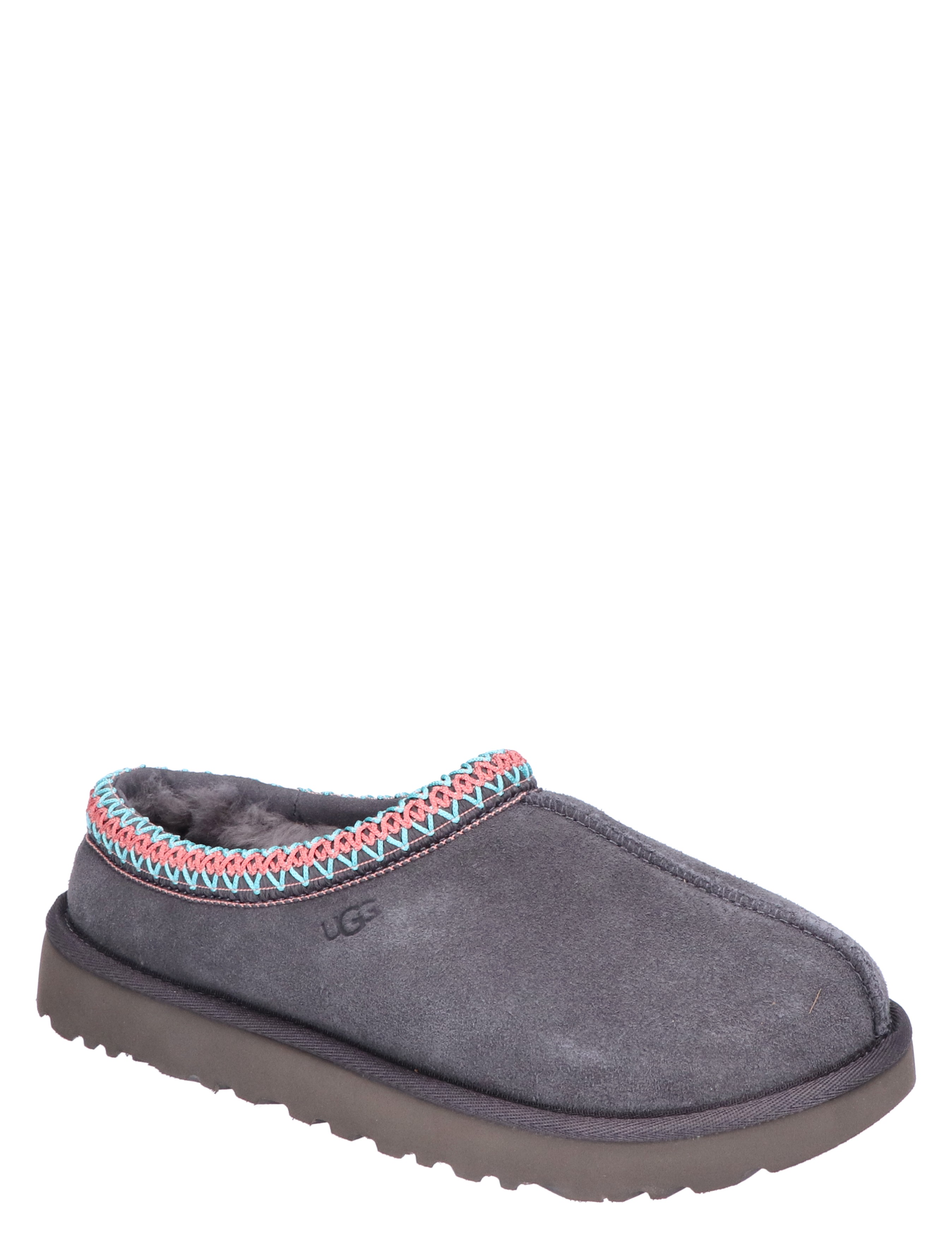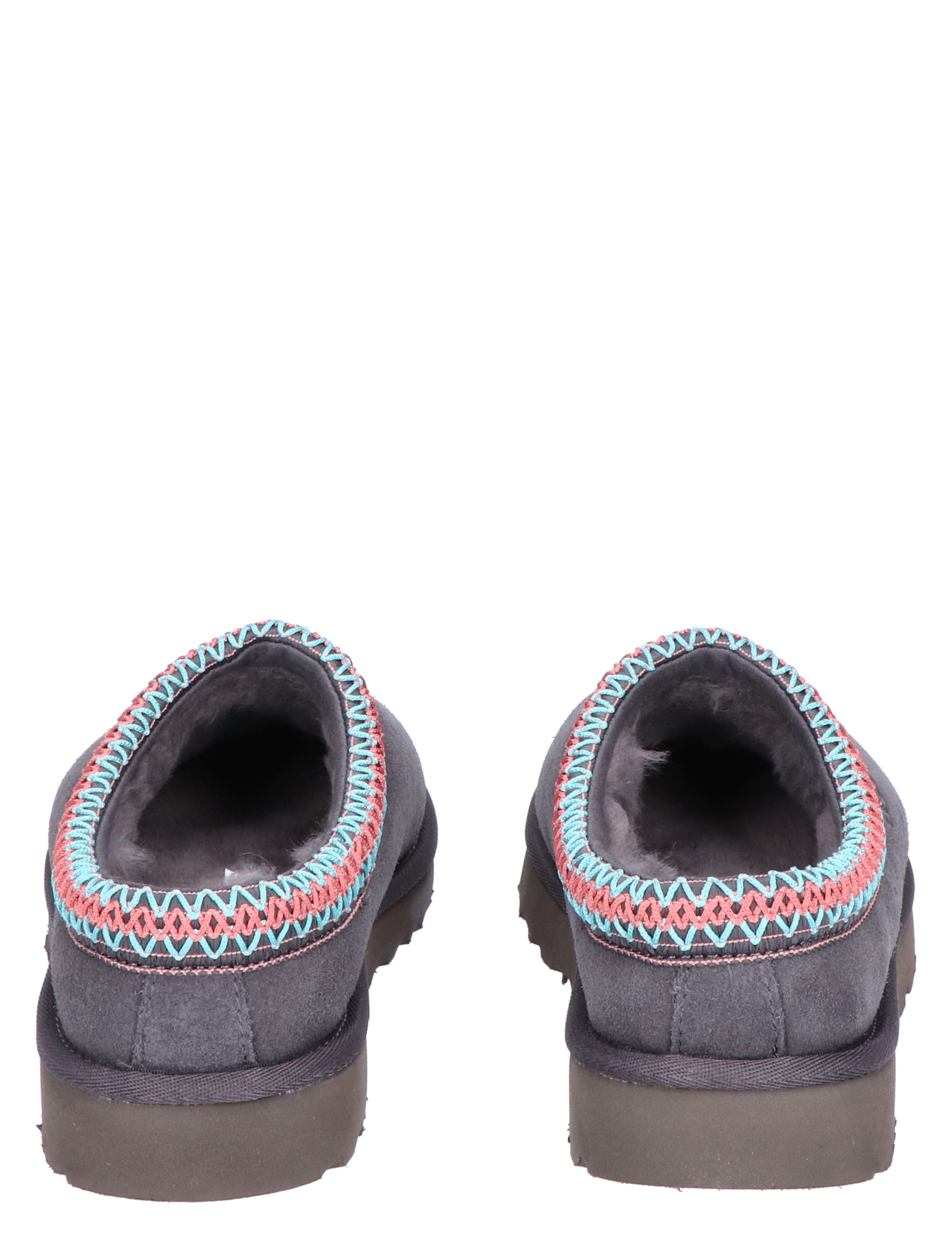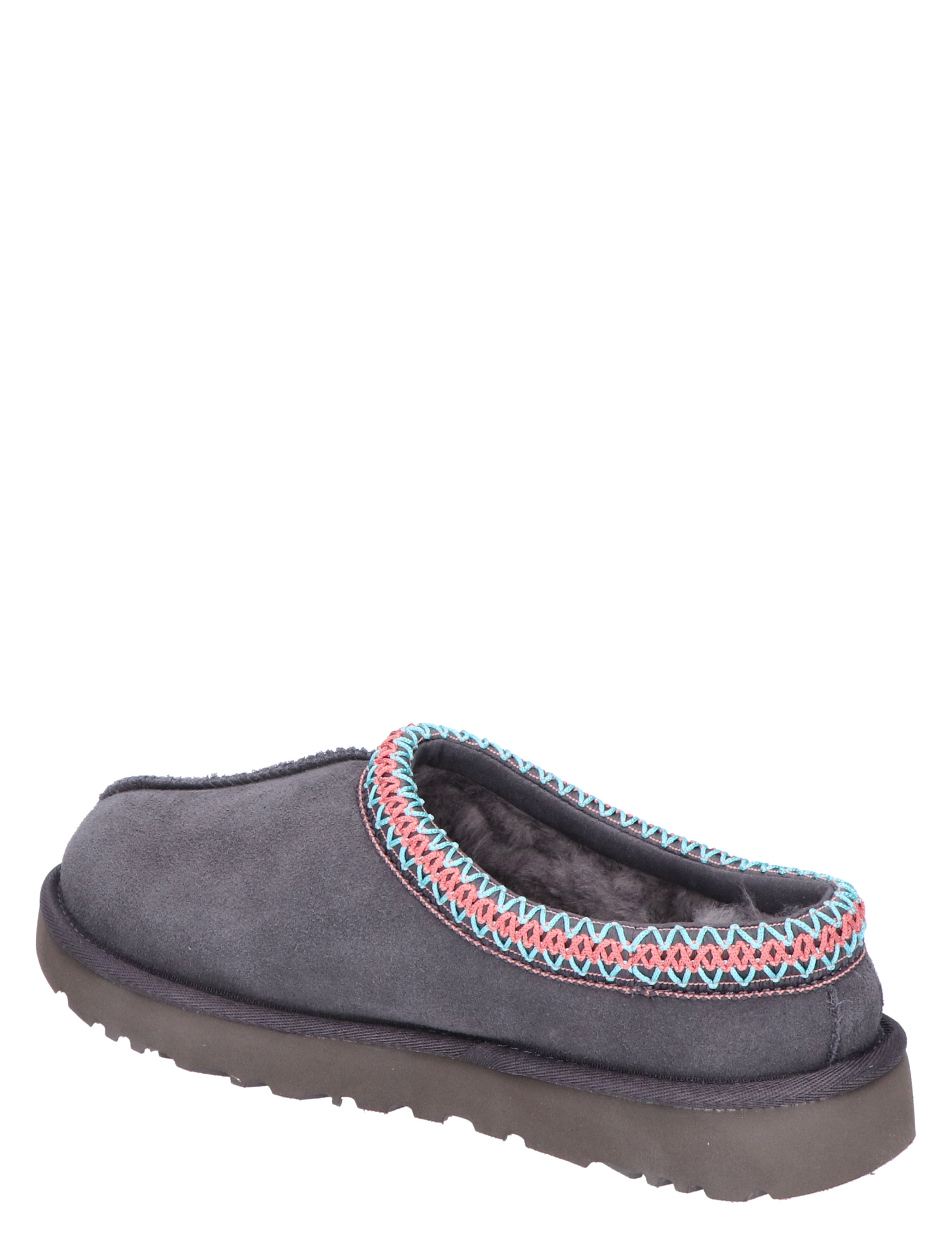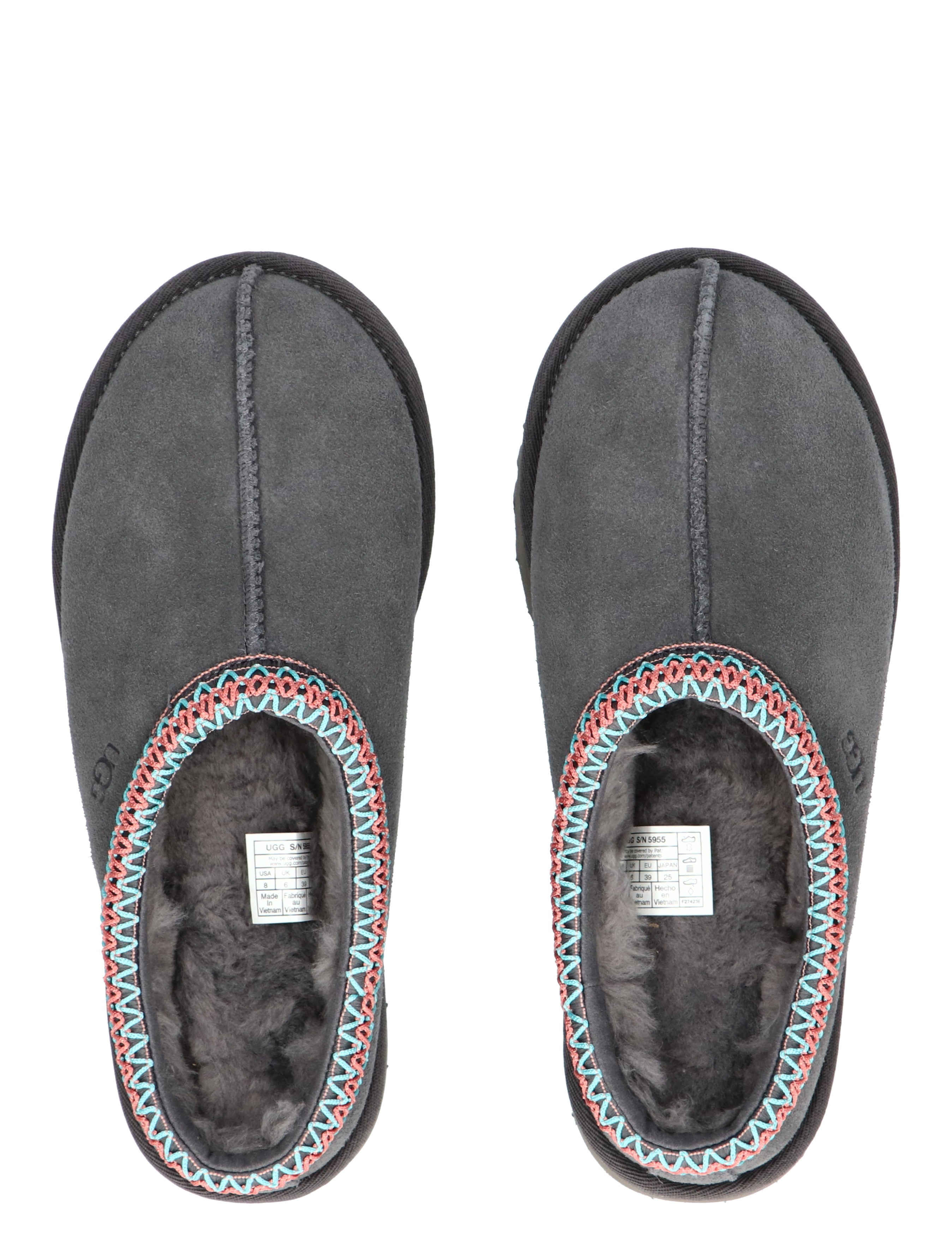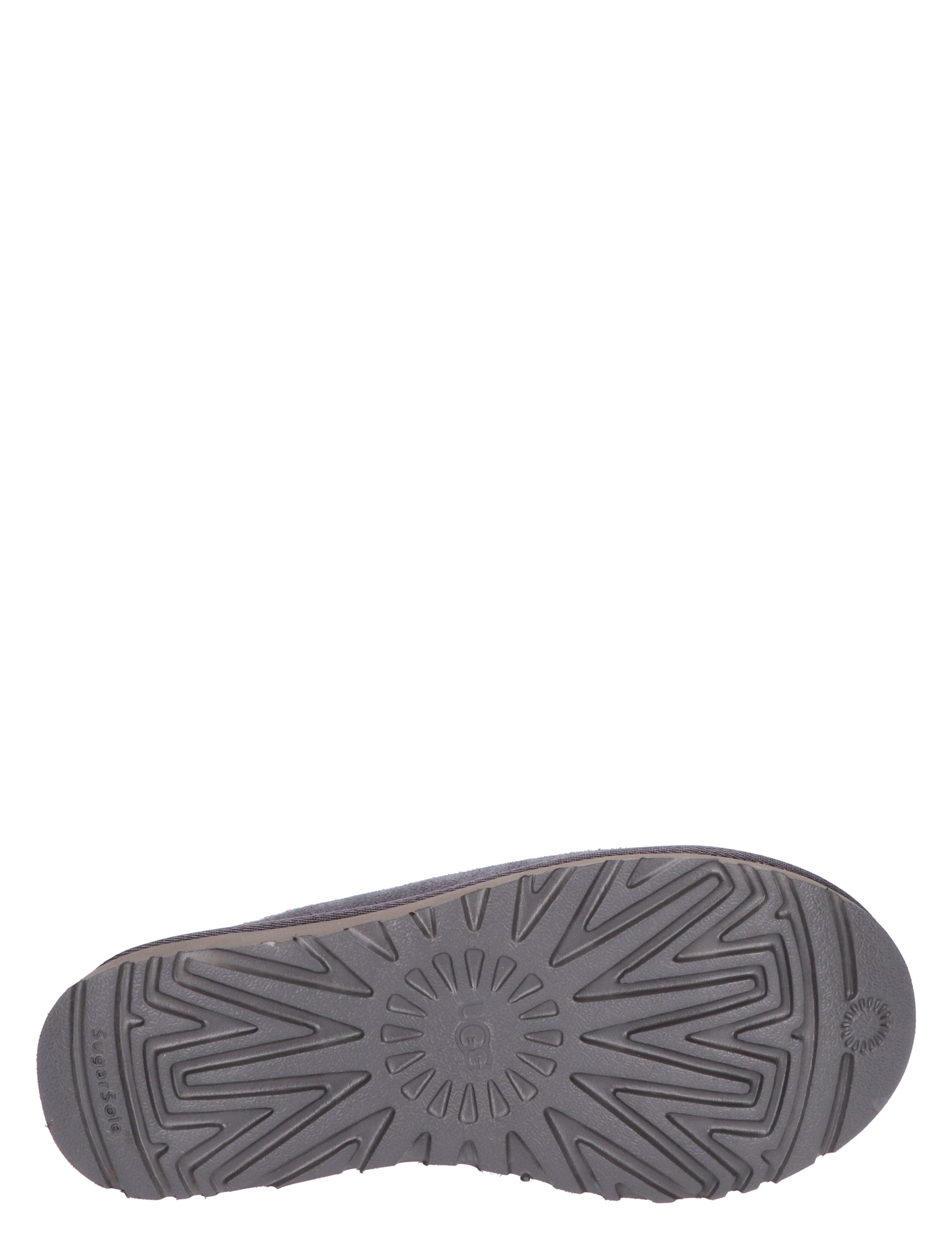 UGG Tasman voor dames in Dark Grey. De Tasman pantoffel is voor alle gelegenheden en heeft dezelfde ultralichte, duurzame buitenzool als de Classic Boot, zodat de UGG Tasman zowel binnen als buiten te dragen is. De voering is van zachte sheep skin en upcycled wol, gemaakt van zacht suède met een geborduurde vlecht. De buitenzool van dit product heeft een SugarSole™-buitenzool, gemaakt van suikerrietschuim of een Treadlite by UGG™-buitenzool. Met leren hiellabel met UGG®-logo in reliëf.