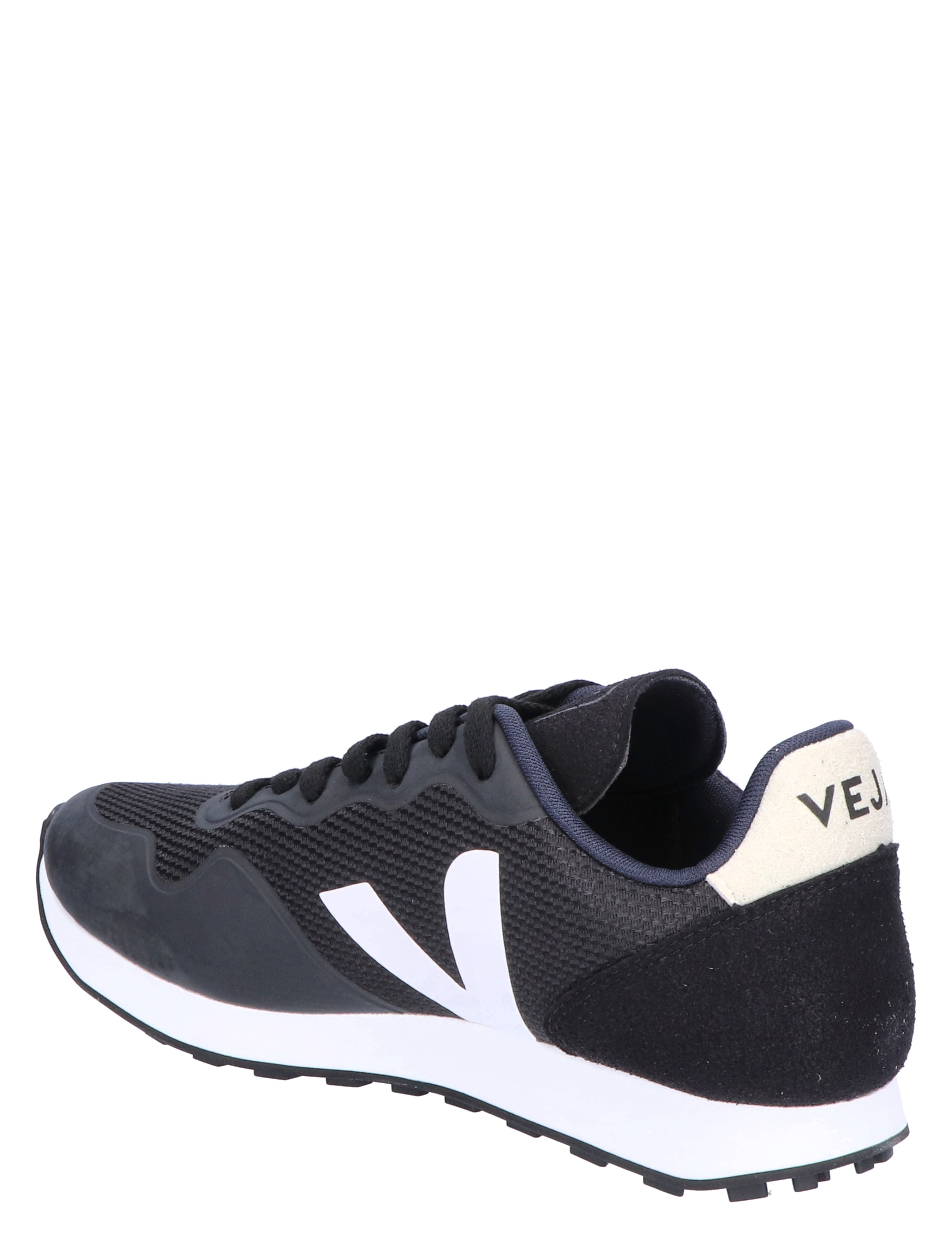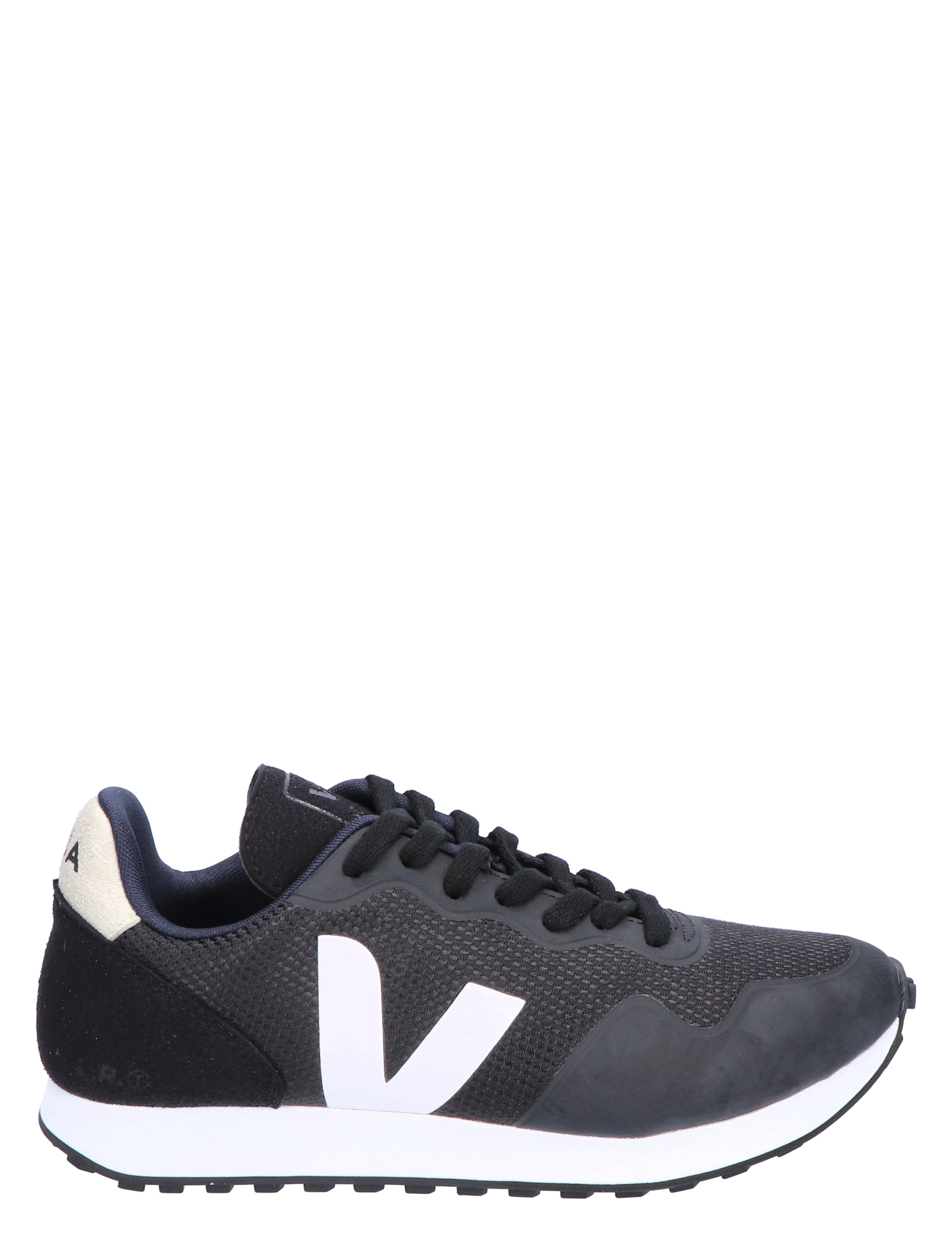 Veja SDU lage sneaker voor dames in black white. De SDU van Veja is gemaakt van B-mesh en vegan suede en PU. Het B-mesh is gemaakt van 100% gerecycled polyester, afkomstig van gerecyclede plastic flessen die in vlokken zijn versnipperd en vervolgens in een Braziliaanse fabriek zijn omgezet in vezels. Er zijn drie plastic flessen nodig om één paar VEJA te maken. B-Mesh is een lichte, ademende en waterafstotende stof.