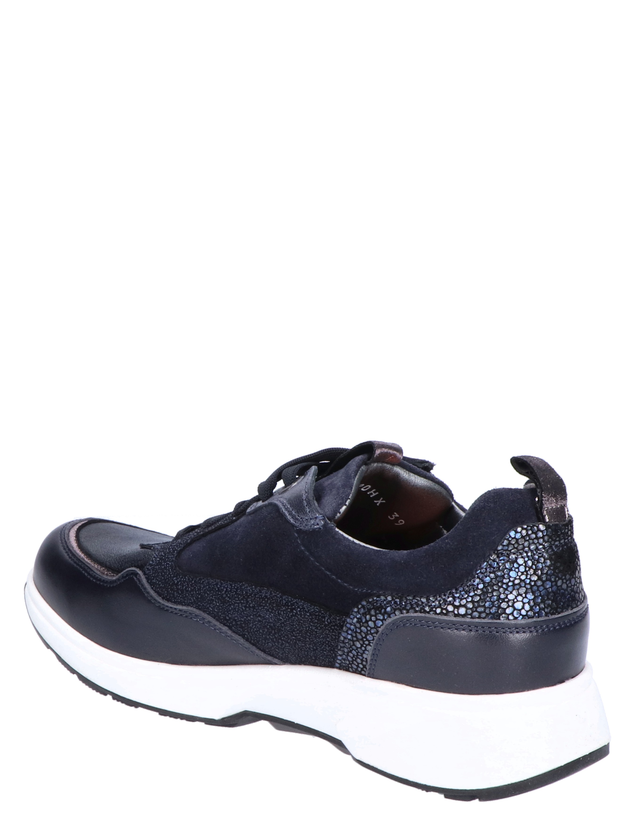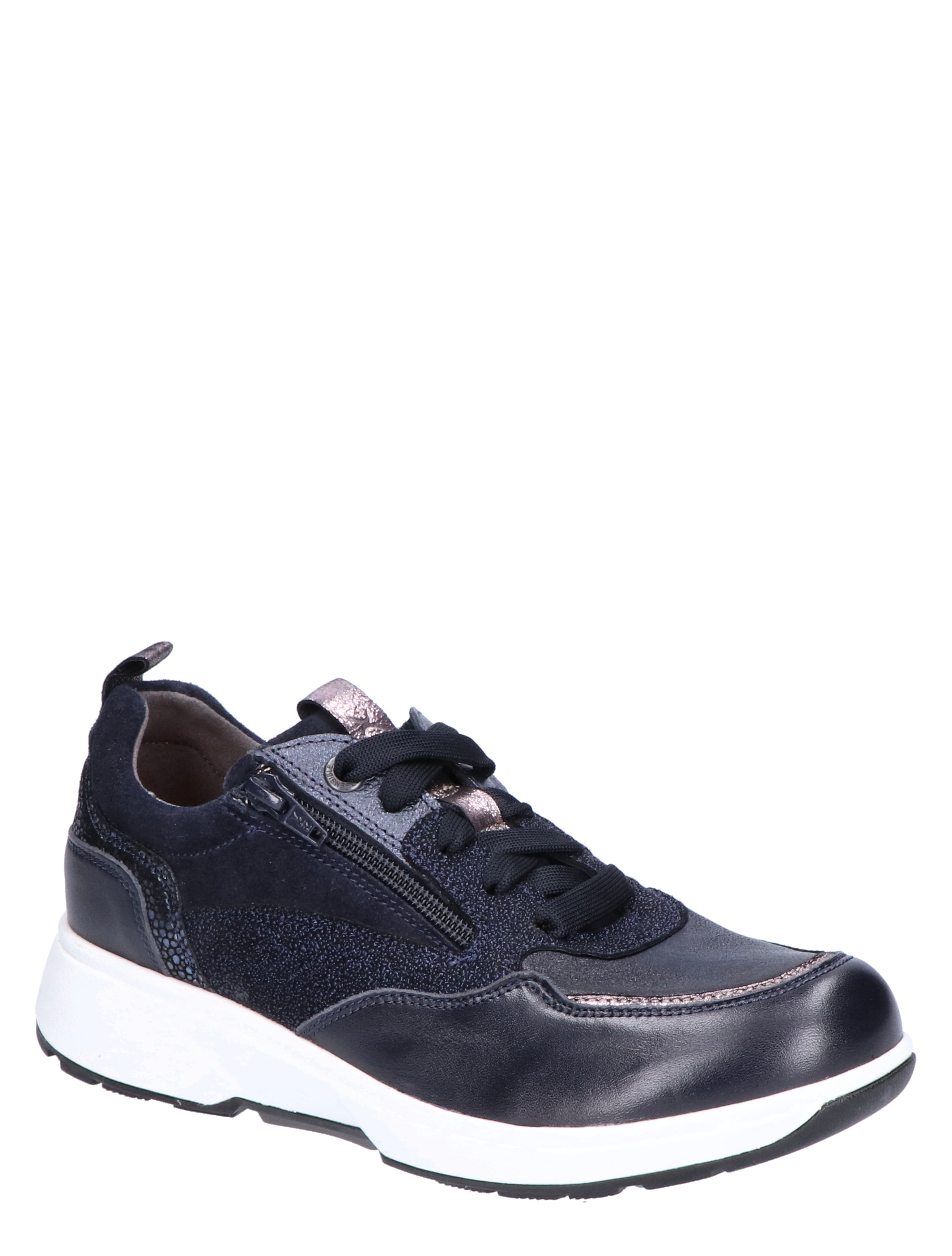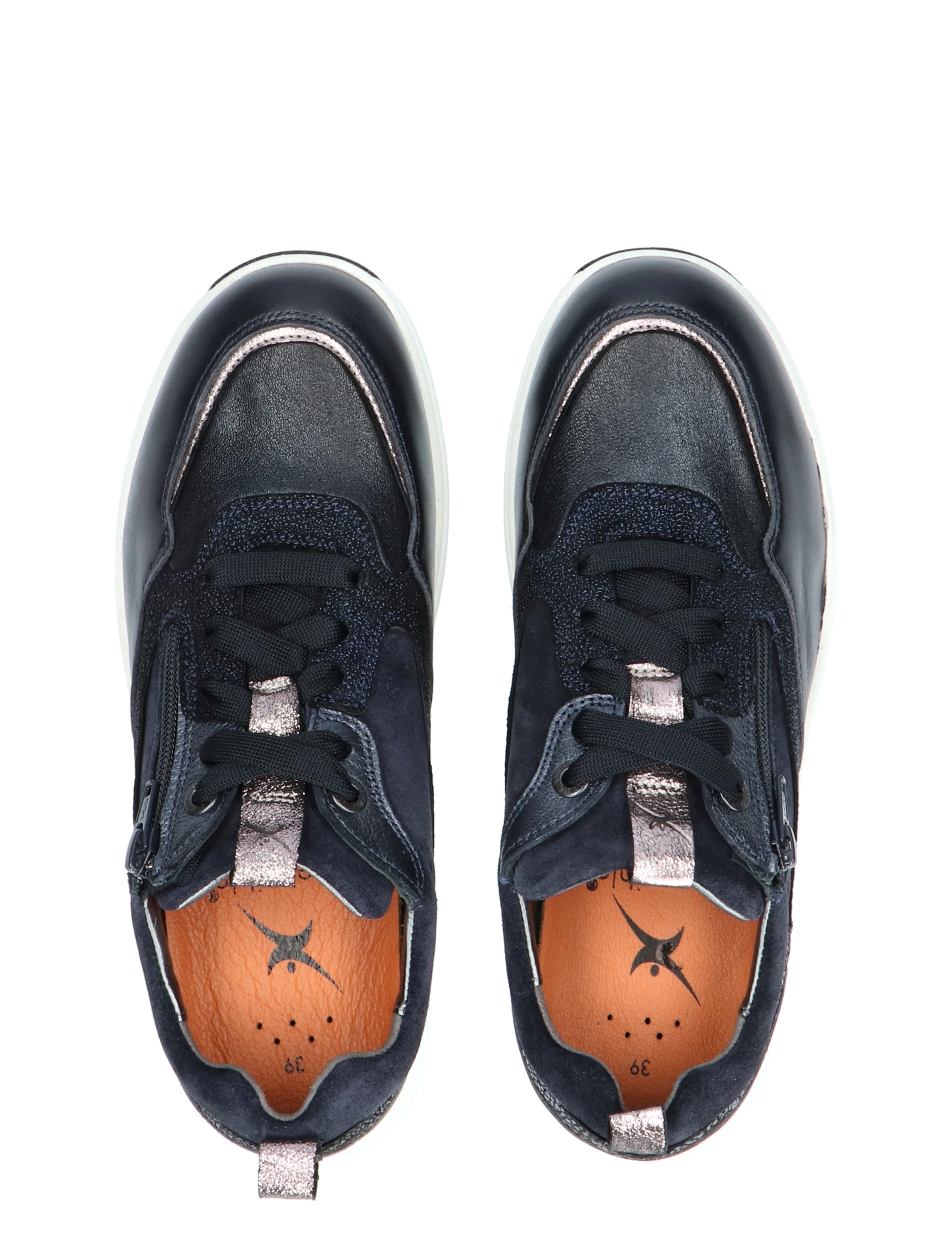 Xsensible 30215.3 HX Grenoble veterschoen voor dames in H-wijdte (breed) in navy. Trendy, sportief en gekleed tegelijk. Deze hippe sneaker, uitgevoerd in een modieuze joggingstijl, is een echte allrounder. Het dynamische ontwerp en de iets bredere wreef in de comfortabele breedte H bieden comfort, stijl en functie. Superzacht leer en zachte kussentjes aan de rand van de schacht worden gecombineerd met subtiele bewerkingen in lichte tinten of glanzende metallic oppervlakken. De rits aan de zijkant vergemakkelijkt het aan- en uittrekken. Het stretchleer bij de voorvoet en de lichte, net iets dikkere zool met de exclusieve Xsensible balanstechnologie zorgen voor een uniek en comfortabel gevoel bij het lopen.